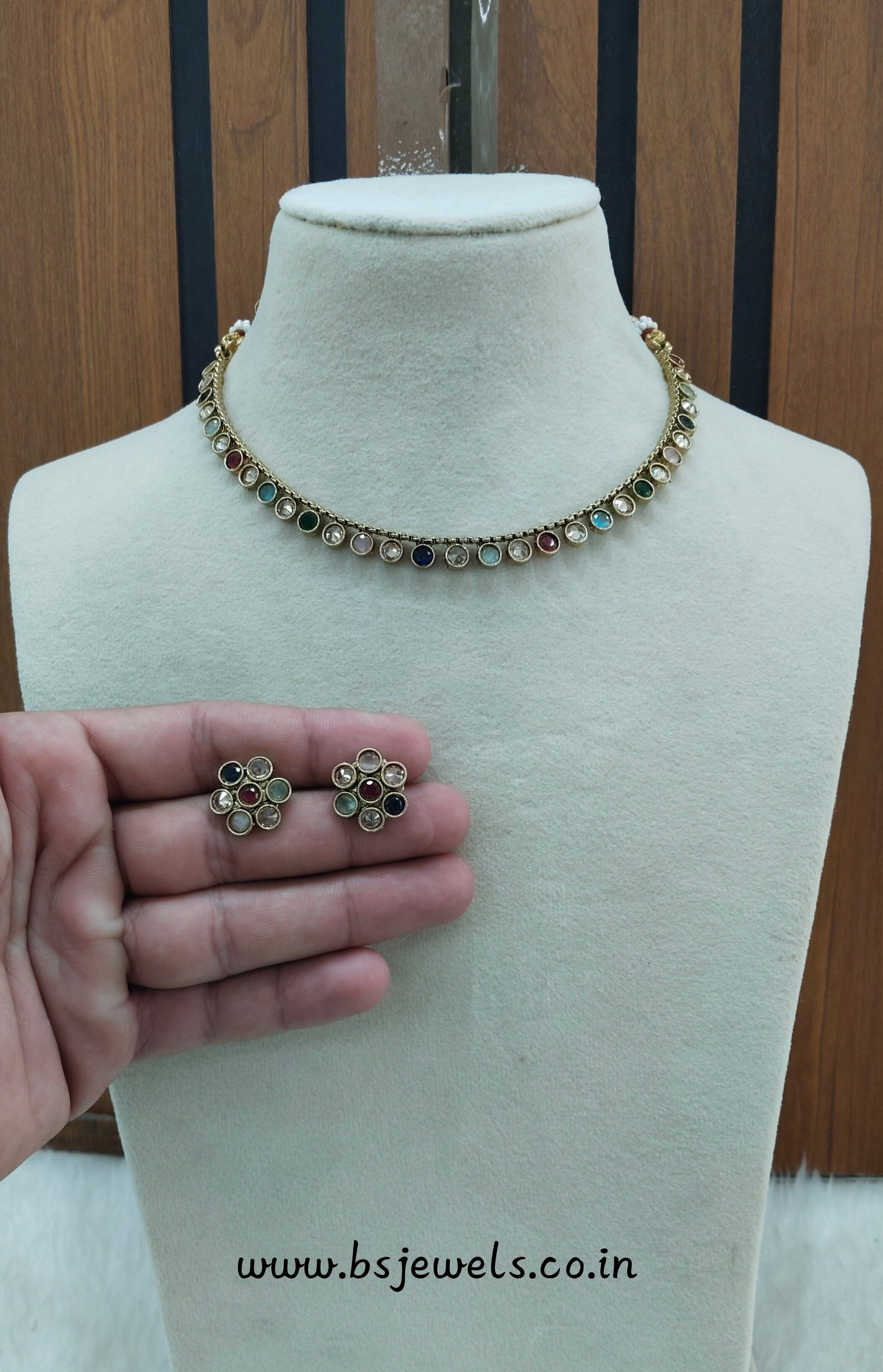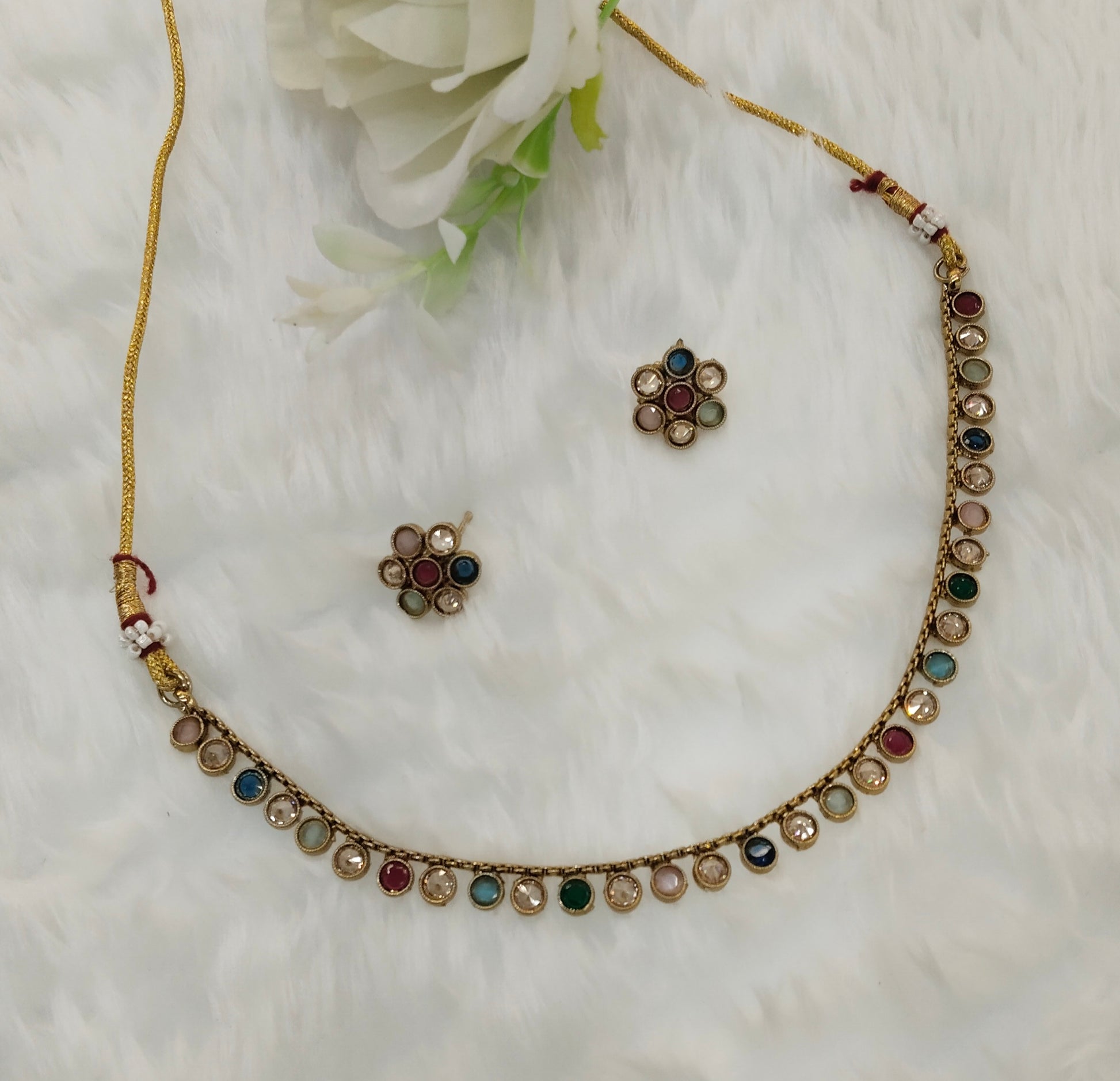 Multi Color Gold Polki Necklace Jewellery Pawan Set