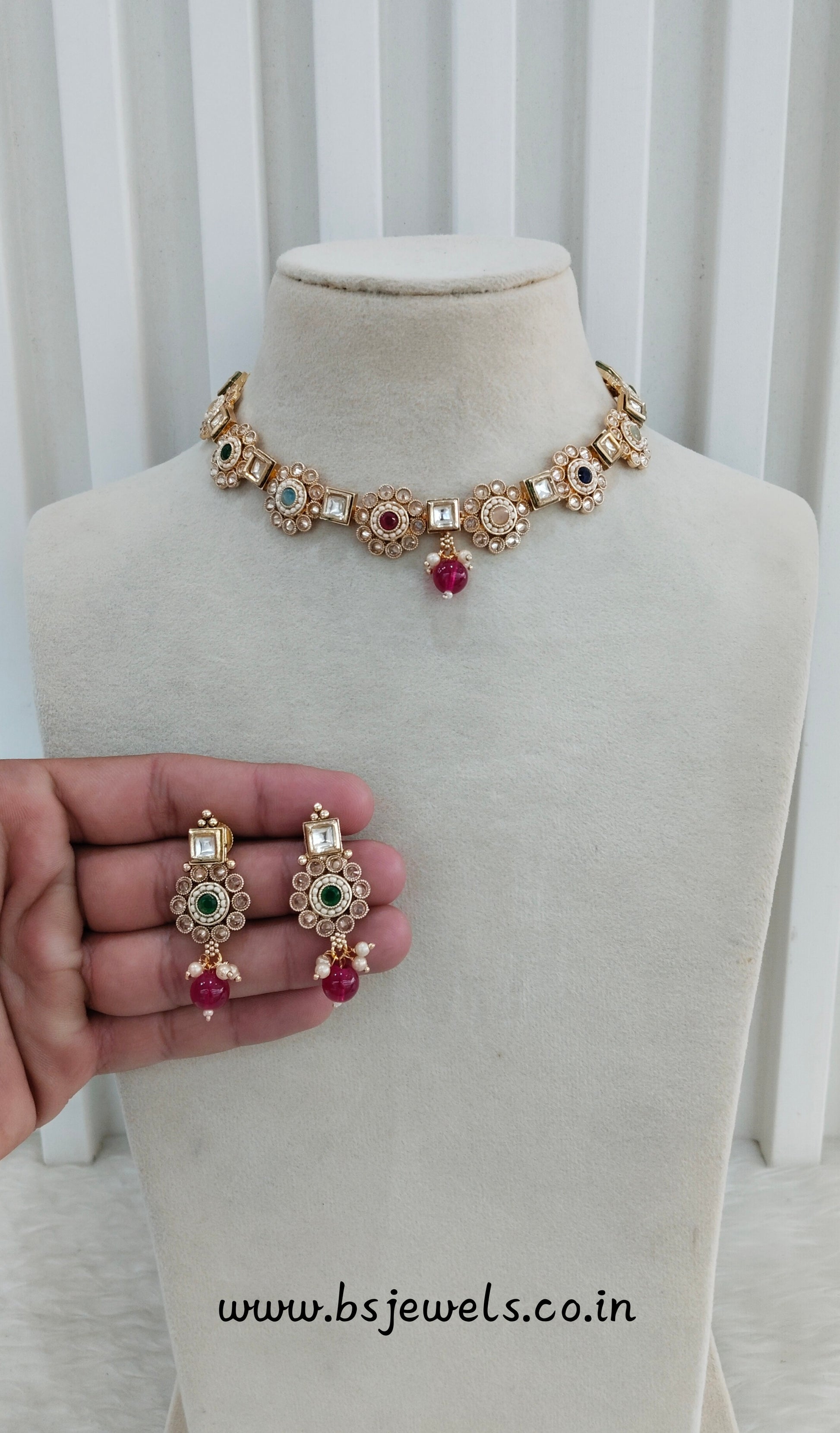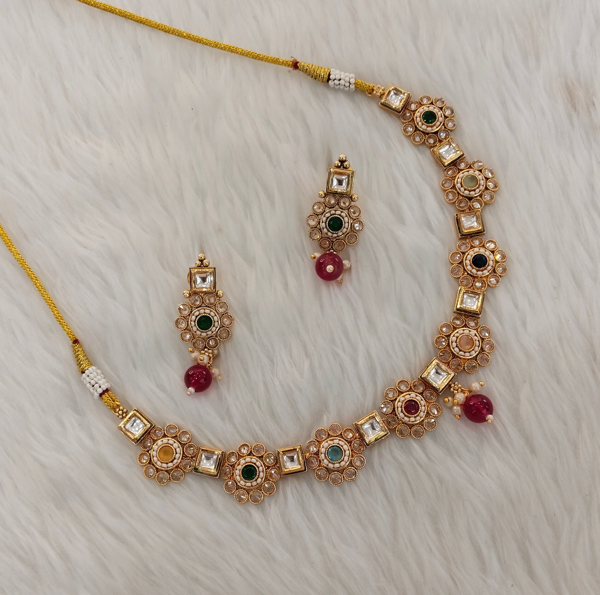 Multi Color Gold Polki Necklace Jewelry Siva Set