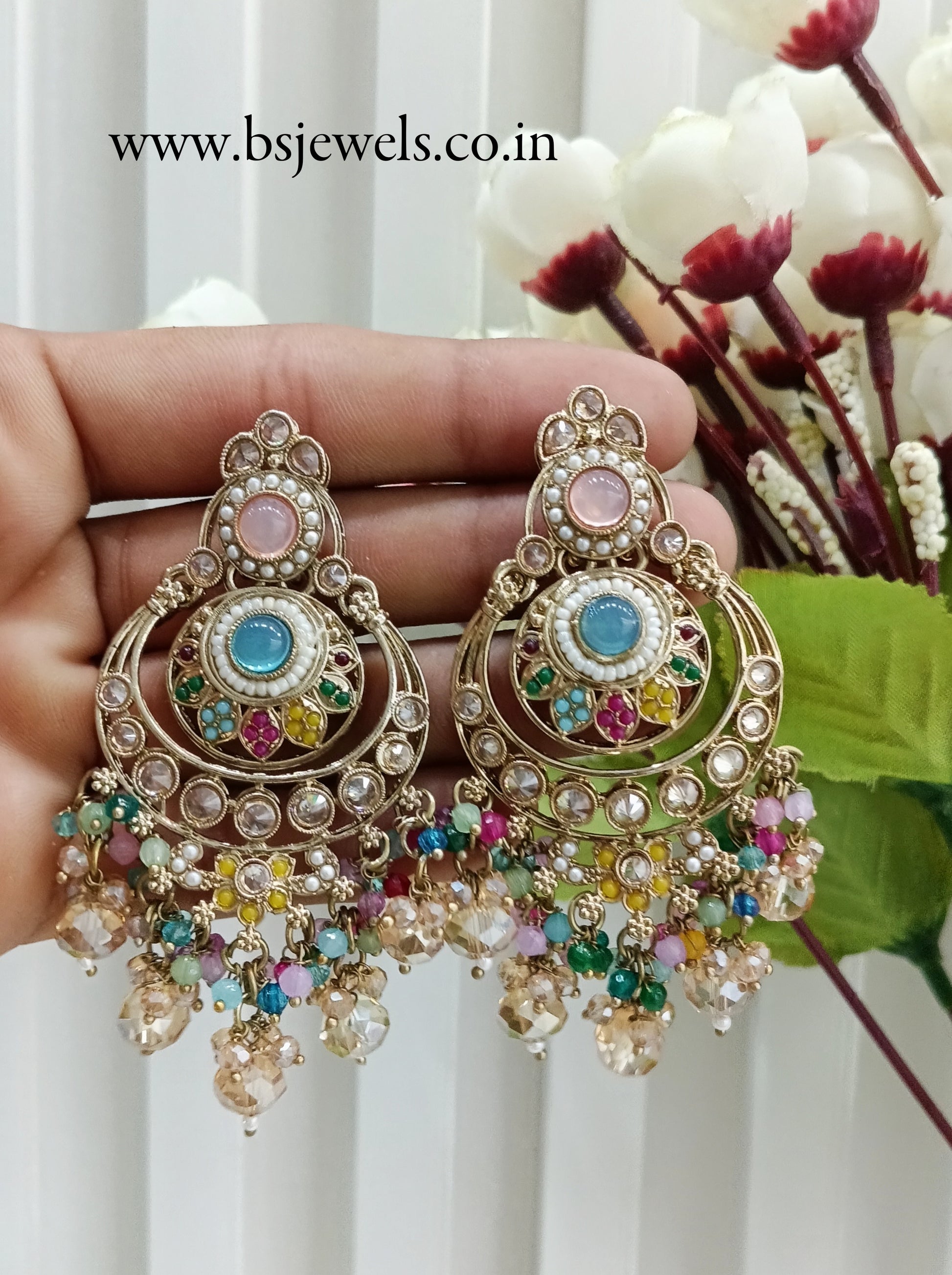 Multi Color Kundan Chandbali Bollywood Dvinder Earrings