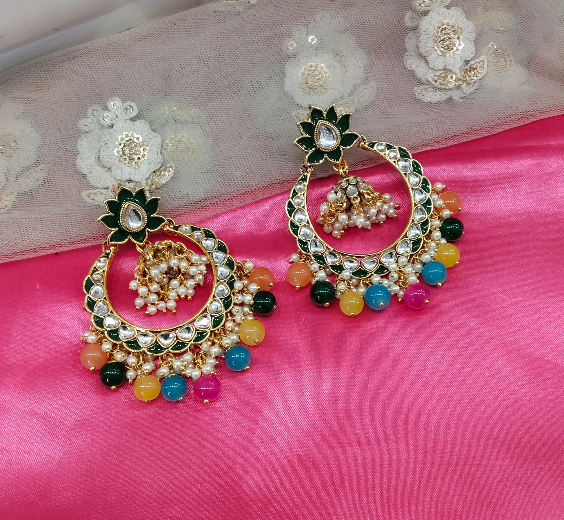Multi Color Kundan ChandBali Jhumka Explore Bollywood Earrings