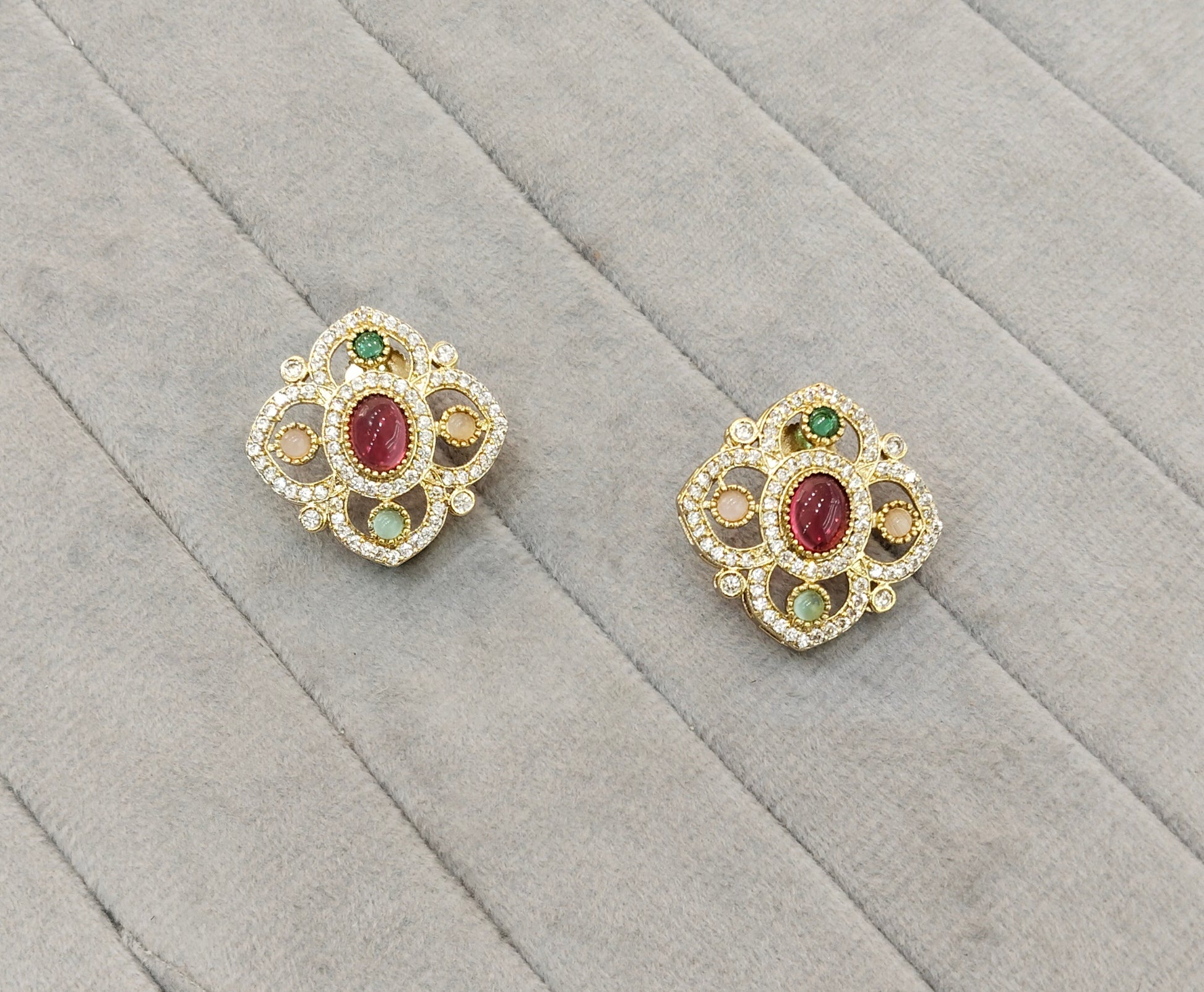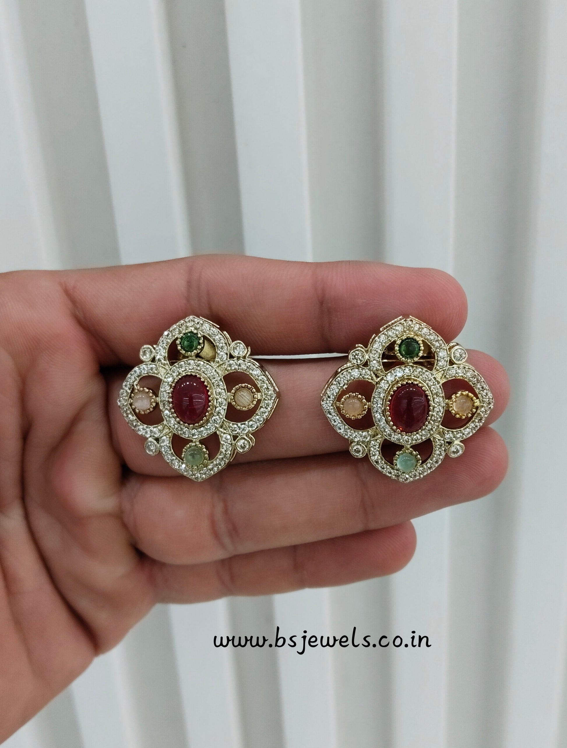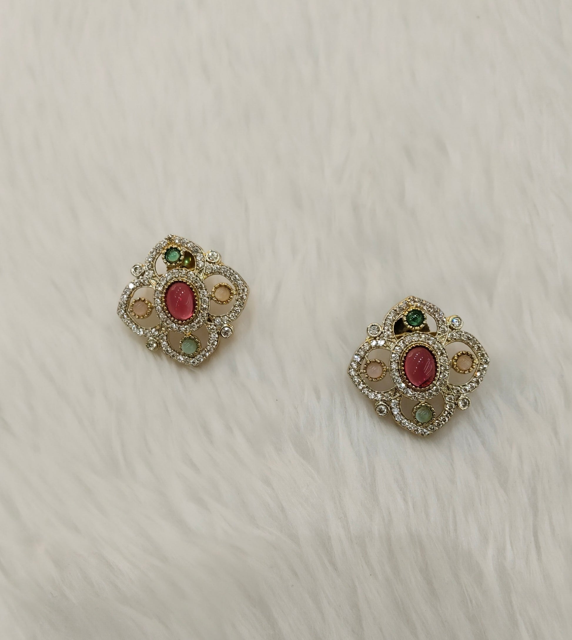 Multi Color Moissanite Kundan Bollywood Dhillon Earrings