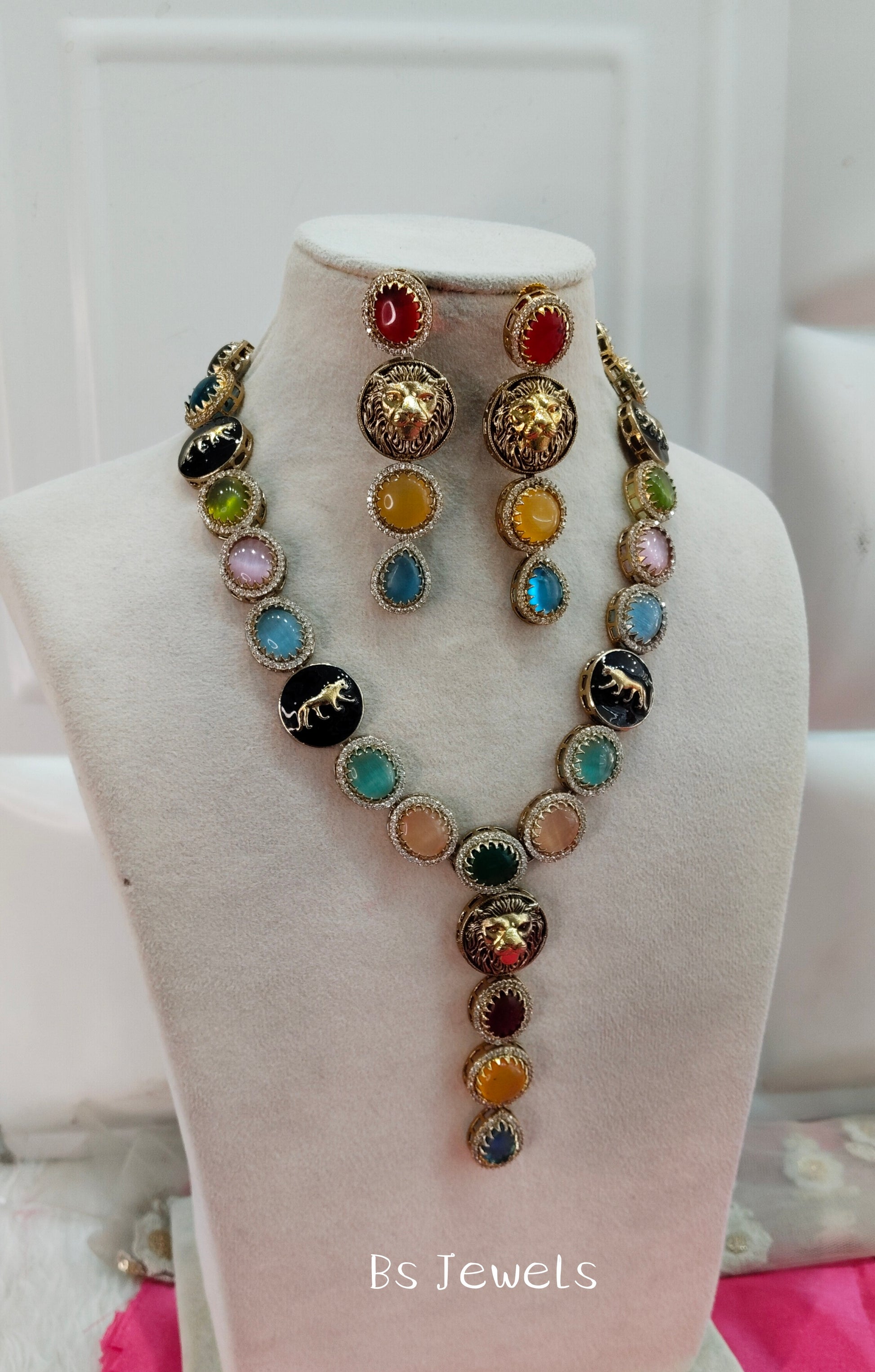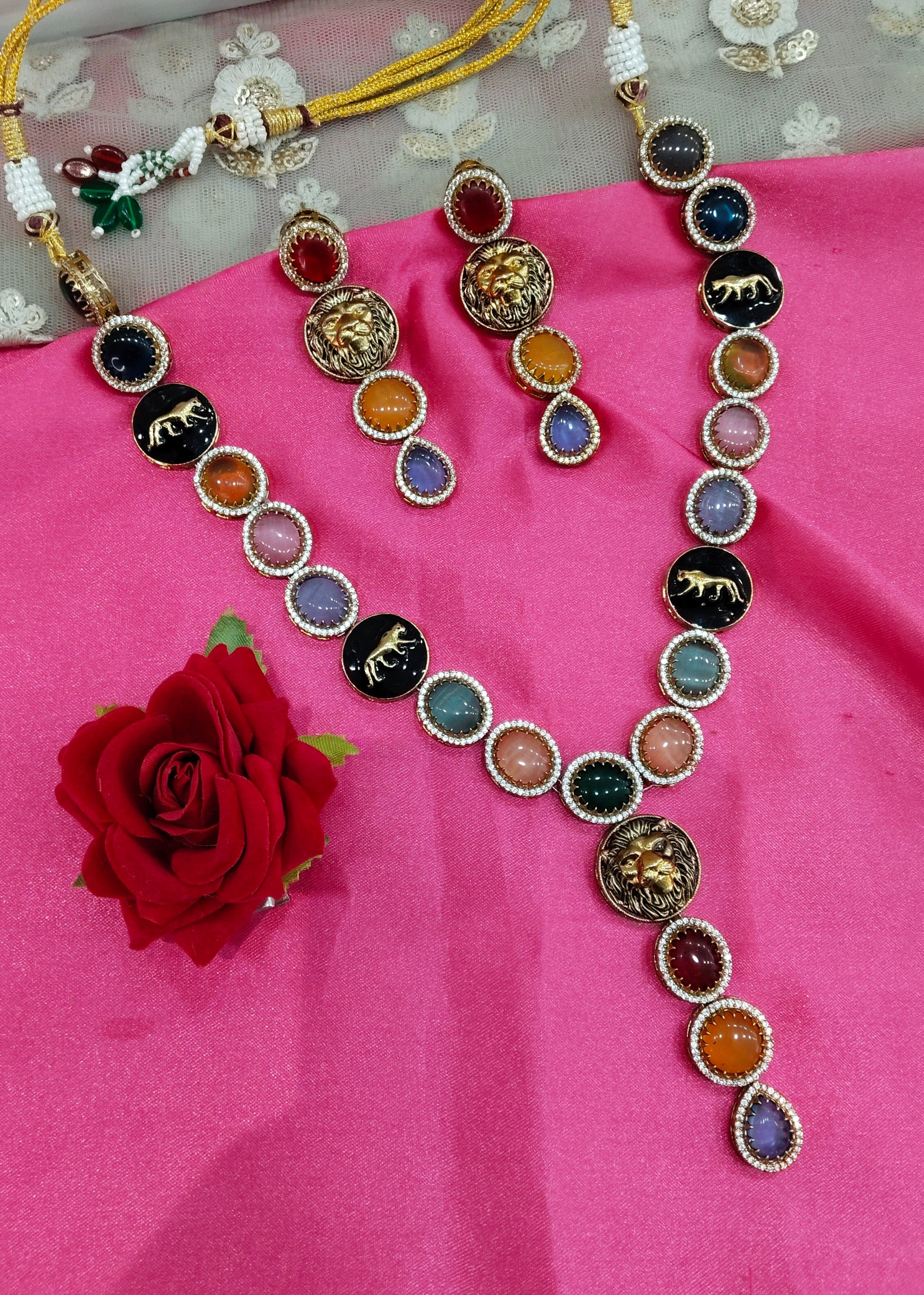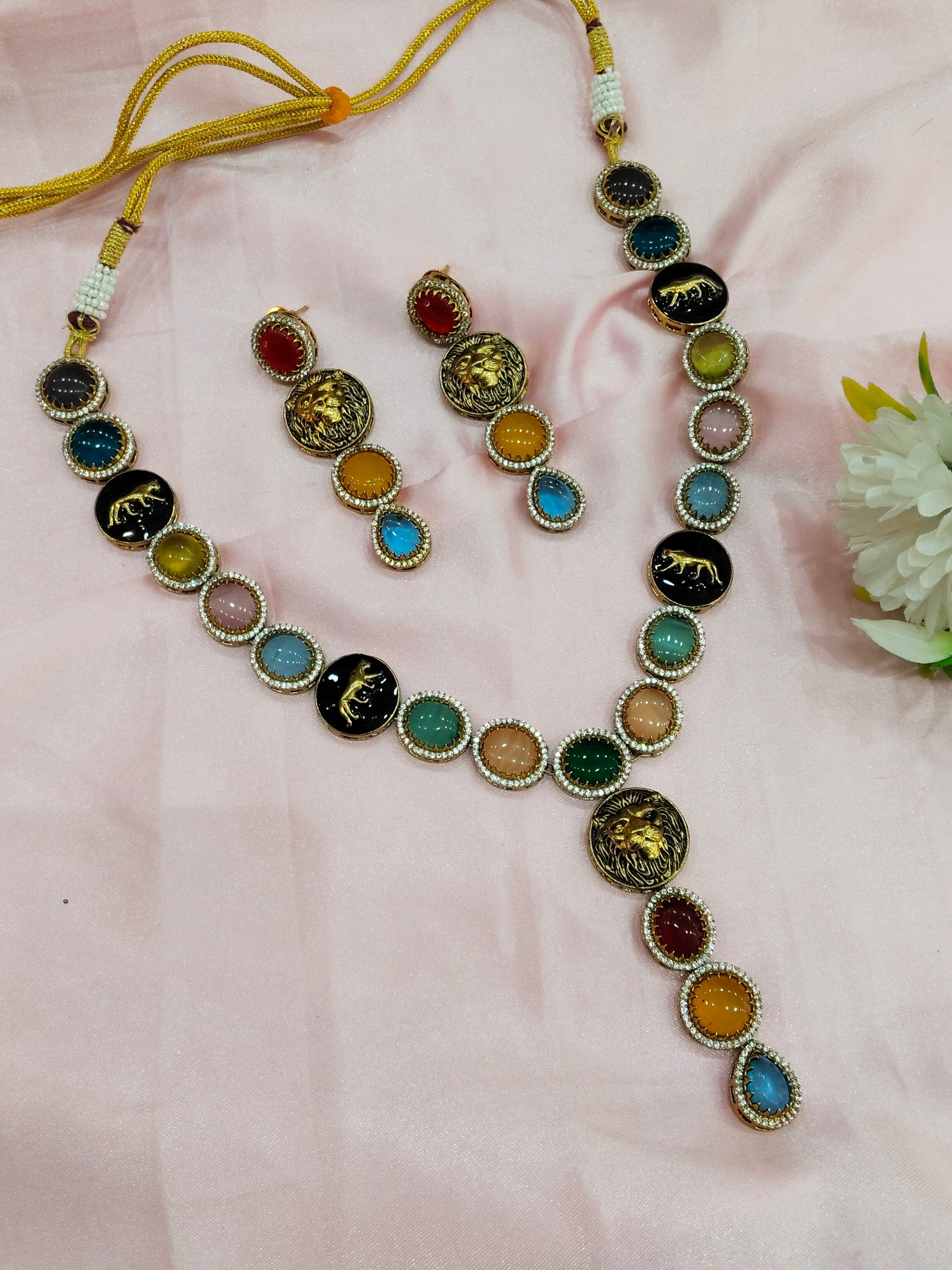 Multi Color Moissanite Kundan Necklace Jewellery Sweety Set