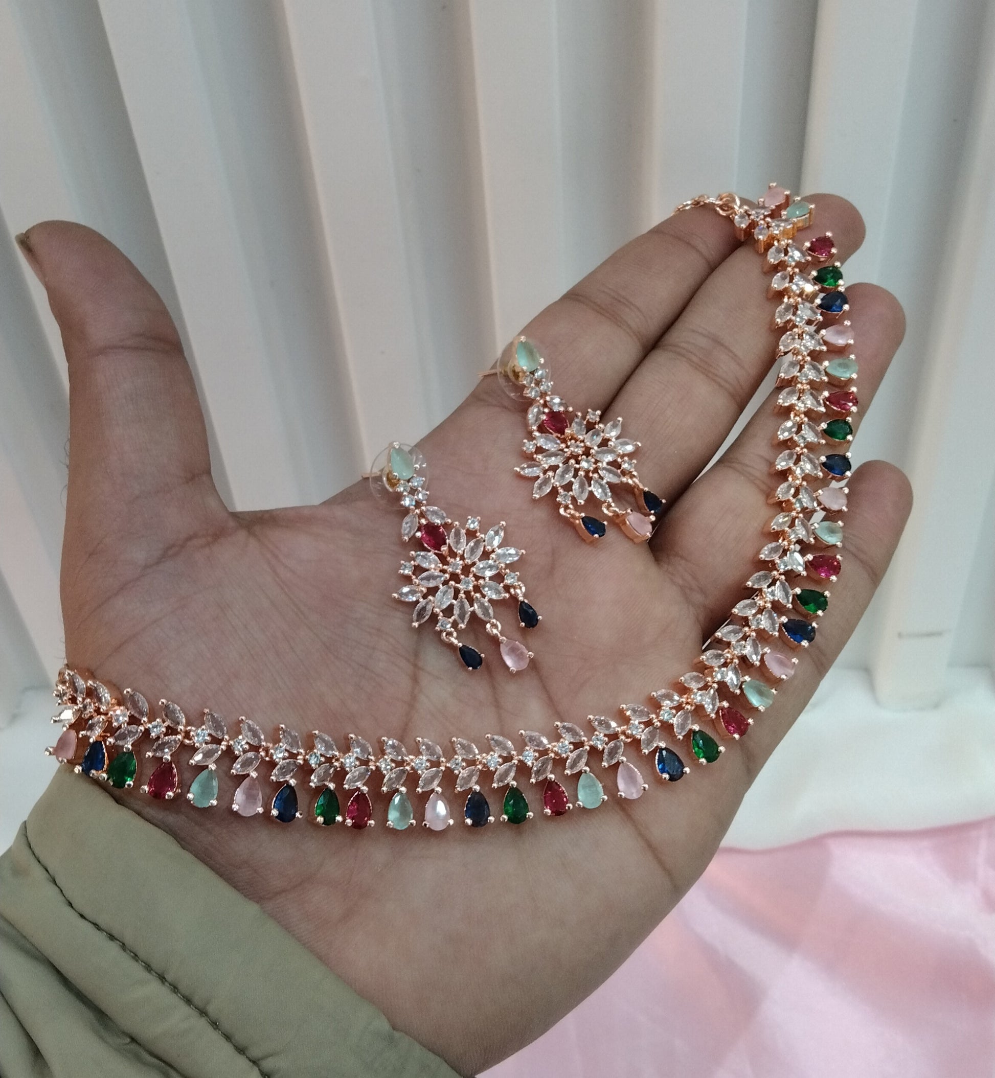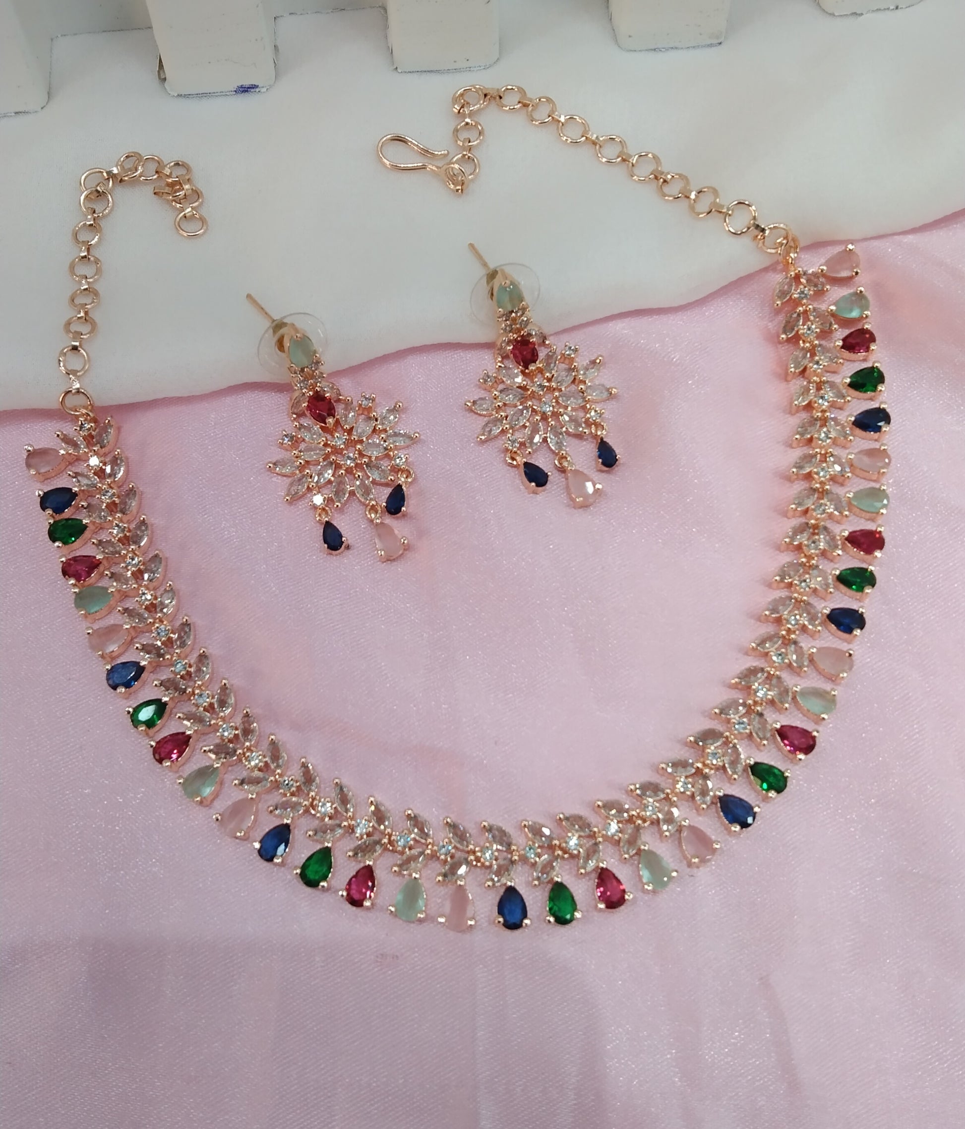 Multi Color Rose CZ Necklace Jewellery Phoenix Set