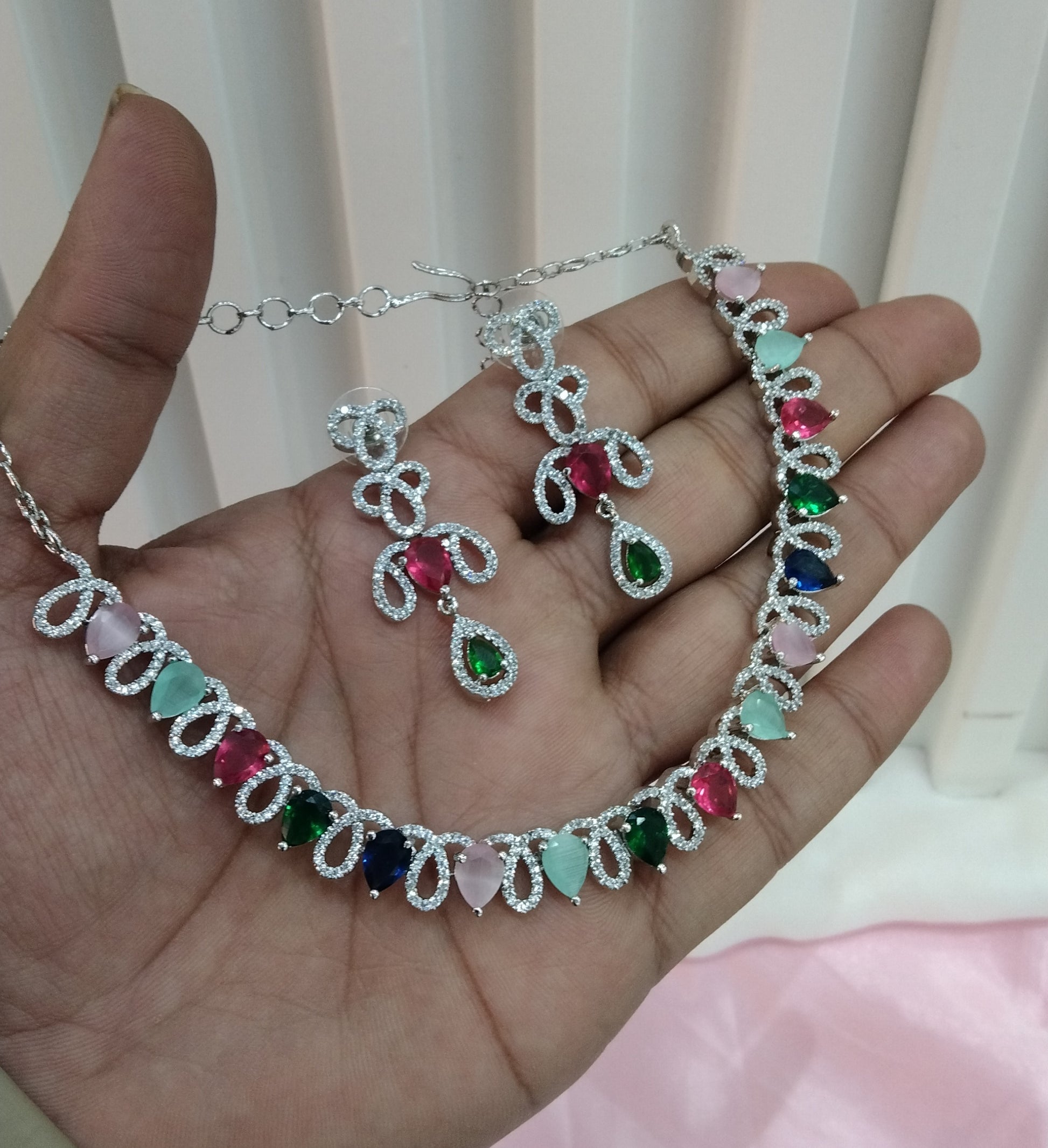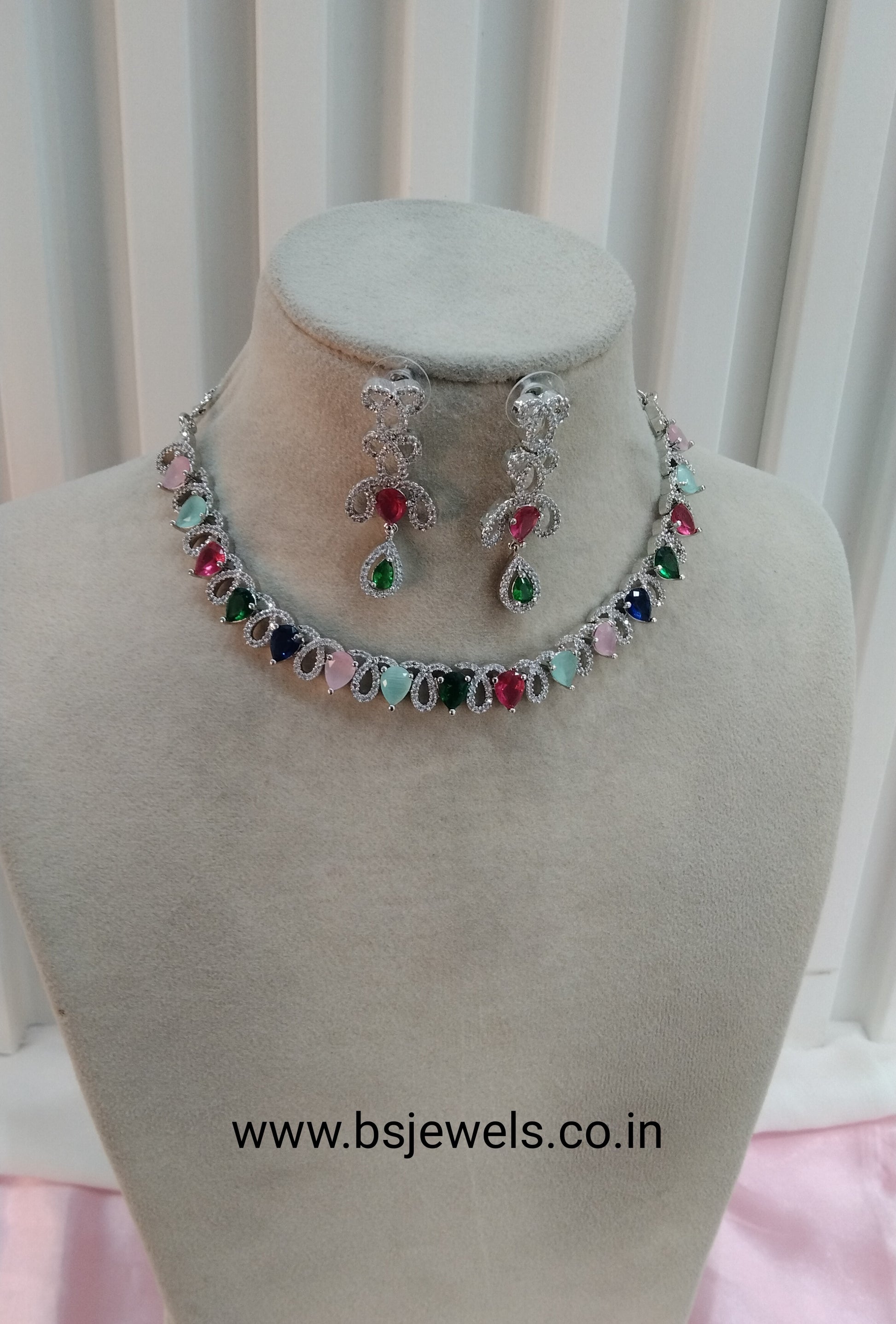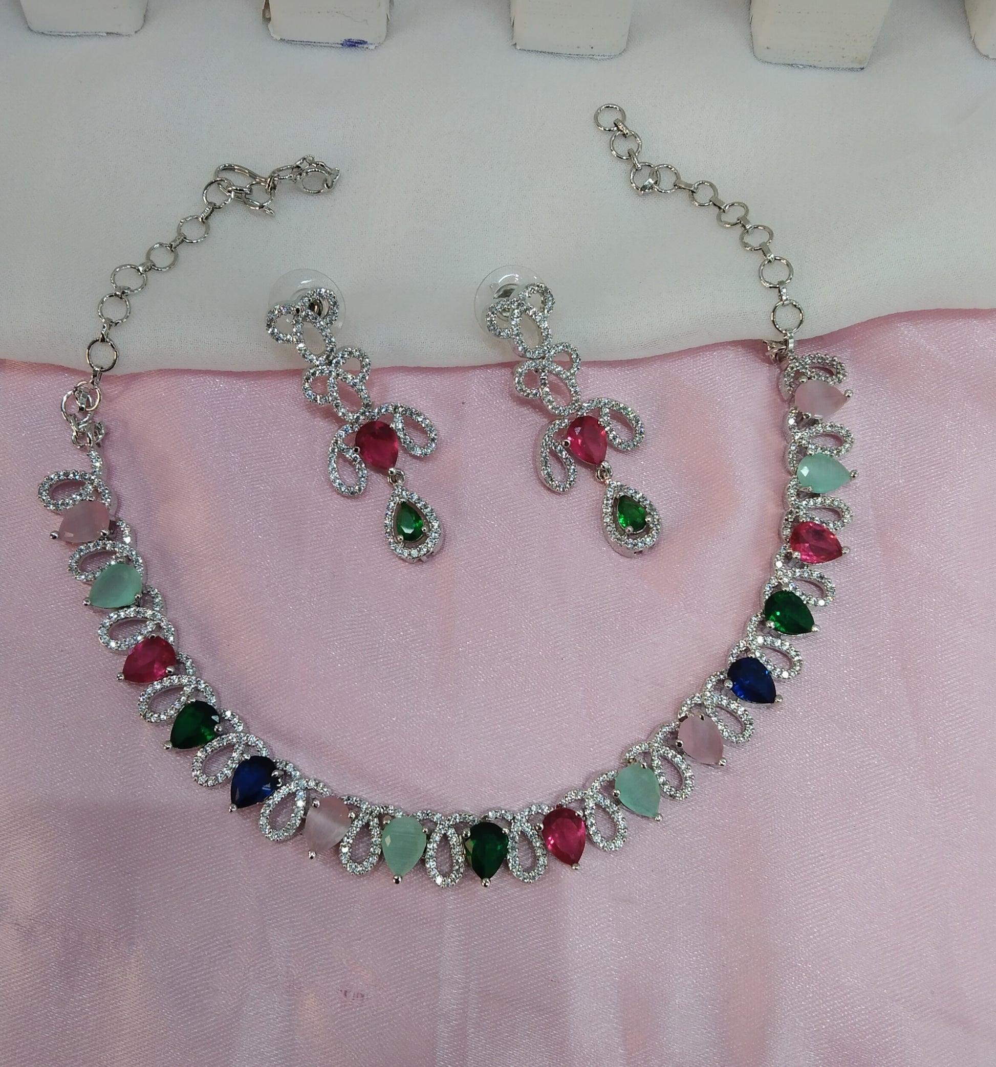 Multi Color Silver CZ Necklace Jewellery Above Set
