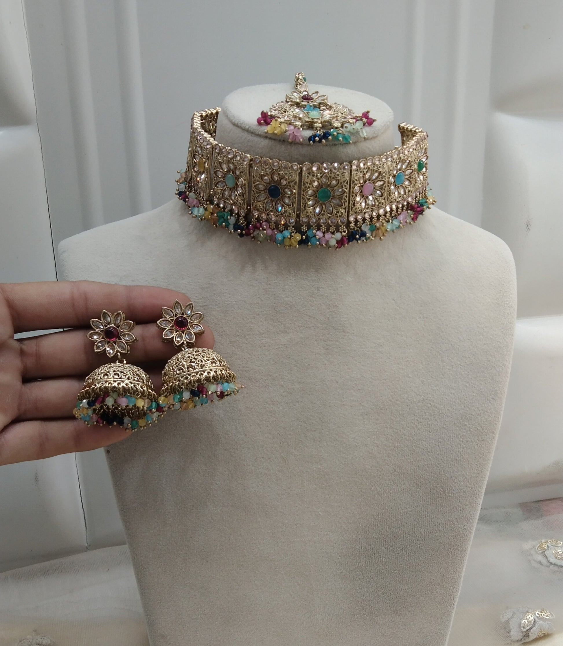 *Choker set with earrings and tikka.