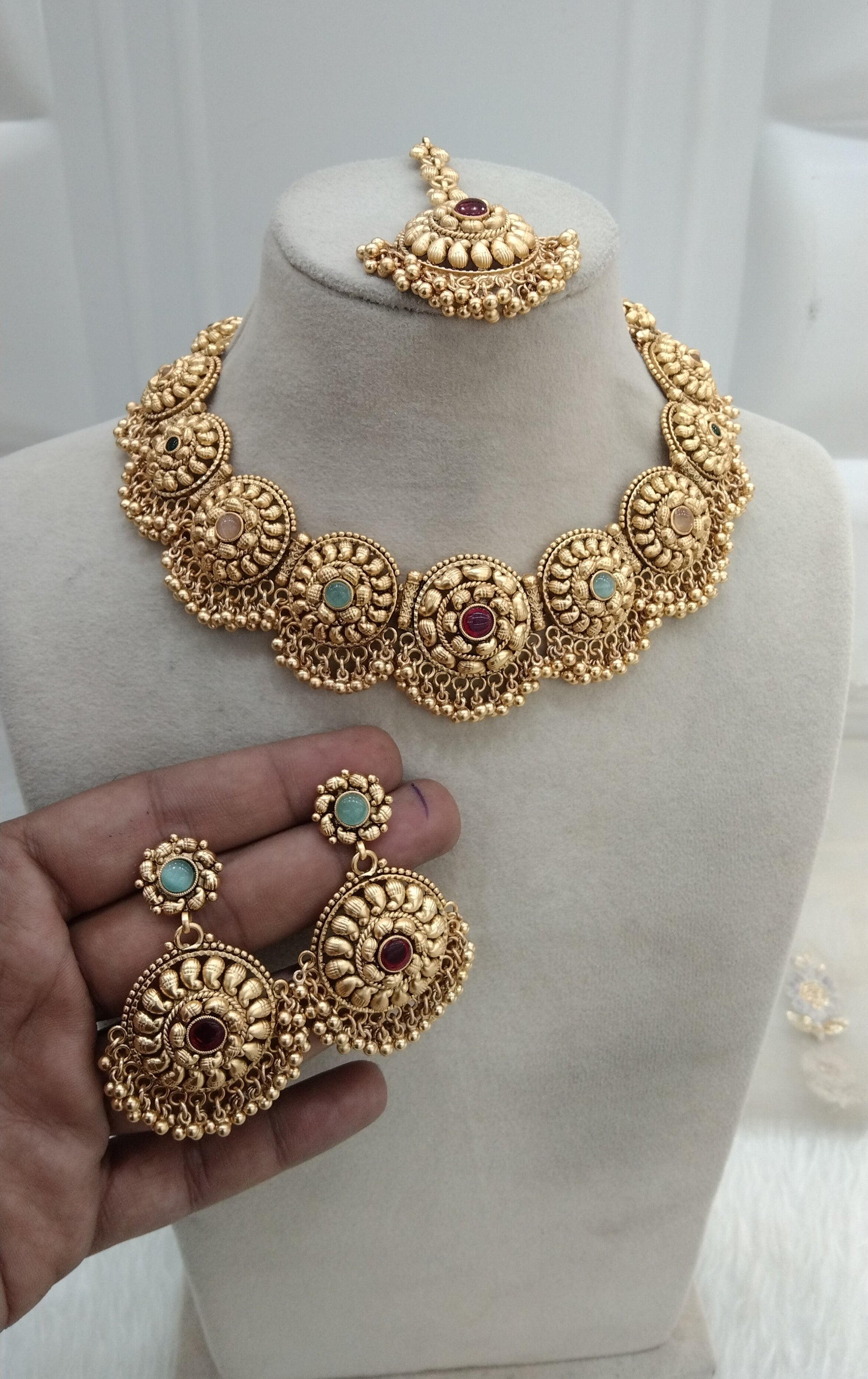 * Gold Finish Polki Necklace Set with earrings as shown in the pic.