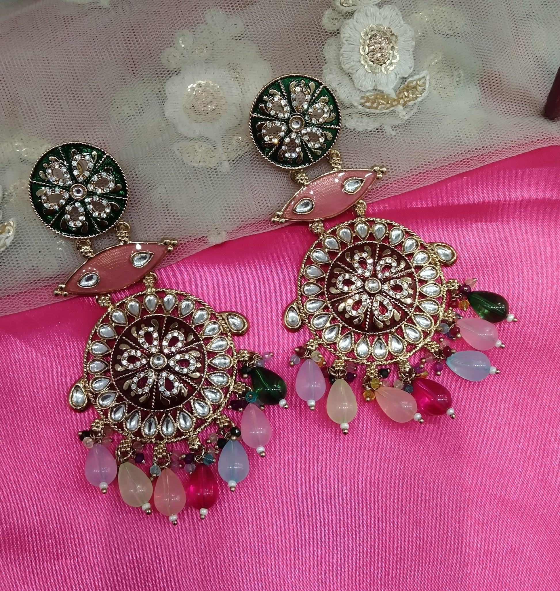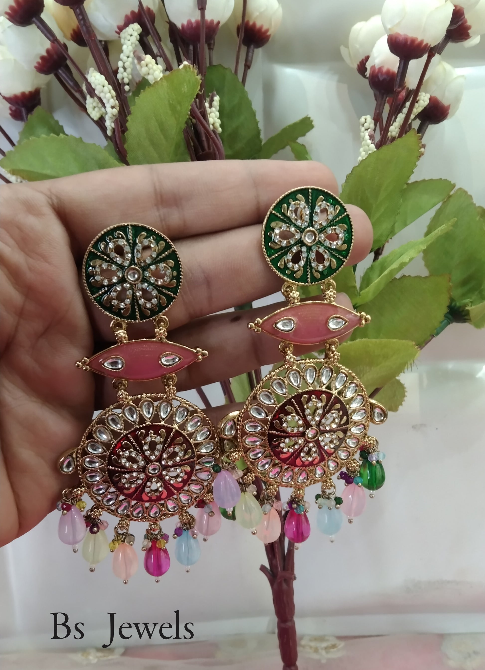 Multi Colour Kundan Chandbali Jivika Bollywood Earrings