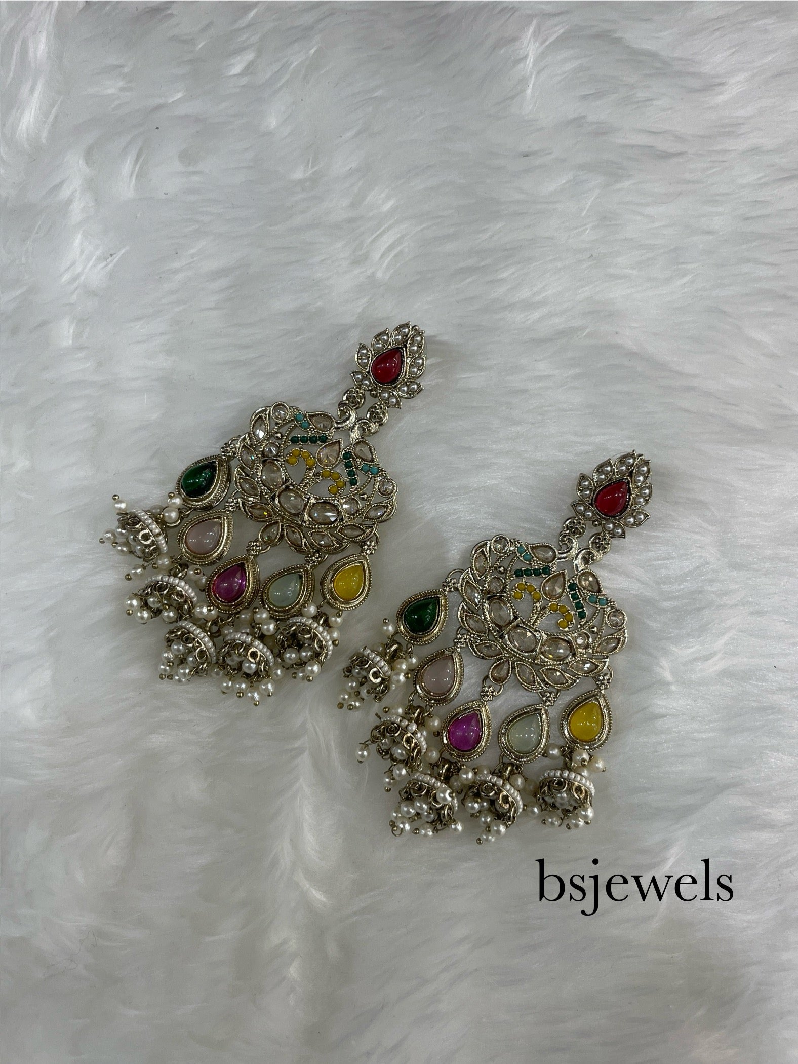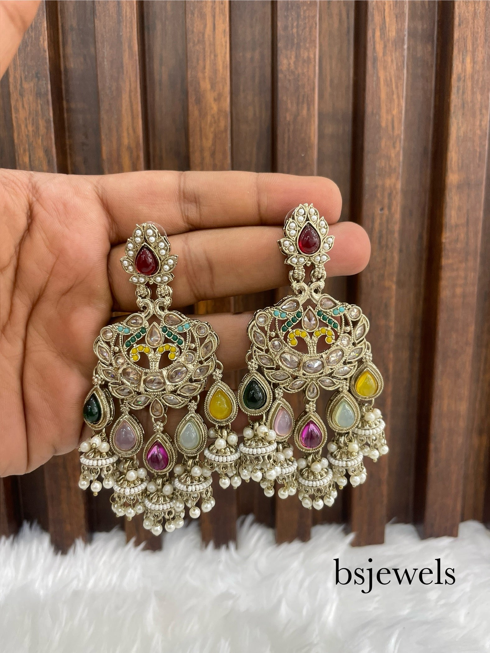 Multicolor Antique Gold Bollywood Earrings Sarpunch Set
