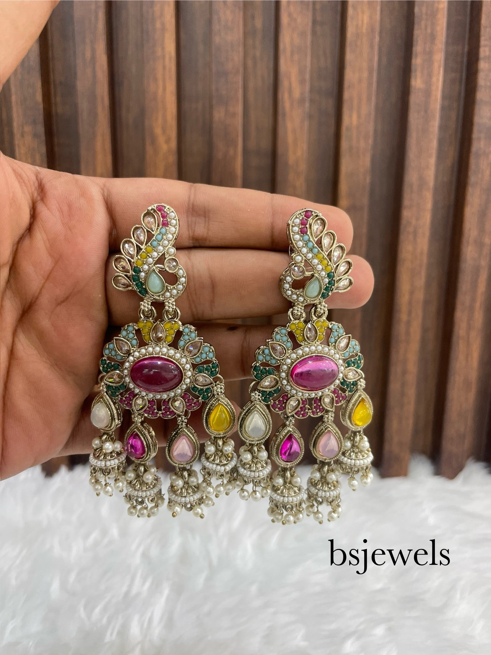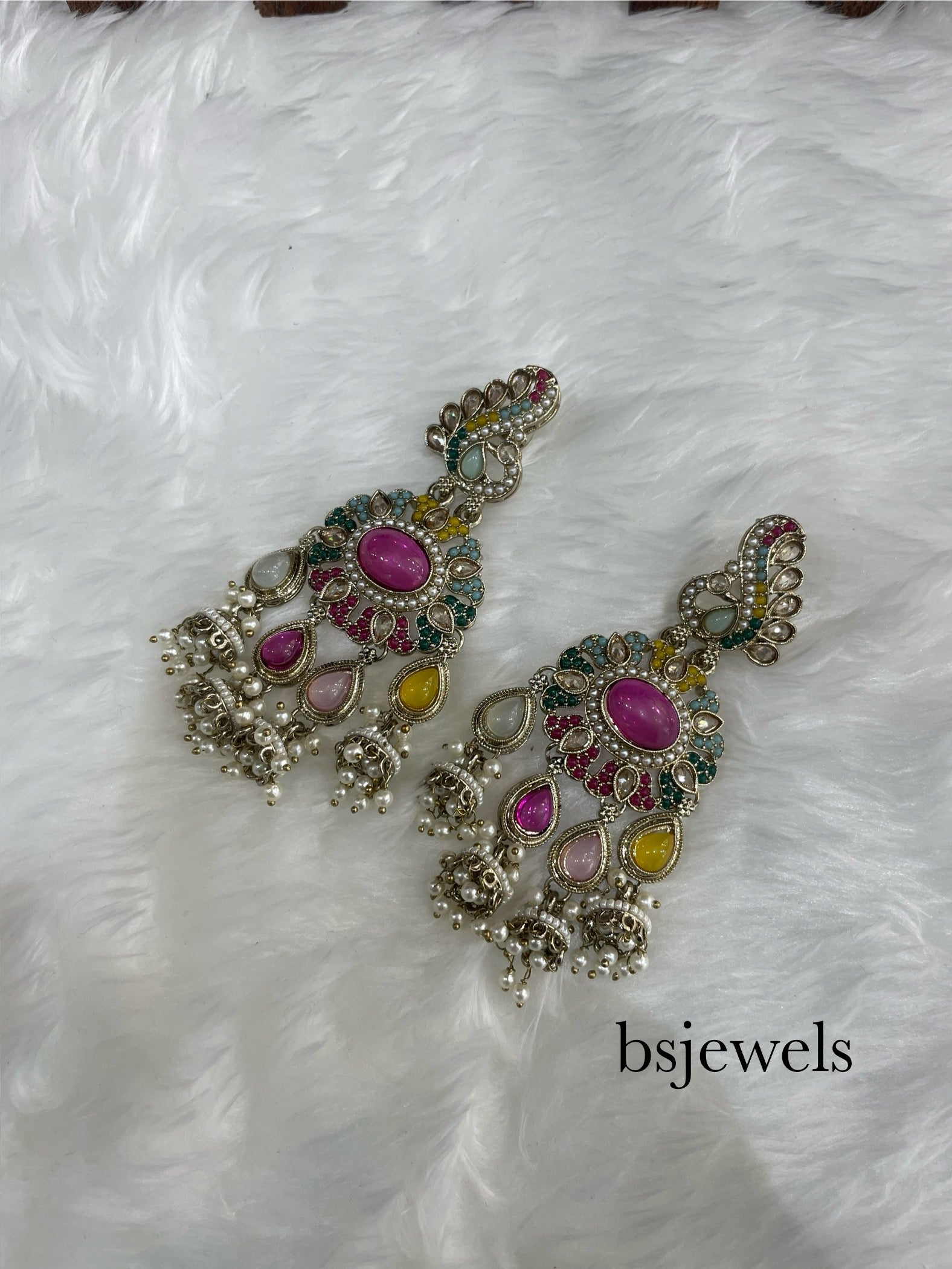 Multicolor Antique Gold Bollywood Sarpunch Earrings