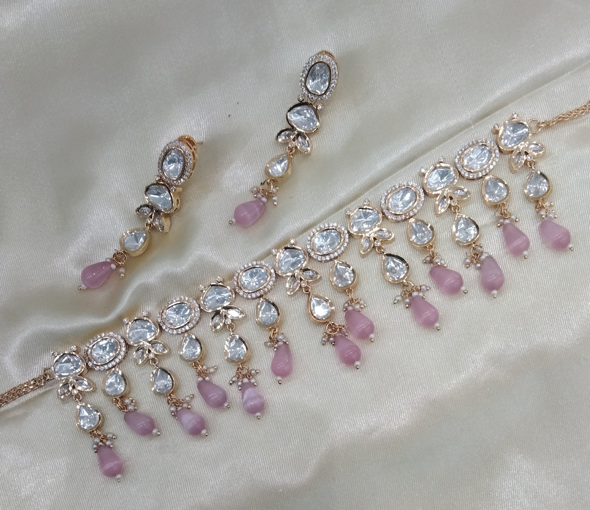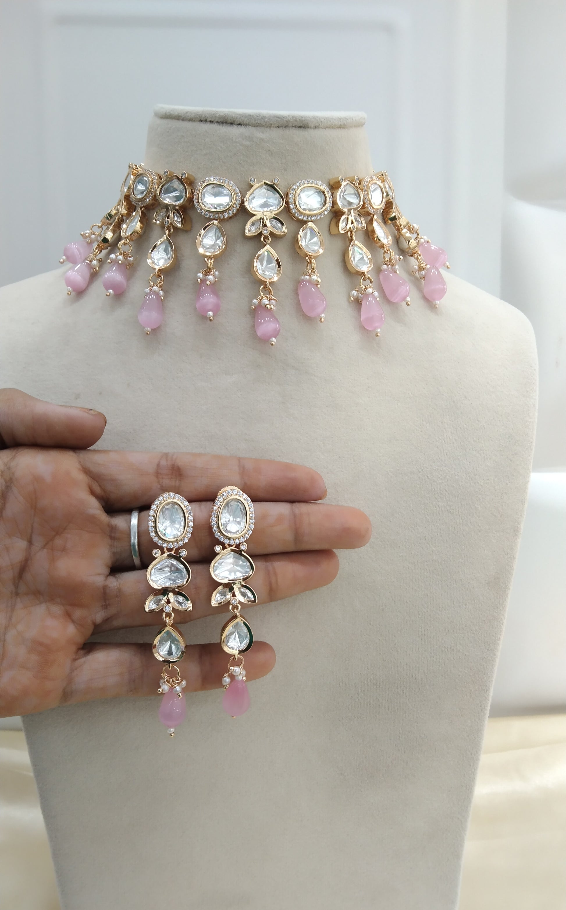 Naina Baby Pink kundan Indian Choker Jewellery Set