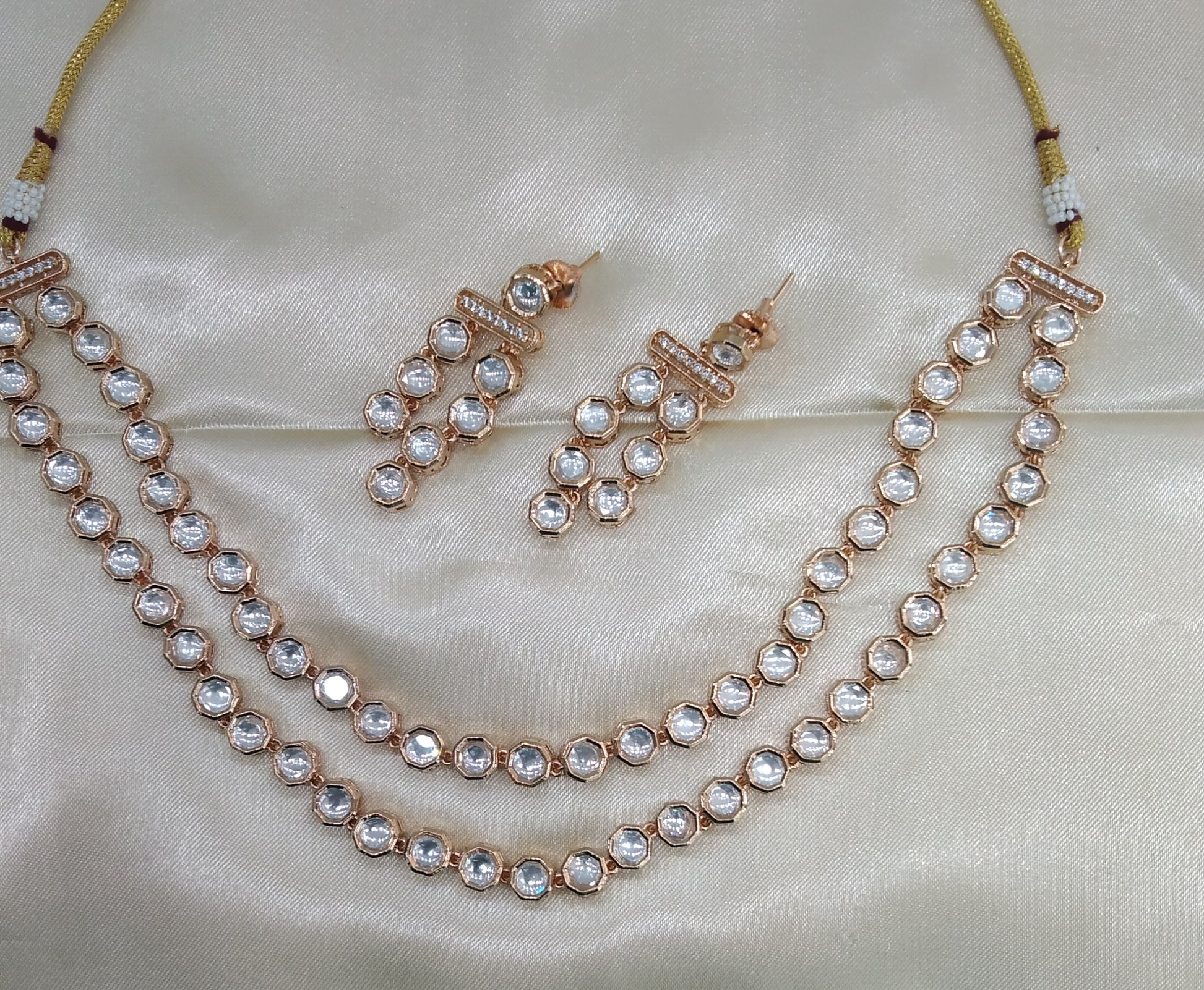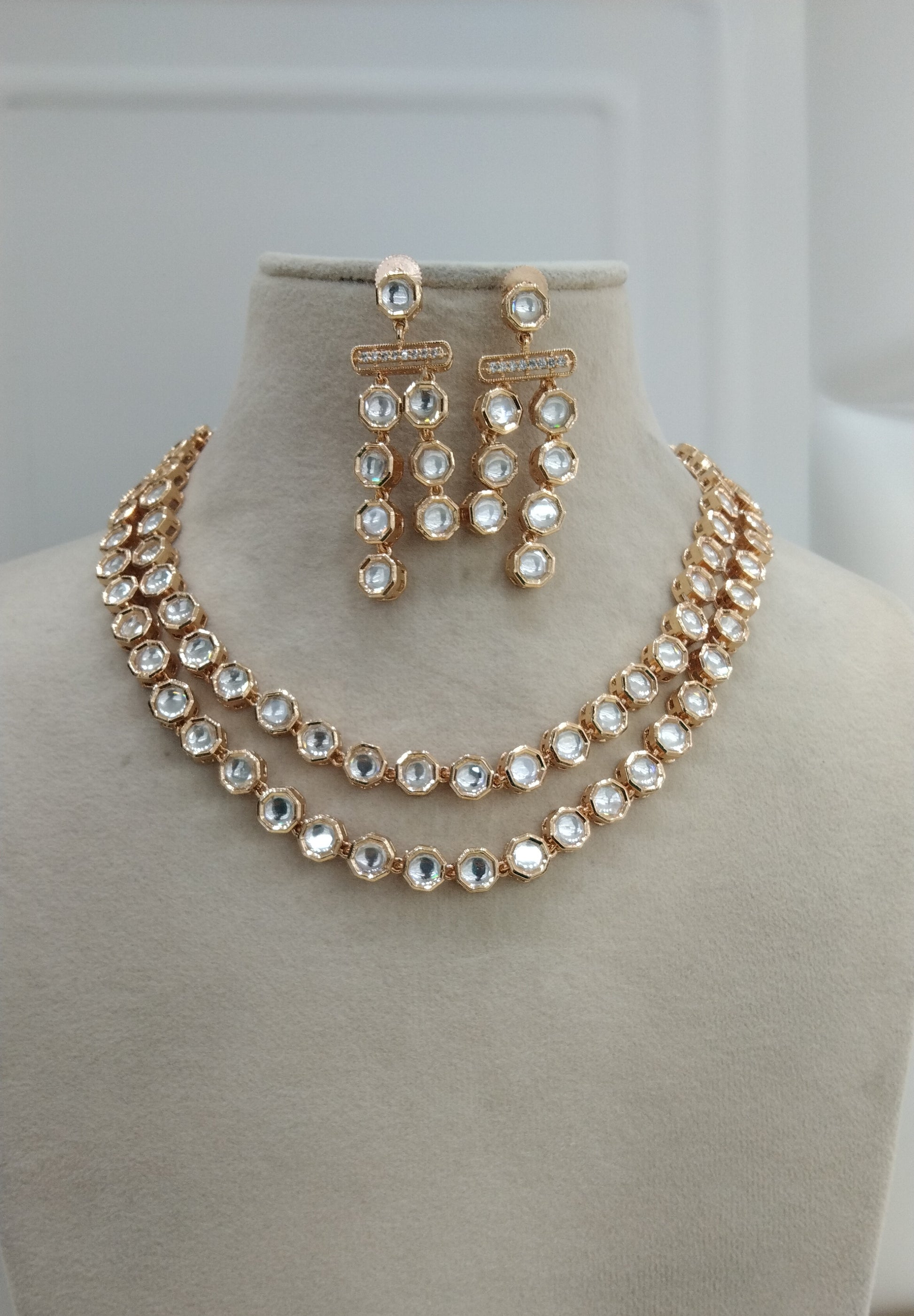 Nirmal Gold White kundan Indian Necklace Jewellery Set