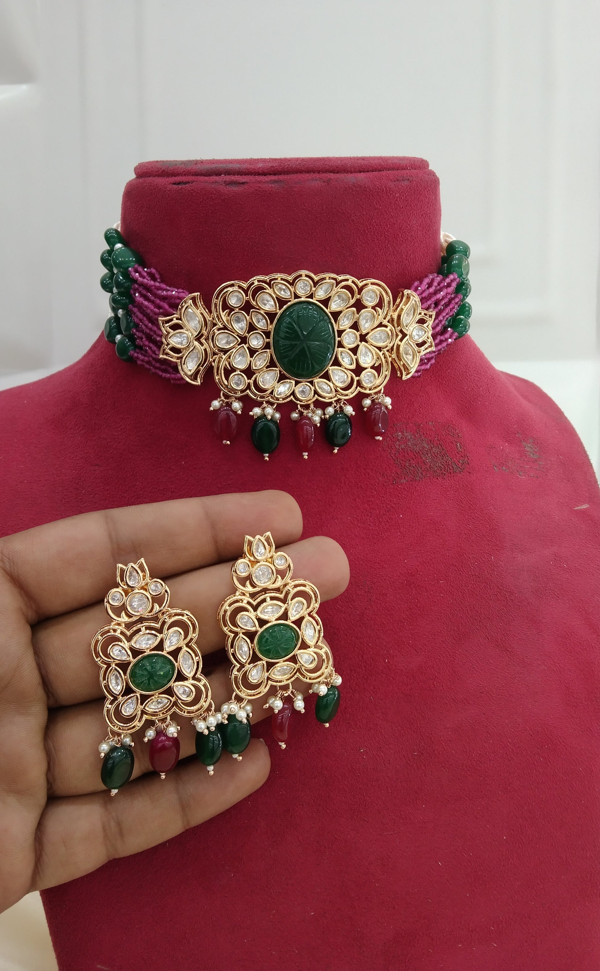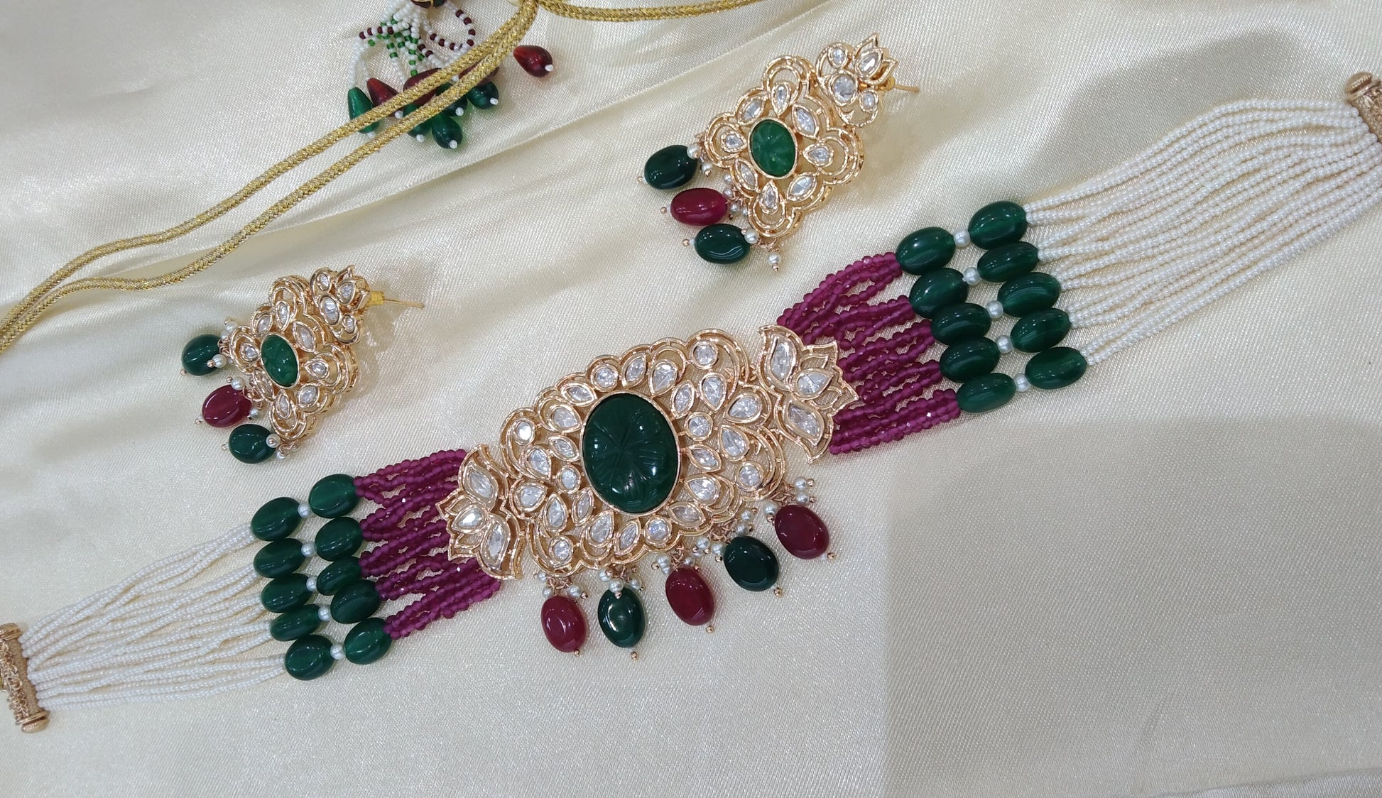 Nikk Ruby Green kundan Indian Choker Jewellery Set
