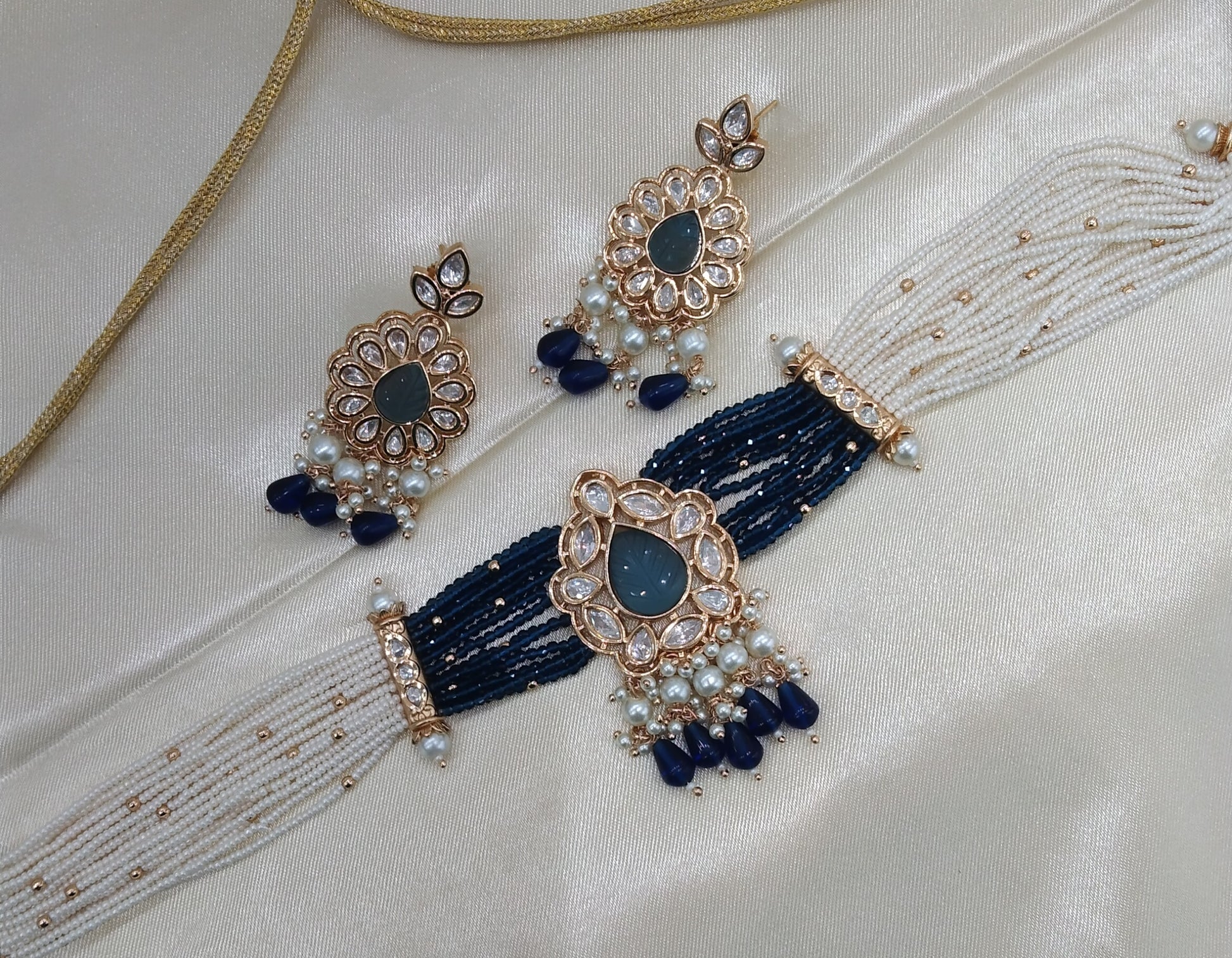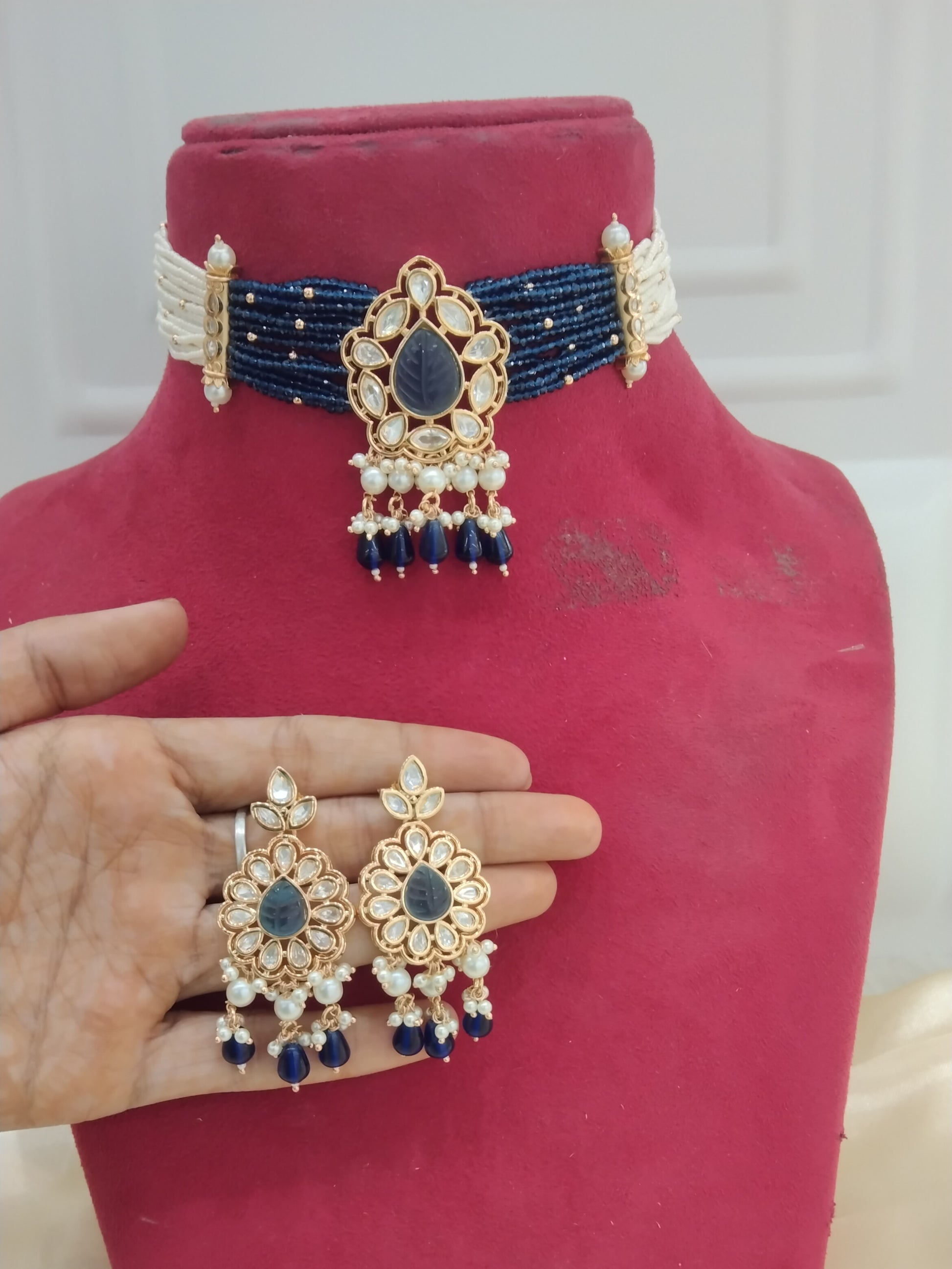 Navi Navy blue kundan Indian Choker Jewellery Set