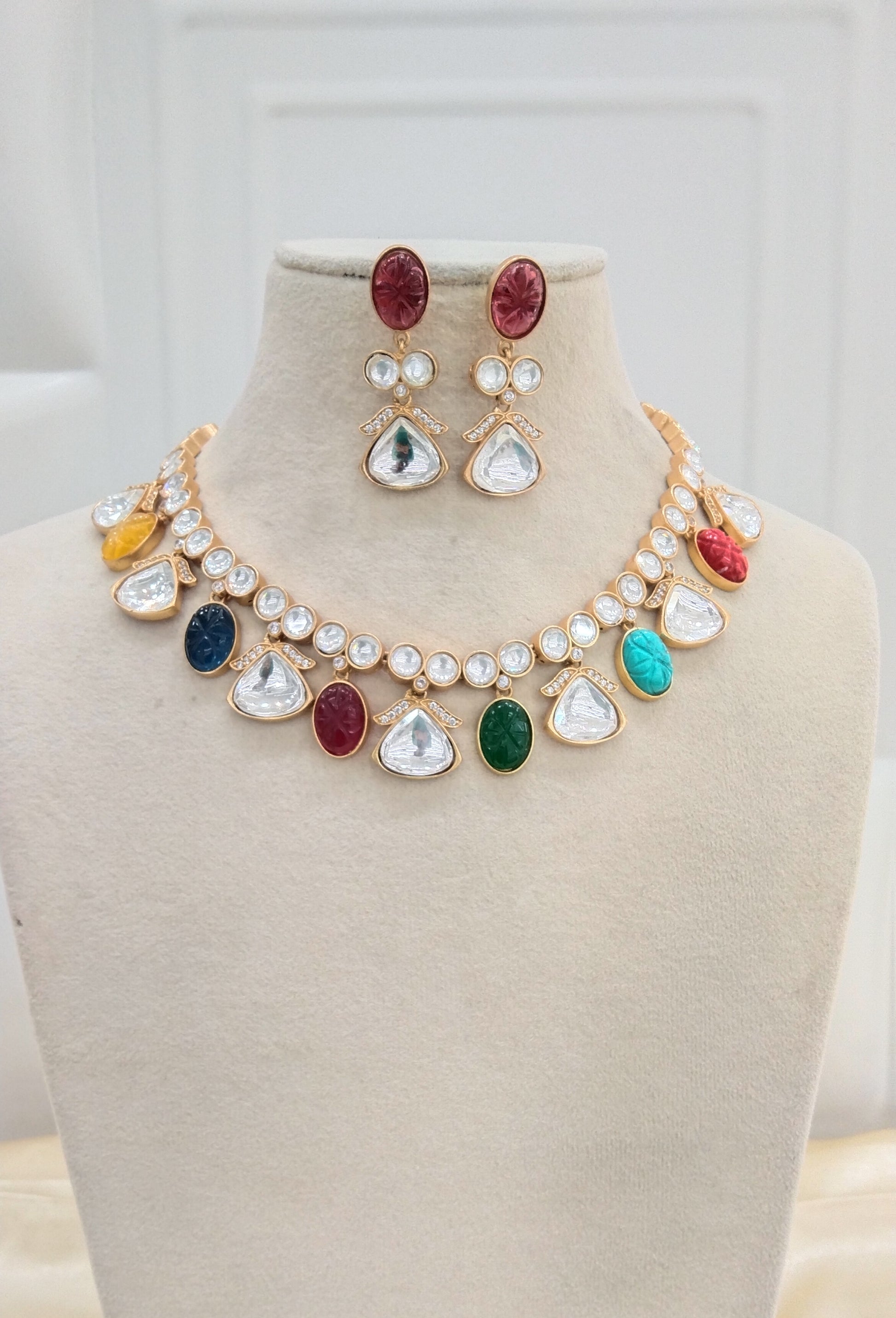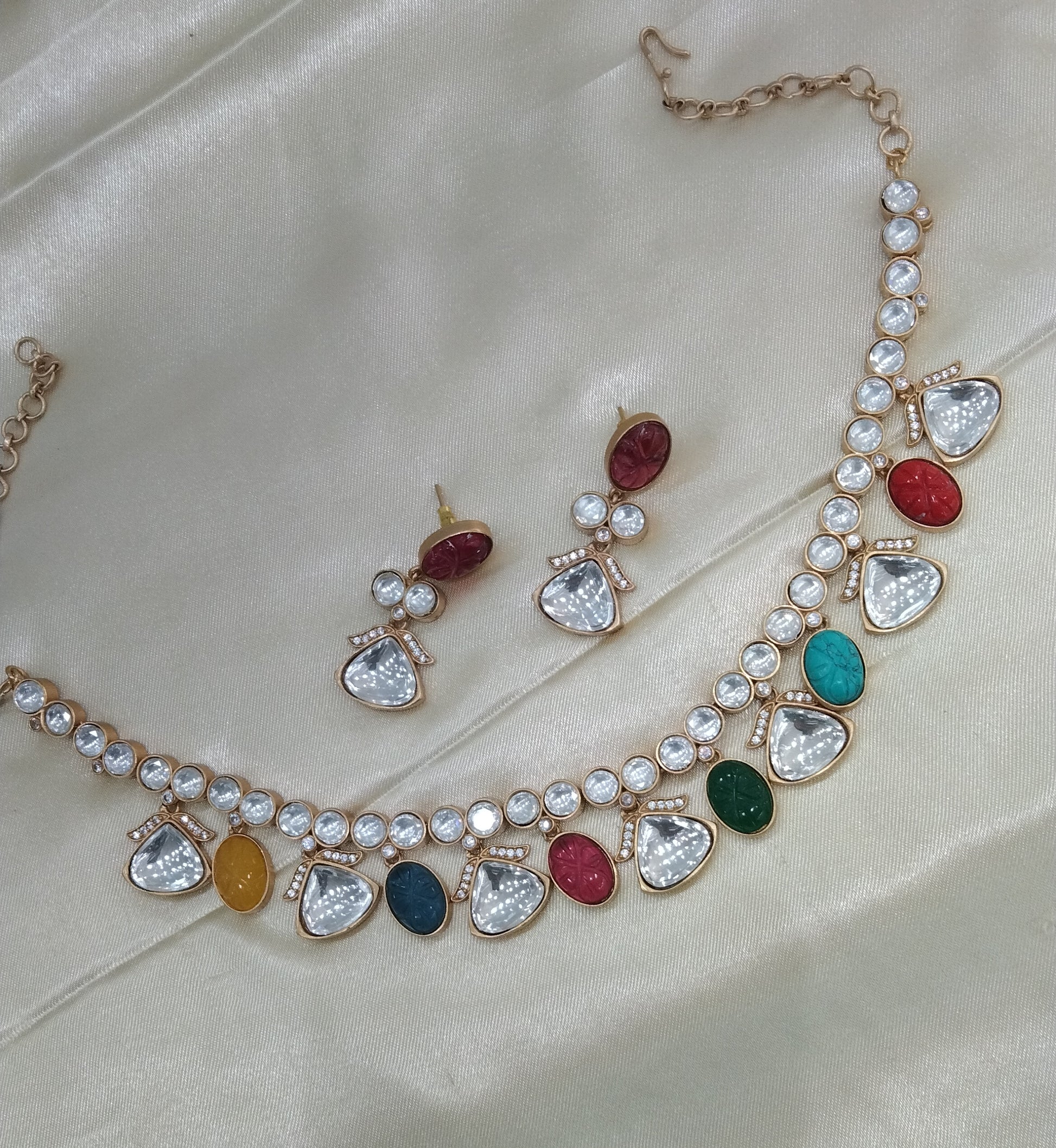 Neha Multicolor kundan Indian Necklace Jewellery Set