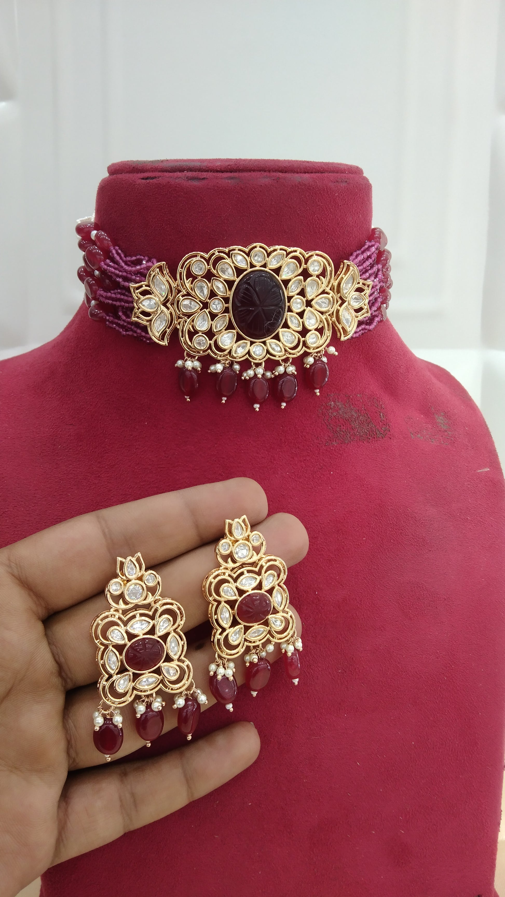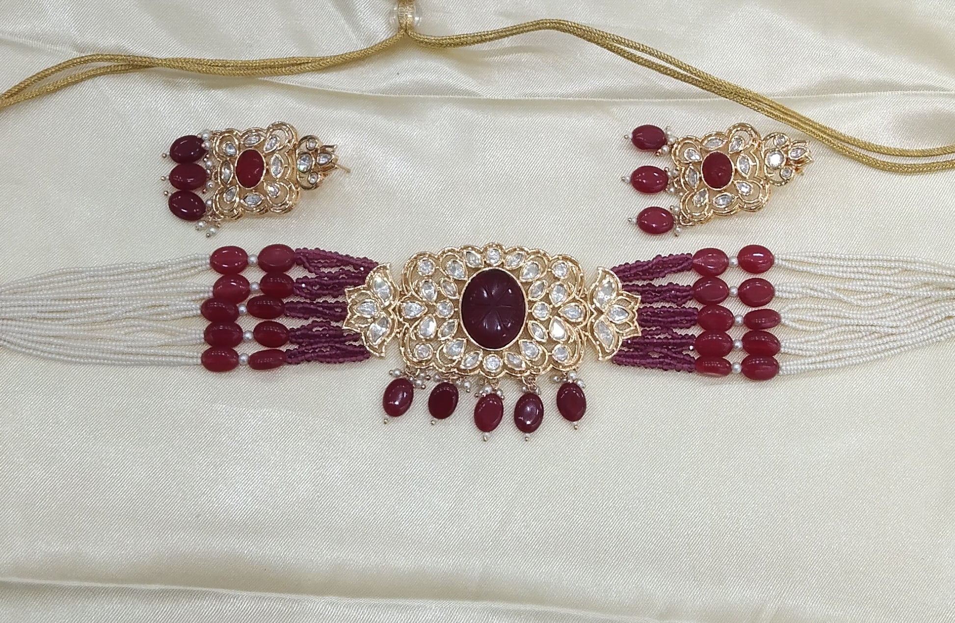 Nikk Maroon kundan Indian Choker Jewellery Set