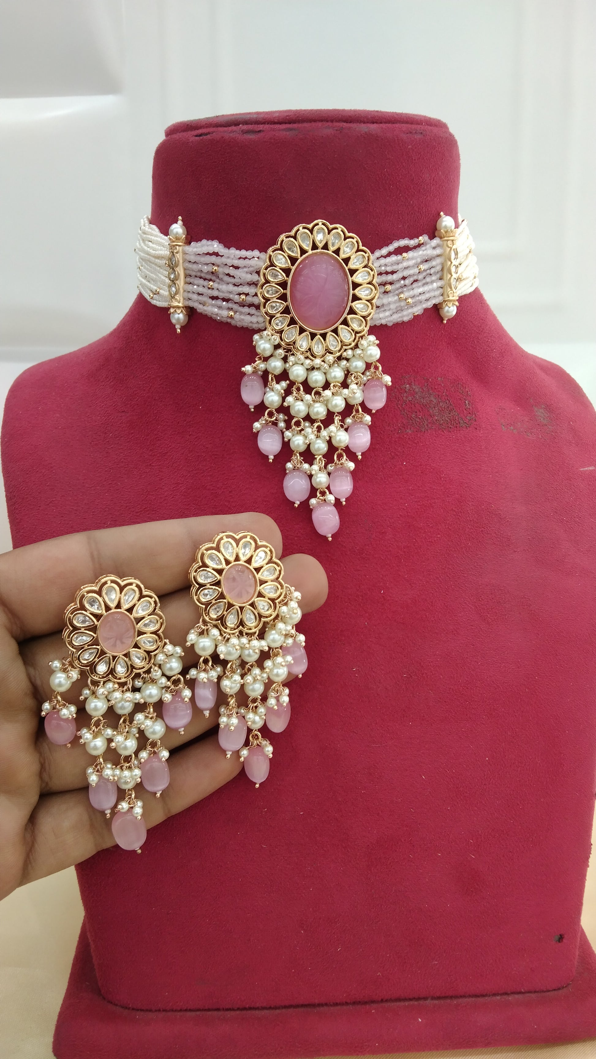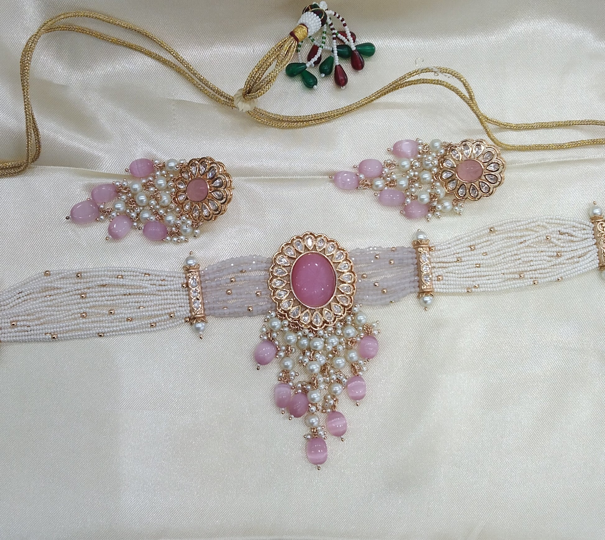 Nikk Baby Pink kundan Indian Choker Jewellery Set