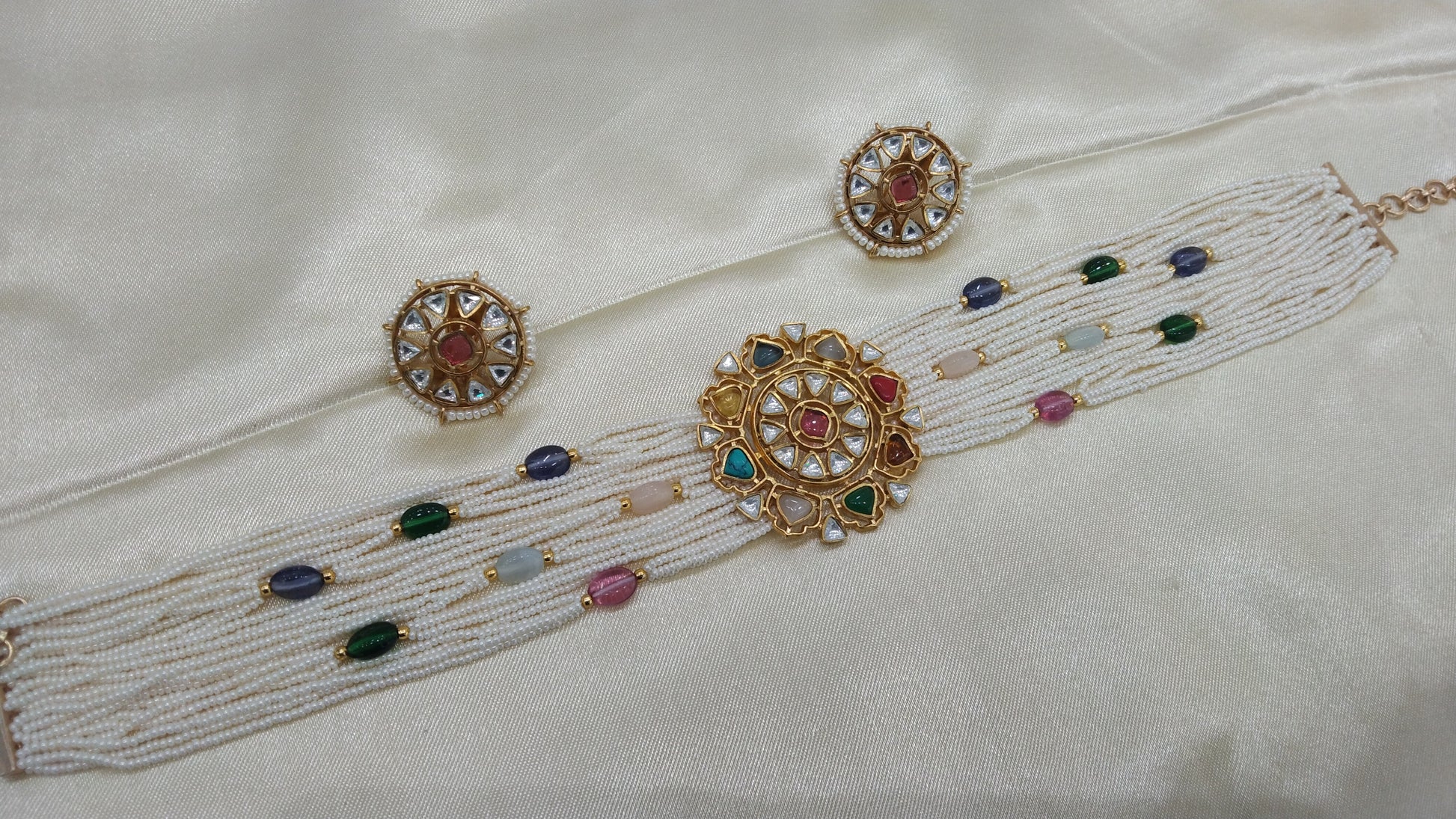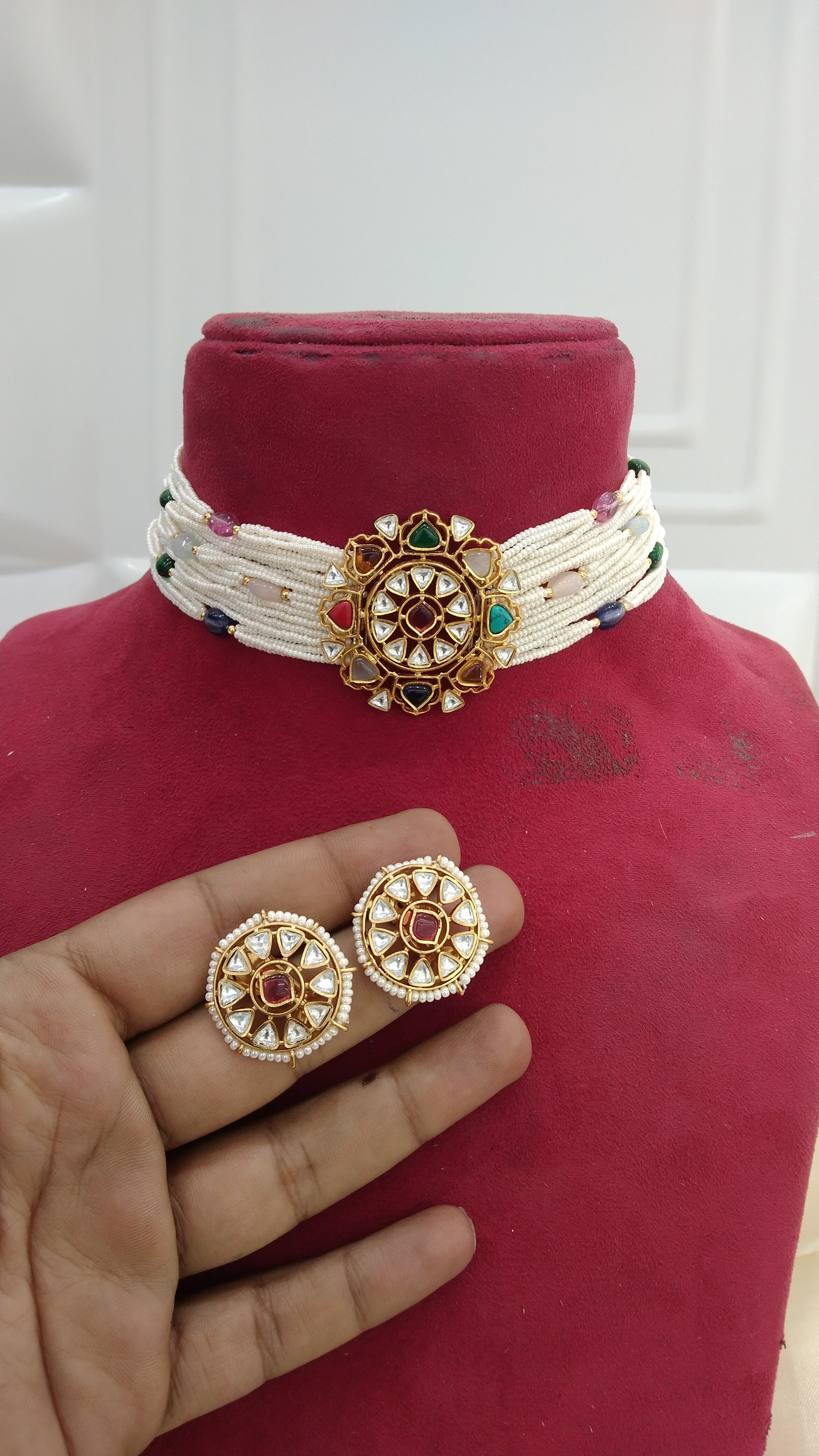 Nimo Multicolor kundan Indian Choker Jewellery Set