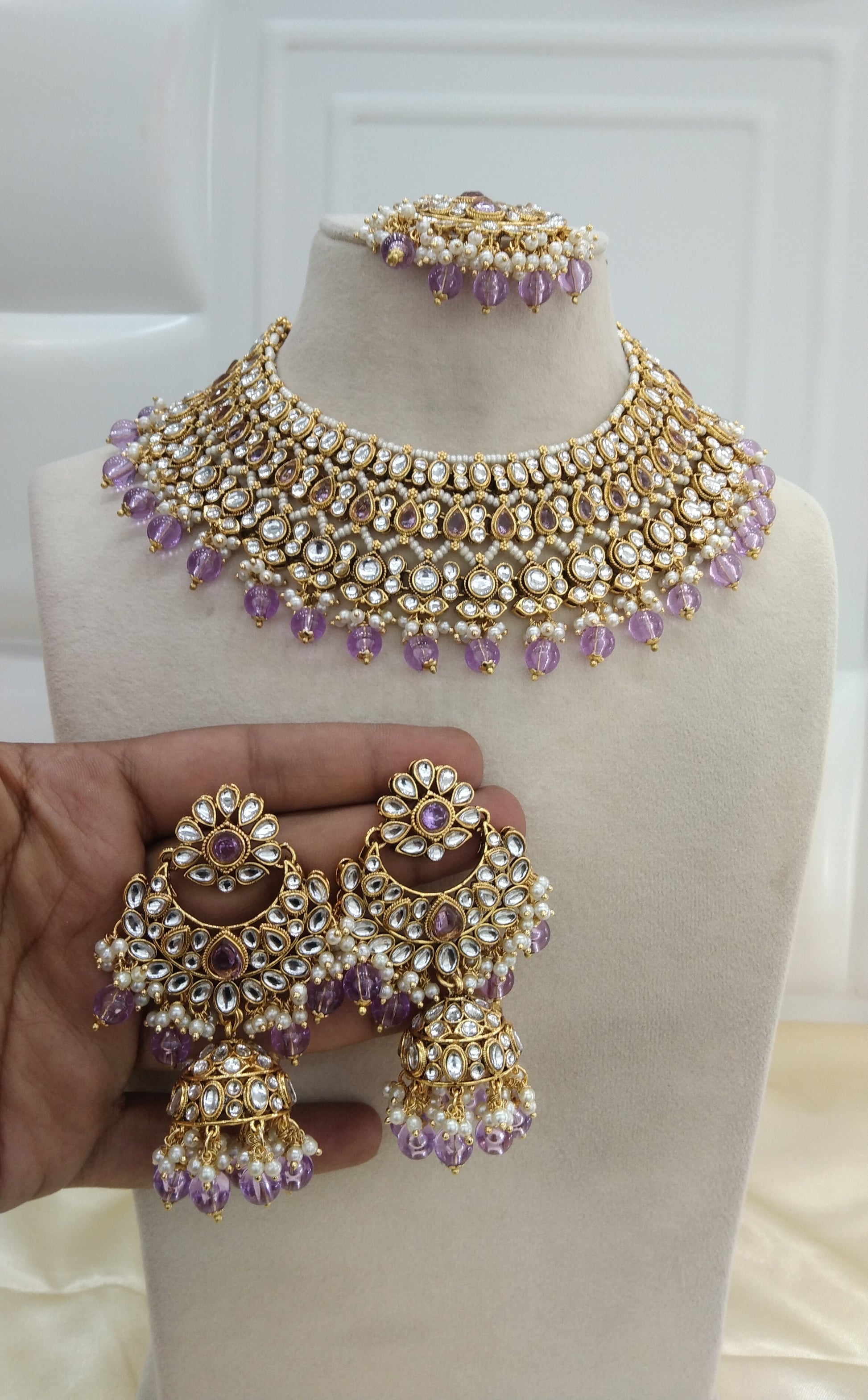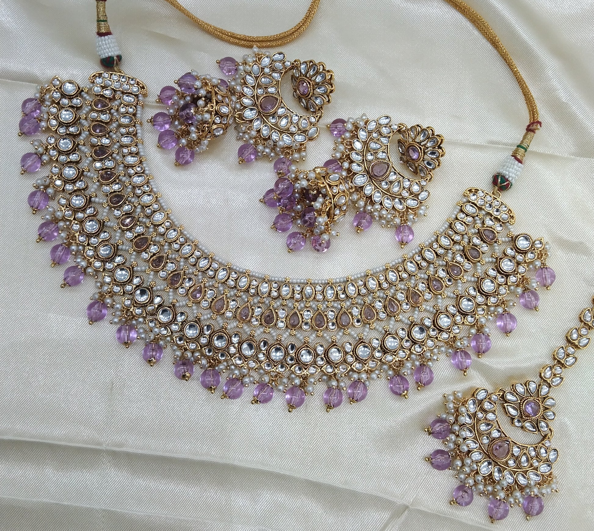 Nuri Lavender kundan Indian Necklace Jewellery Set