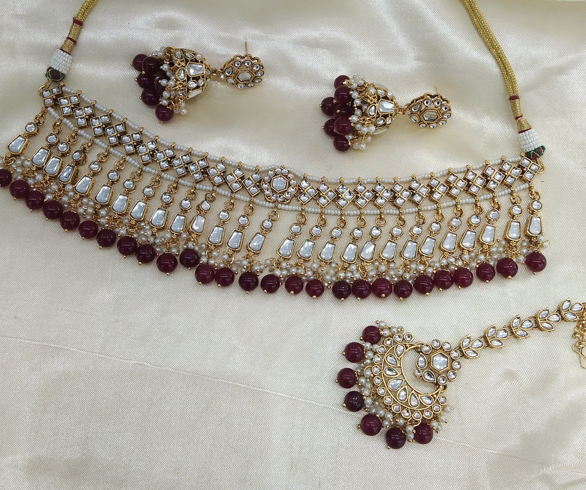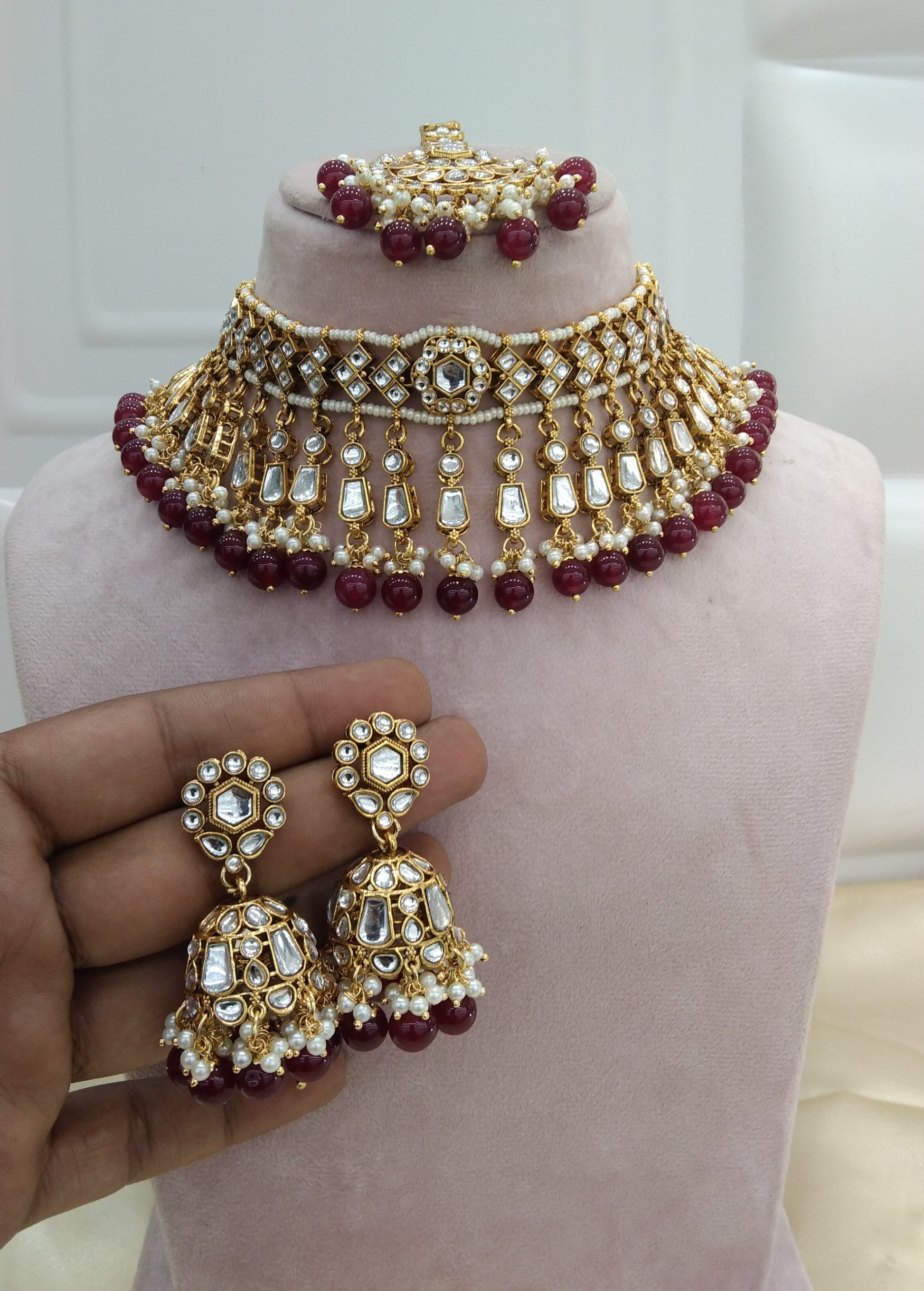 Orignal Maroon kundan Indian Choker Jewellery Set