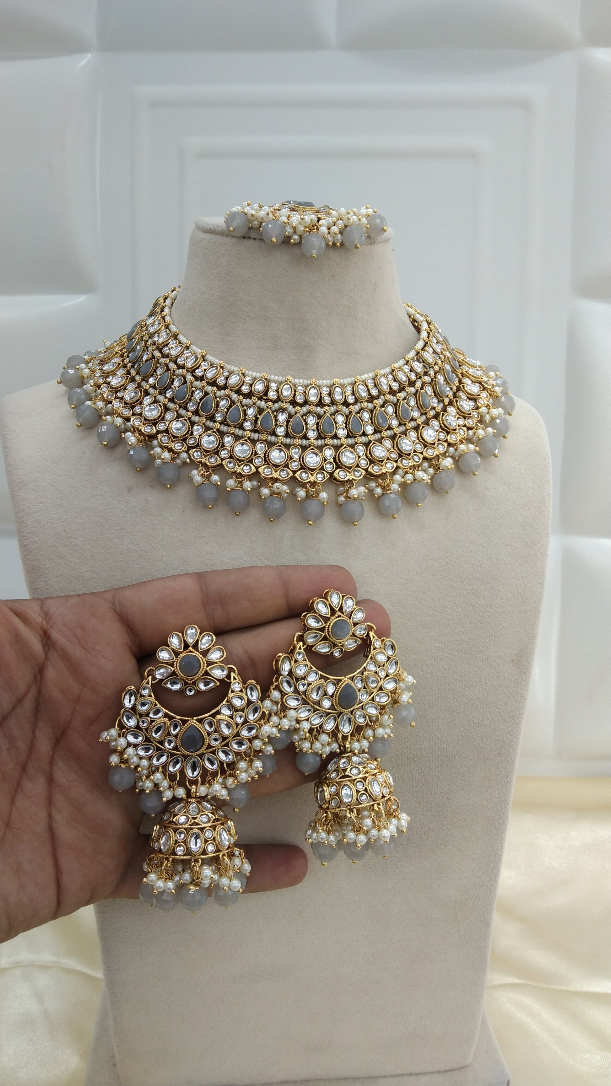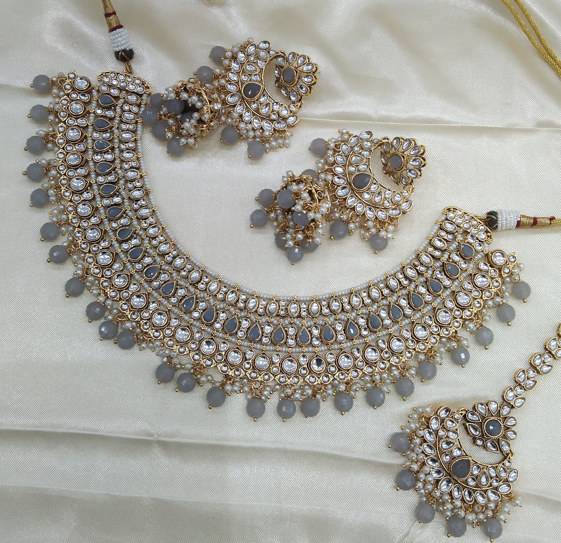 Nuri Grey kundan Indian Necklace Jewellery Set