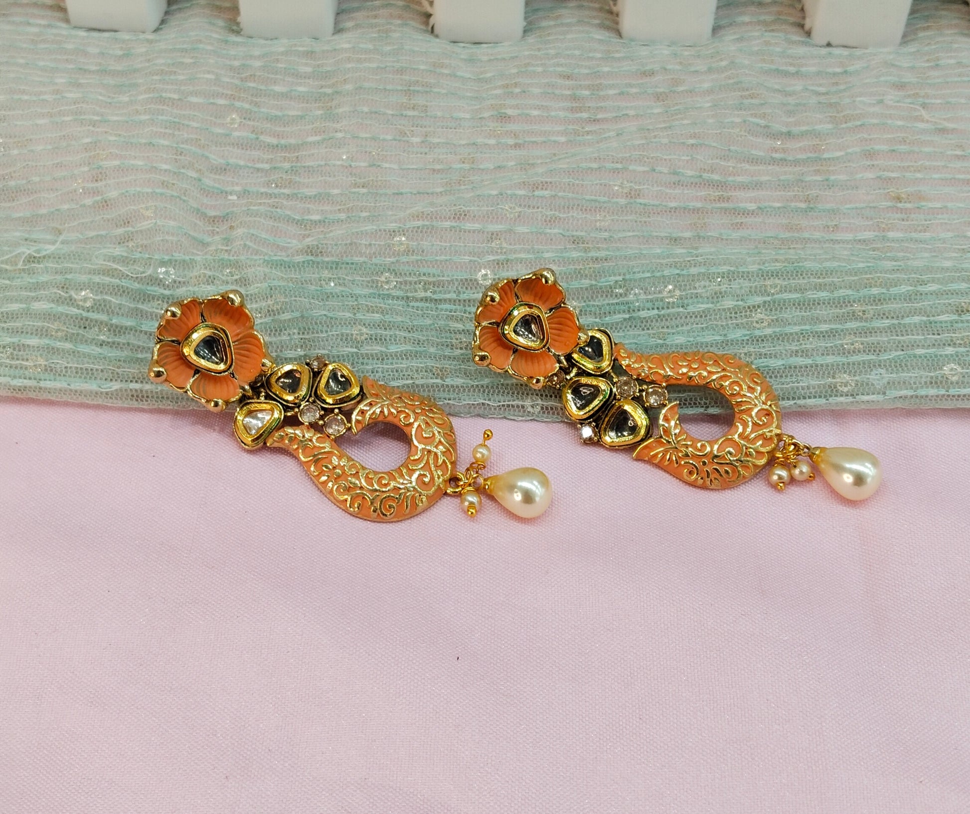 Orange Peach Bollywood Rohit Earrings