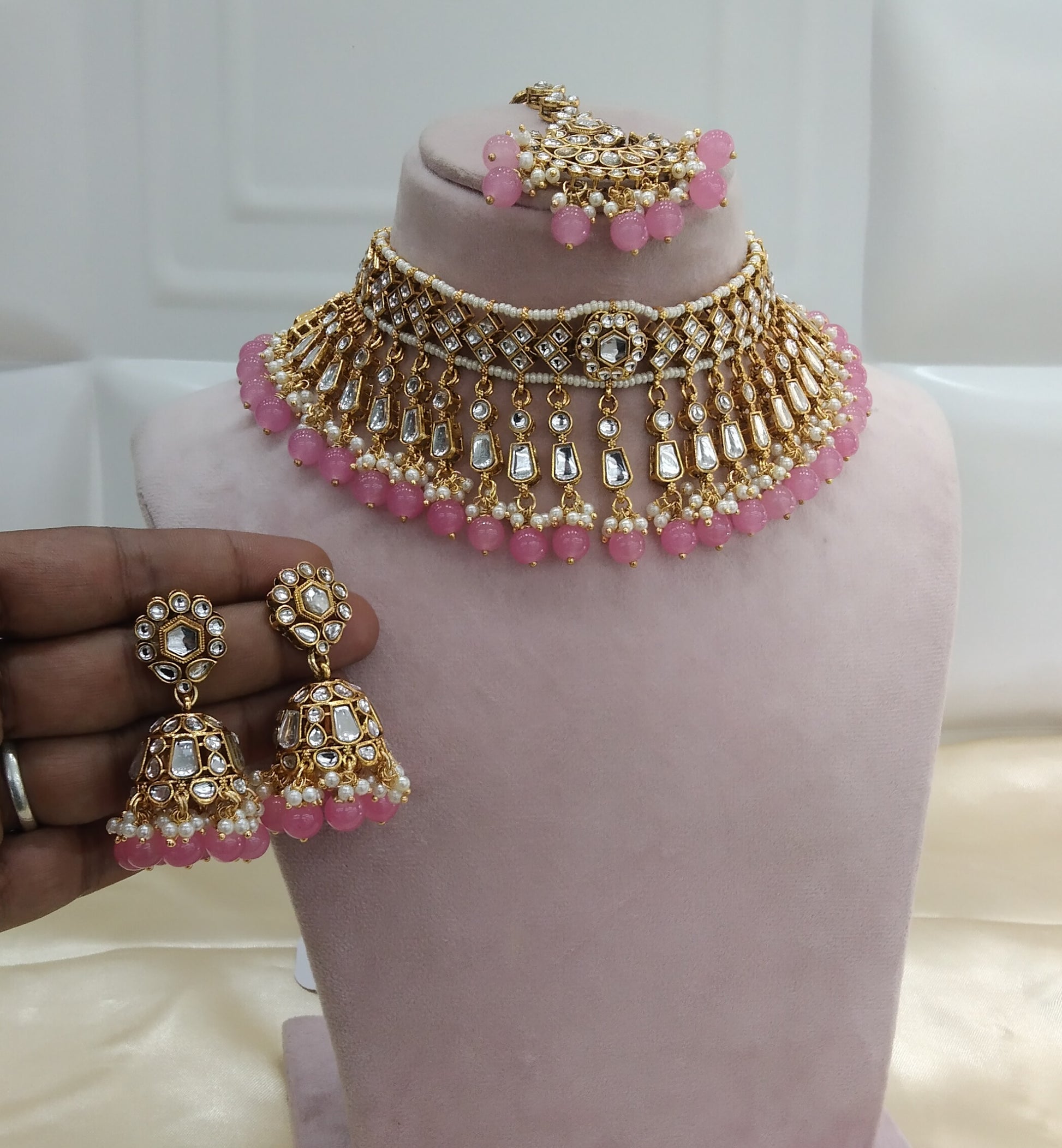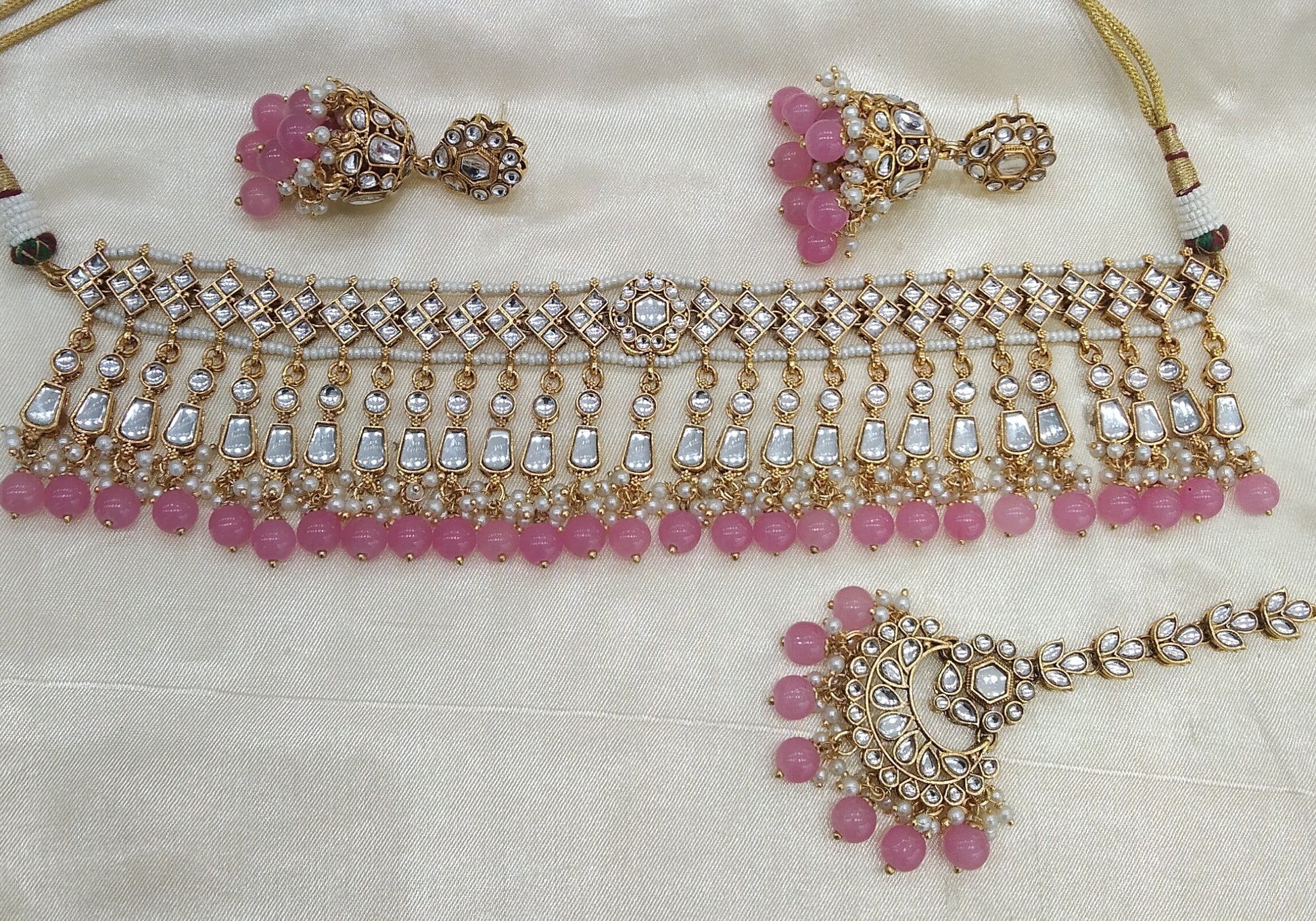 Orignal Pink kundan Indian Choker Jewellery Set