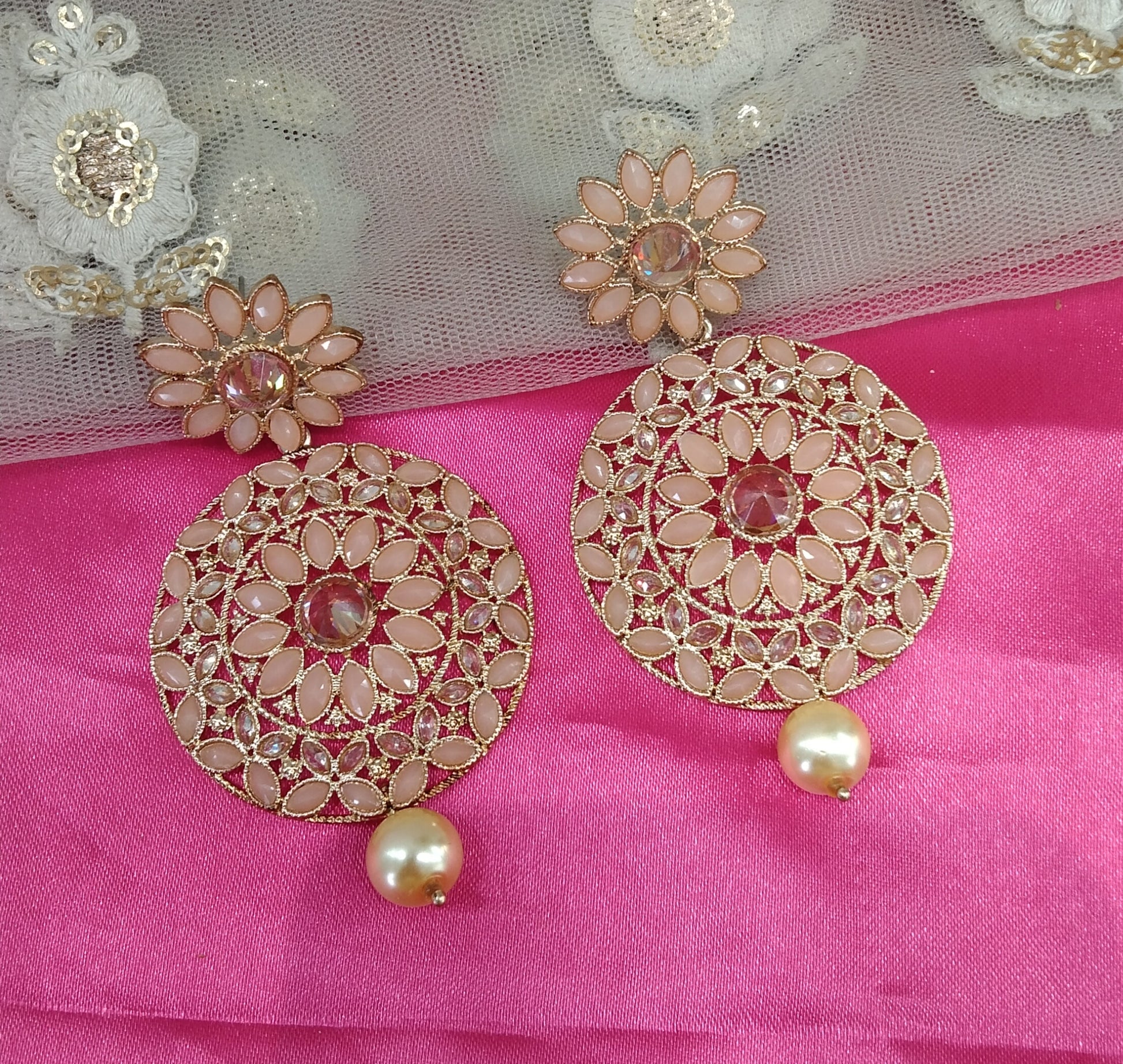 Peach Champagne Gold Nizhng Bollywood Earrings