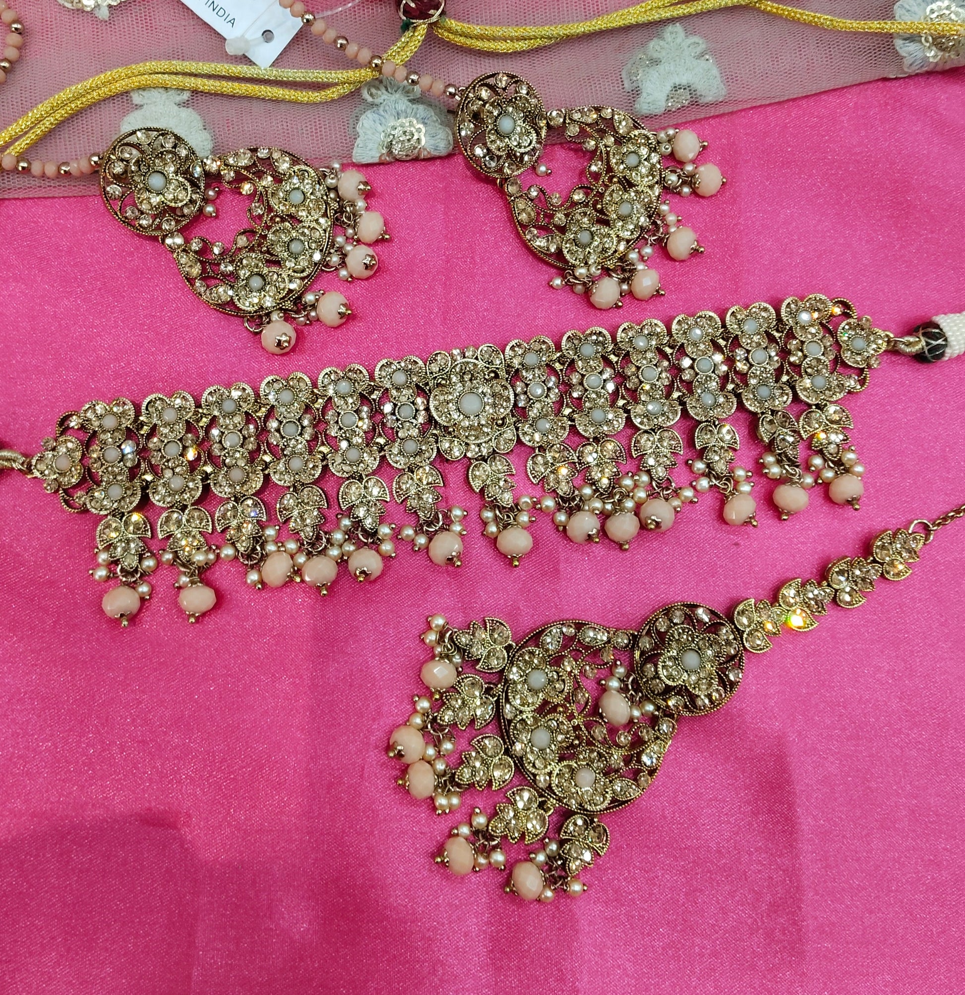Peach Crystal Stone Choker Jewellery Soraj Set