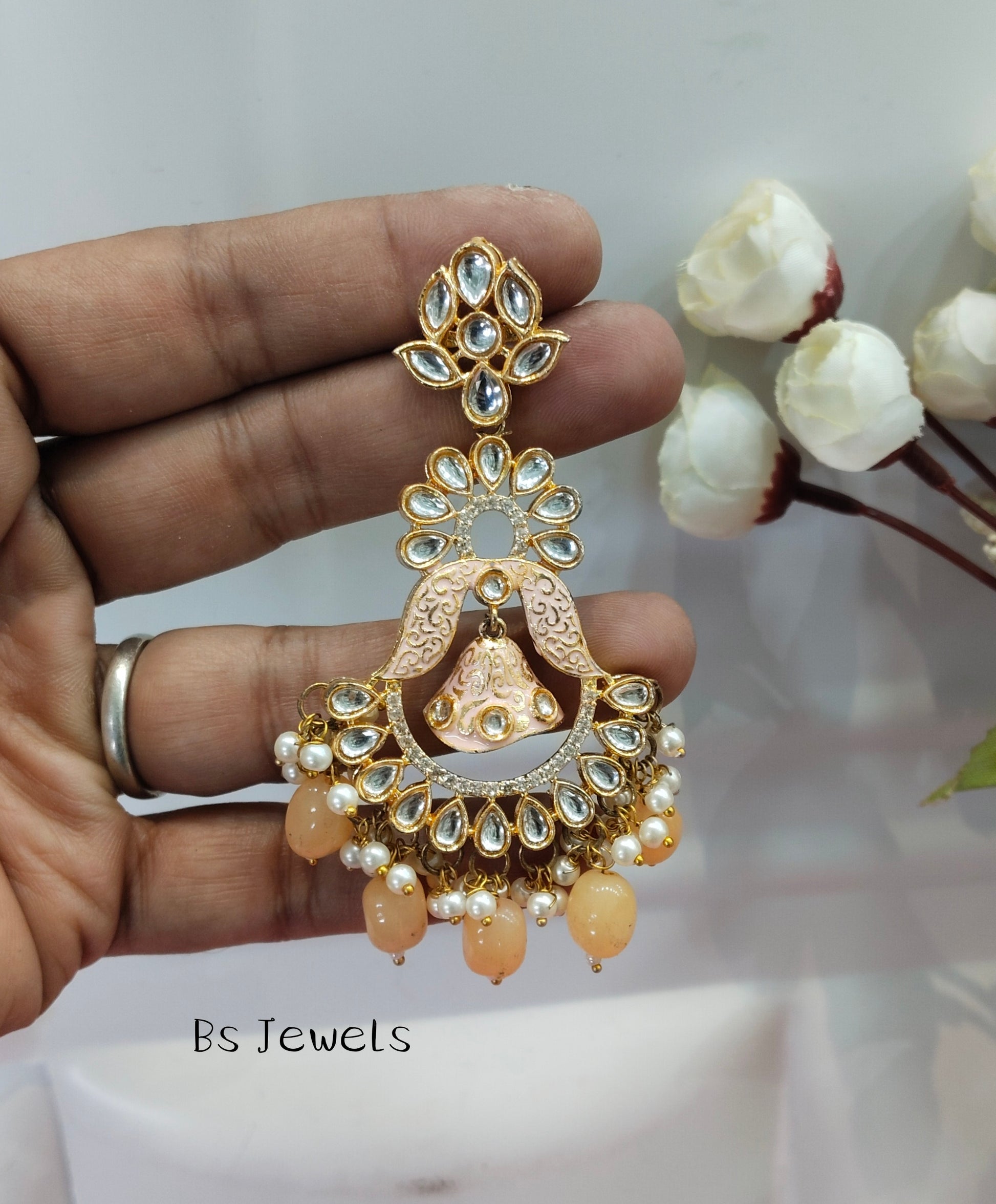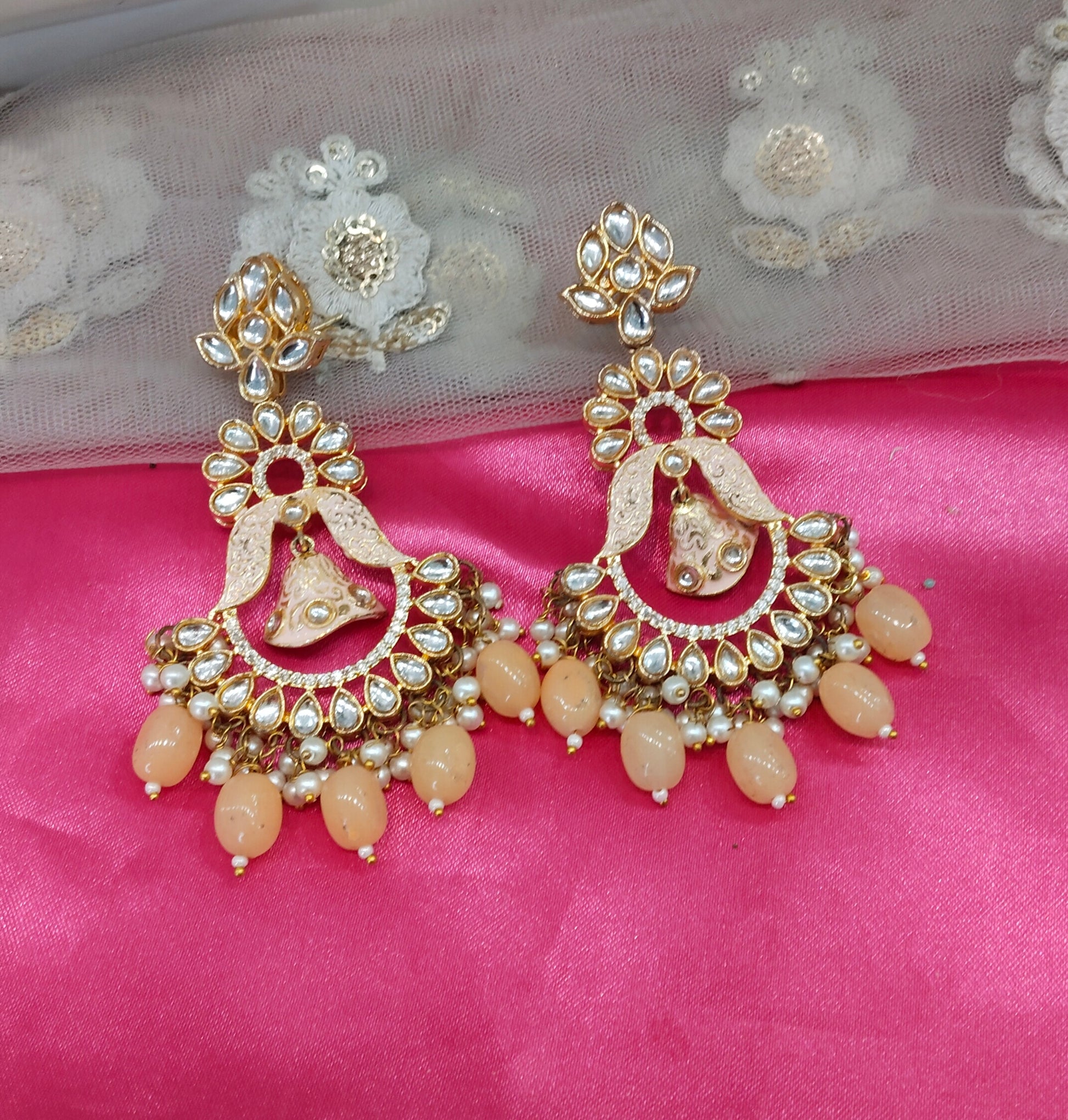 Orange Peach Kundan Humraah Bollywood Earrings