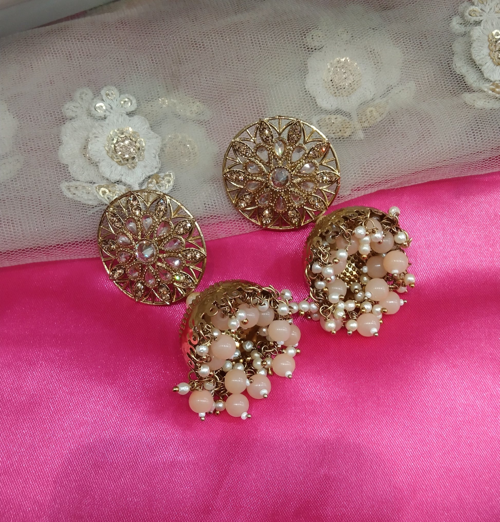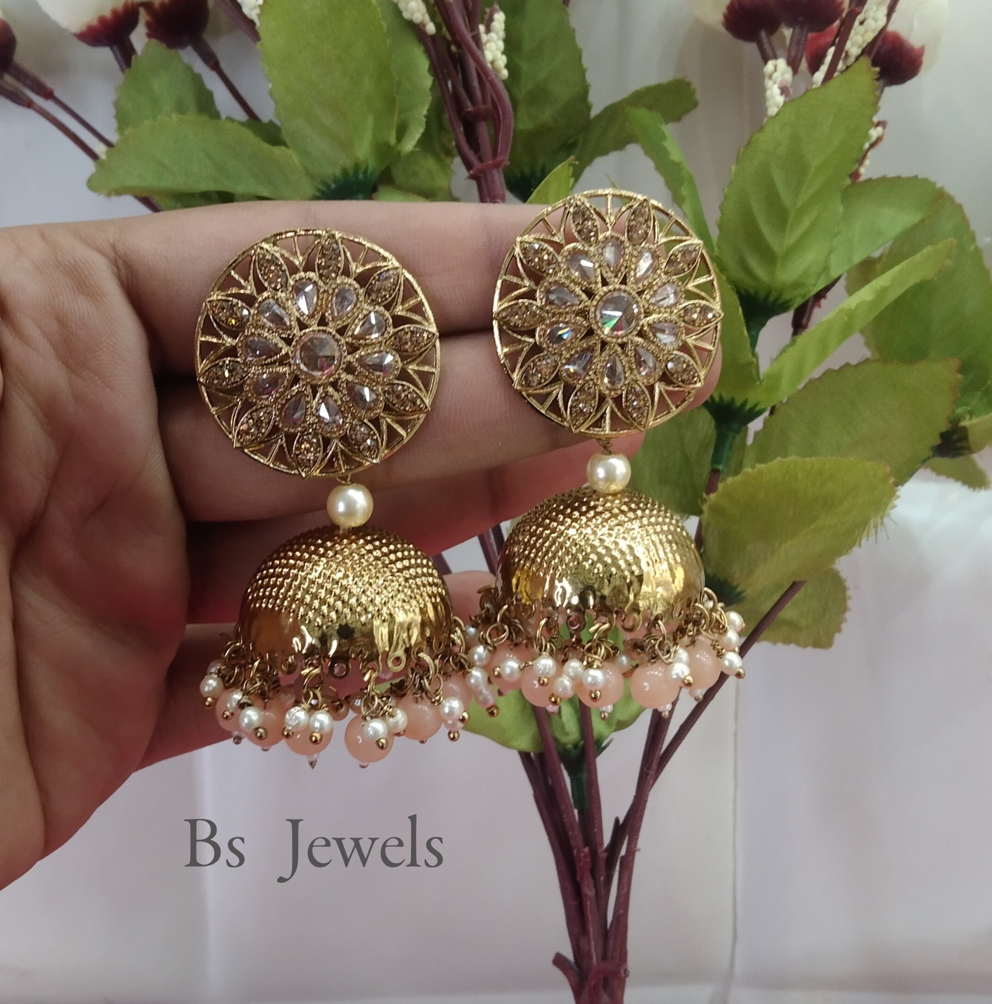 Peach Kundan Jhumka Sam Bollywood Earrings