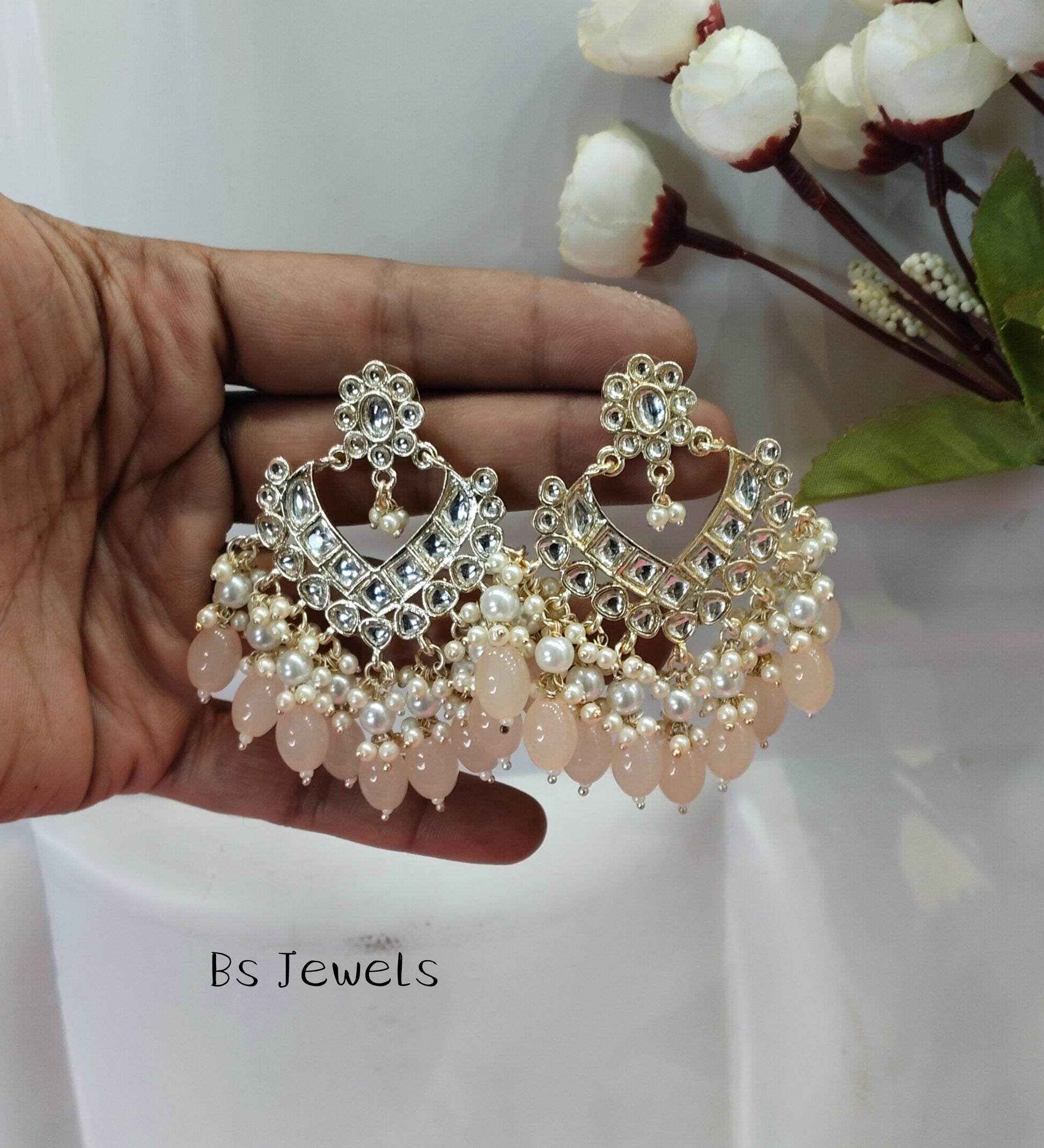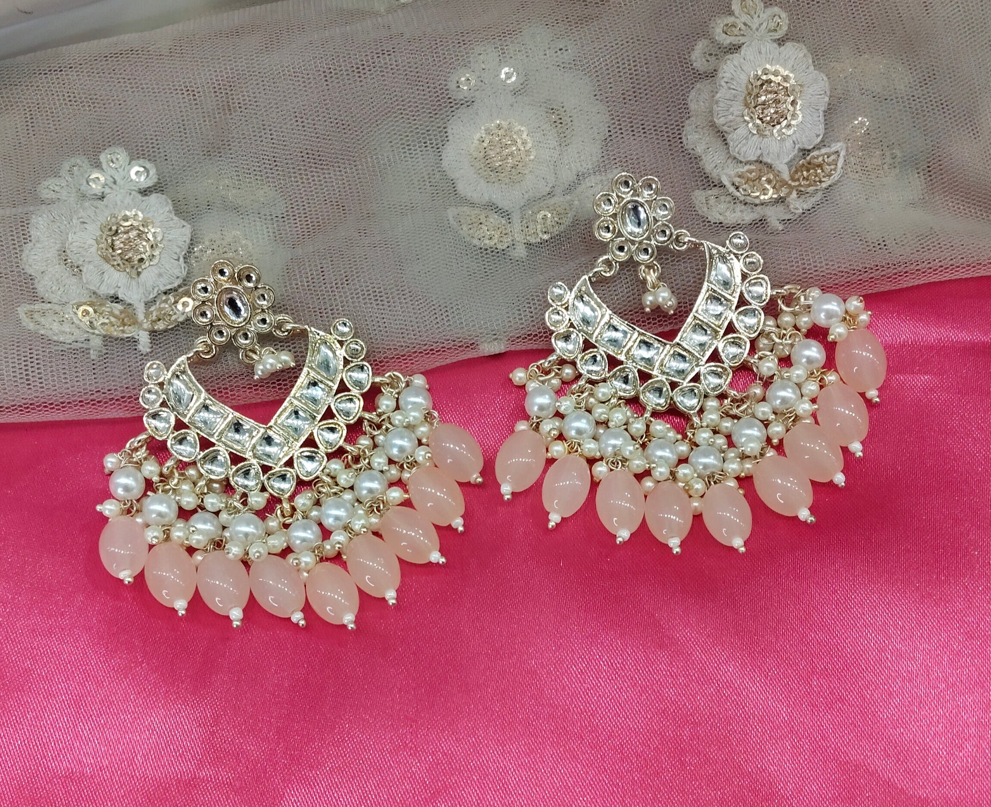 Peach Kundan Learn Bollywood Earrings