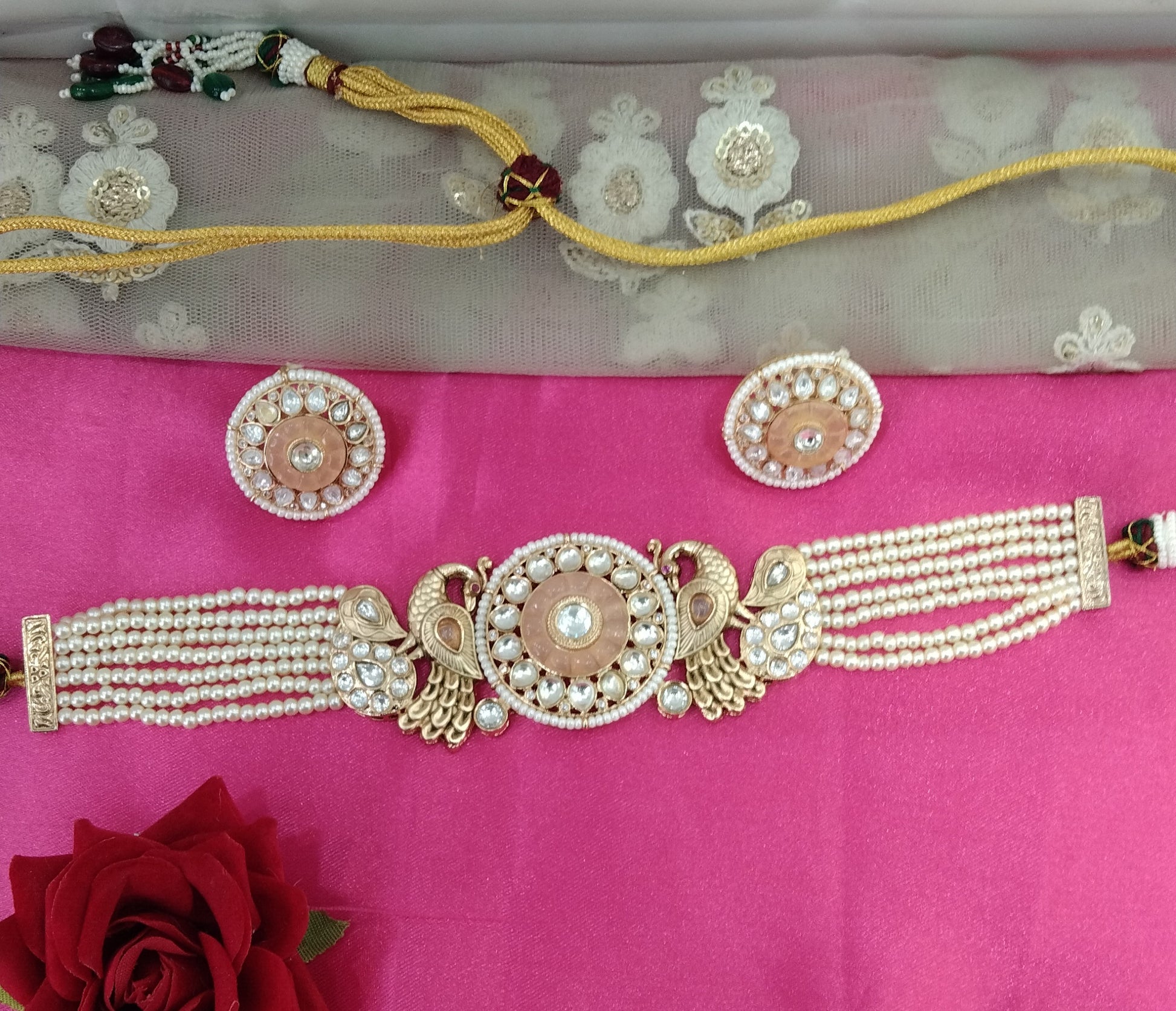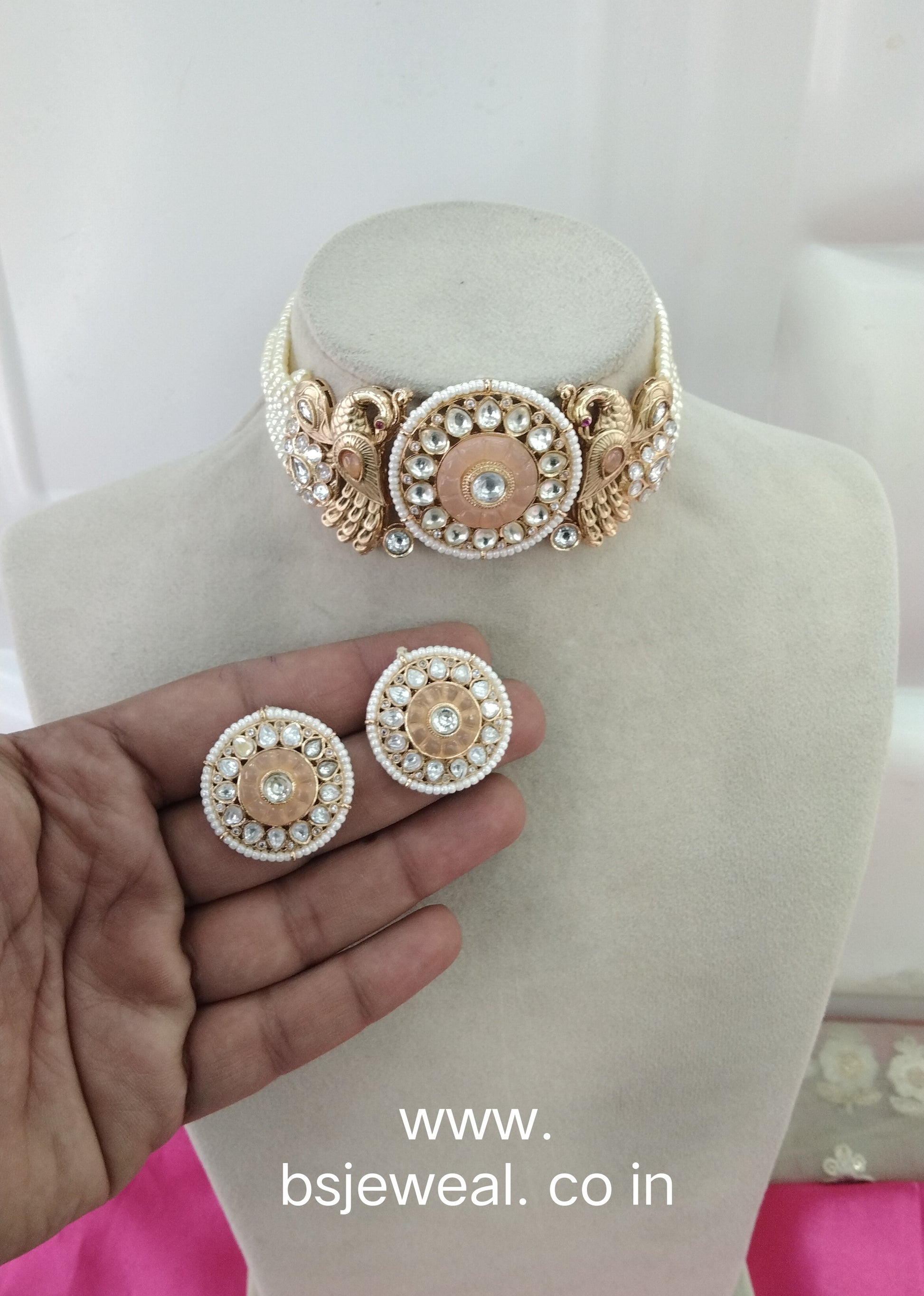 Peach Moissanite Kundan Choker Jewellery Shweta Set