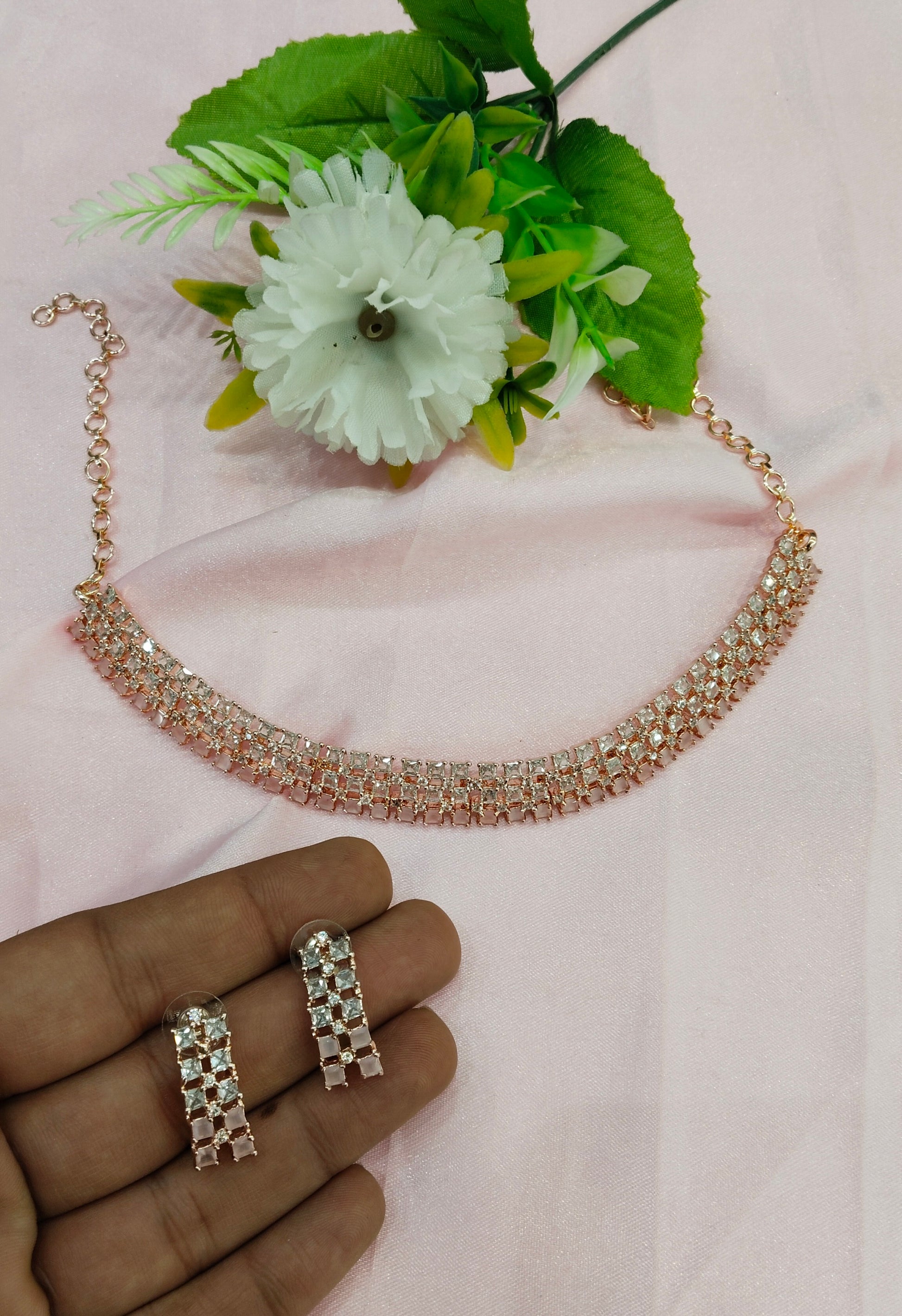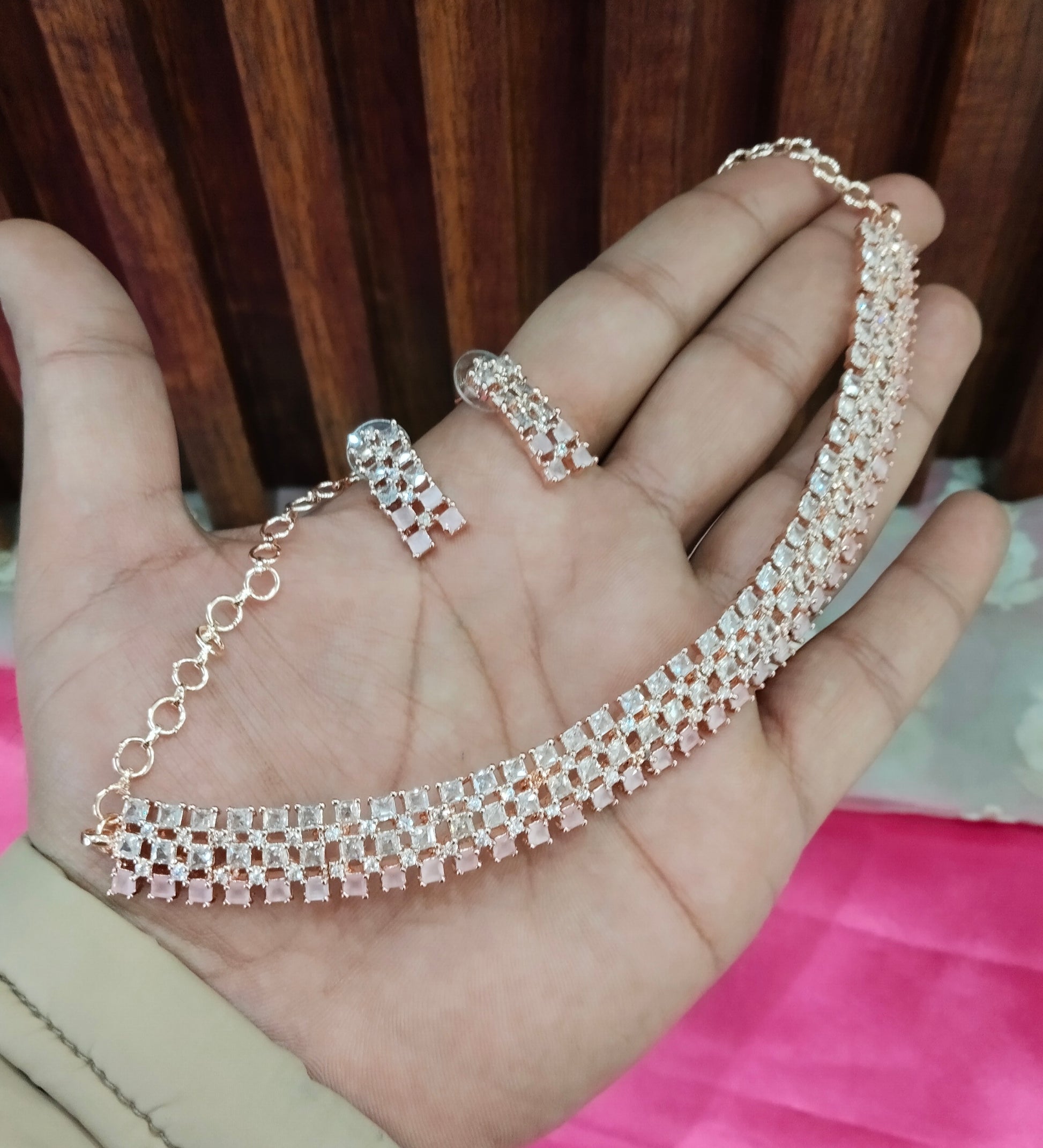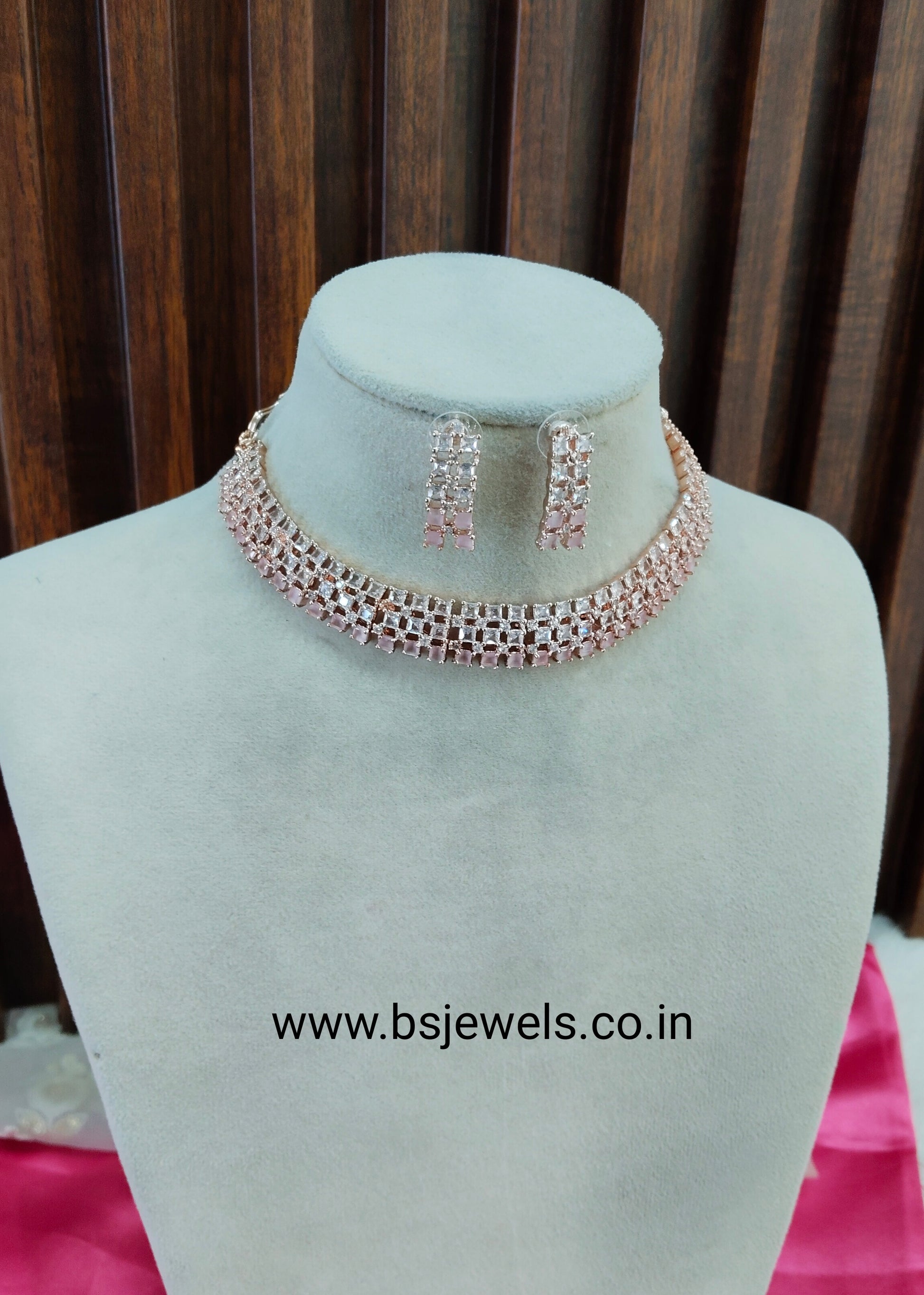 Pink Rose CZ Necklace Jewellery Glendale Set