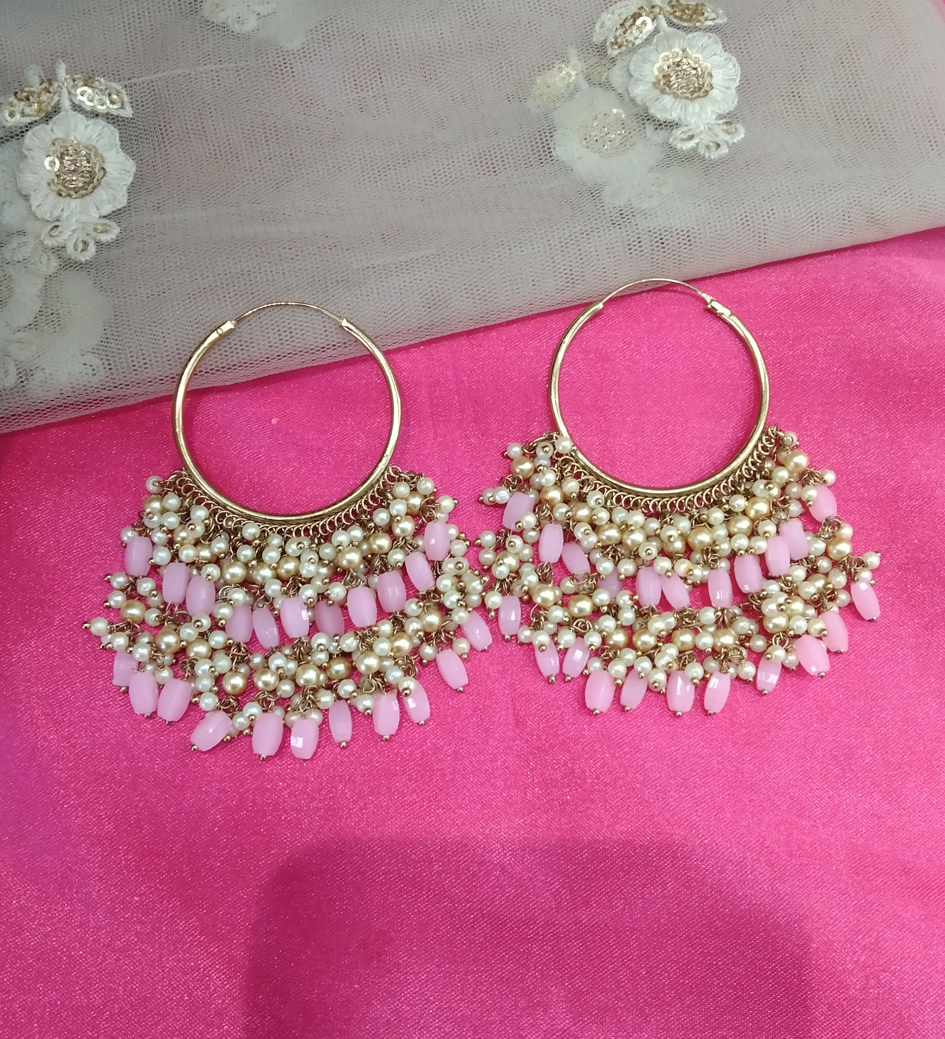 Pink Antique Balli Hoop Tenny Bollywood Earrings