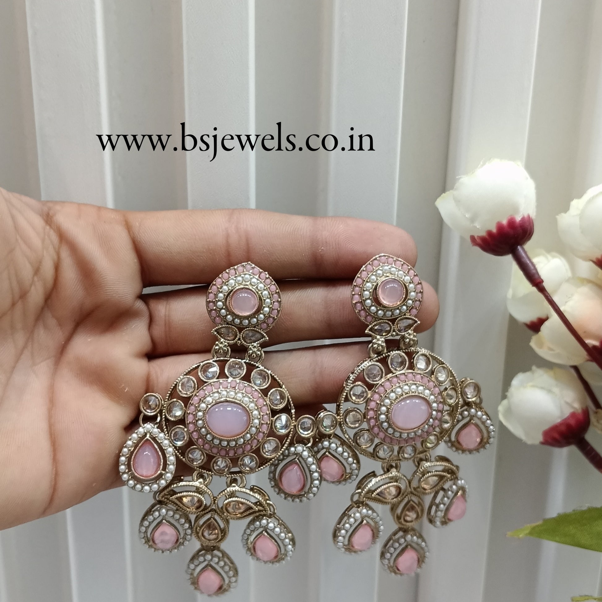 Pink Antique Gold Bollywood Suresh Earrings