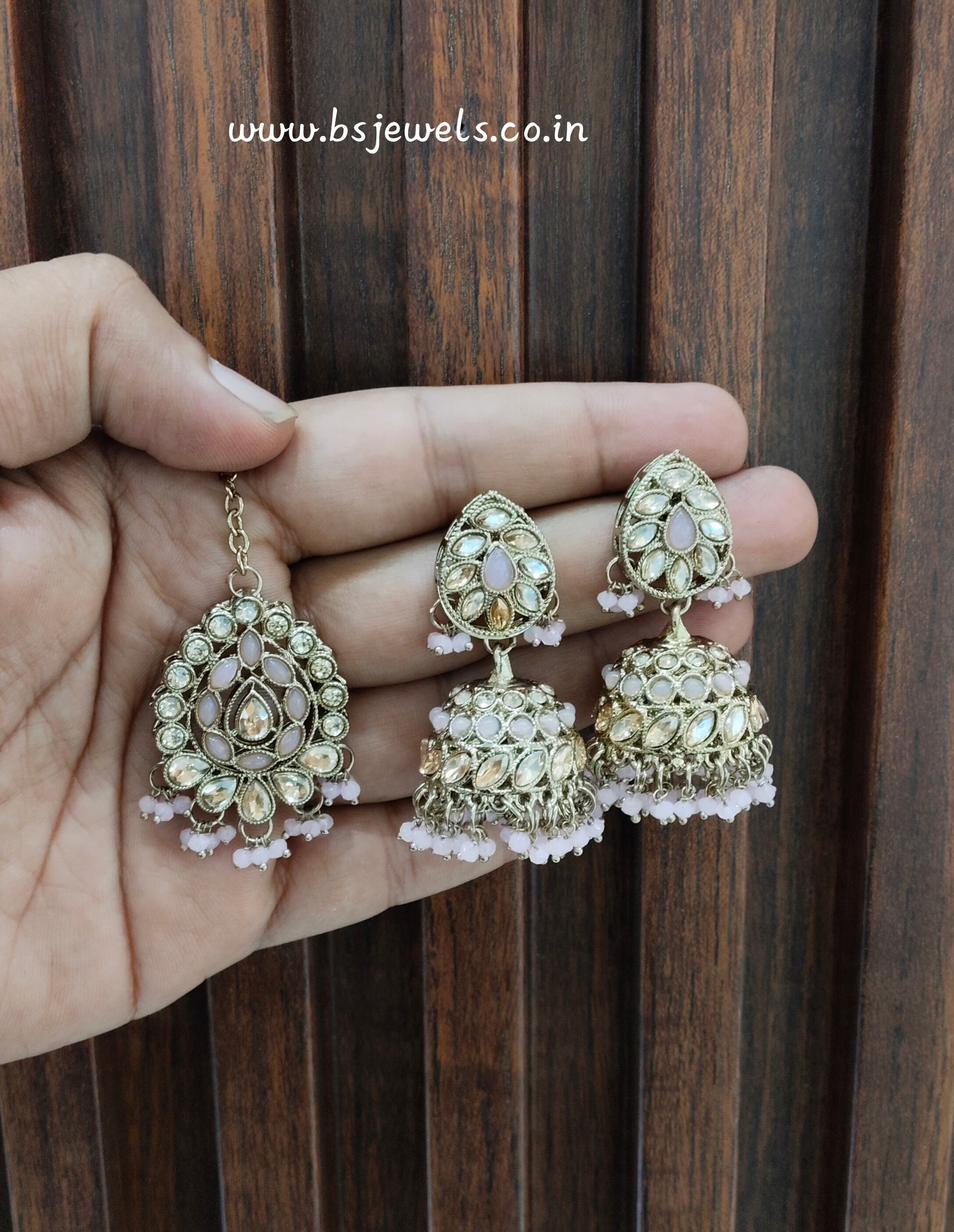 Pink Antique Gold Jhumka Bollywood Suman Earrings