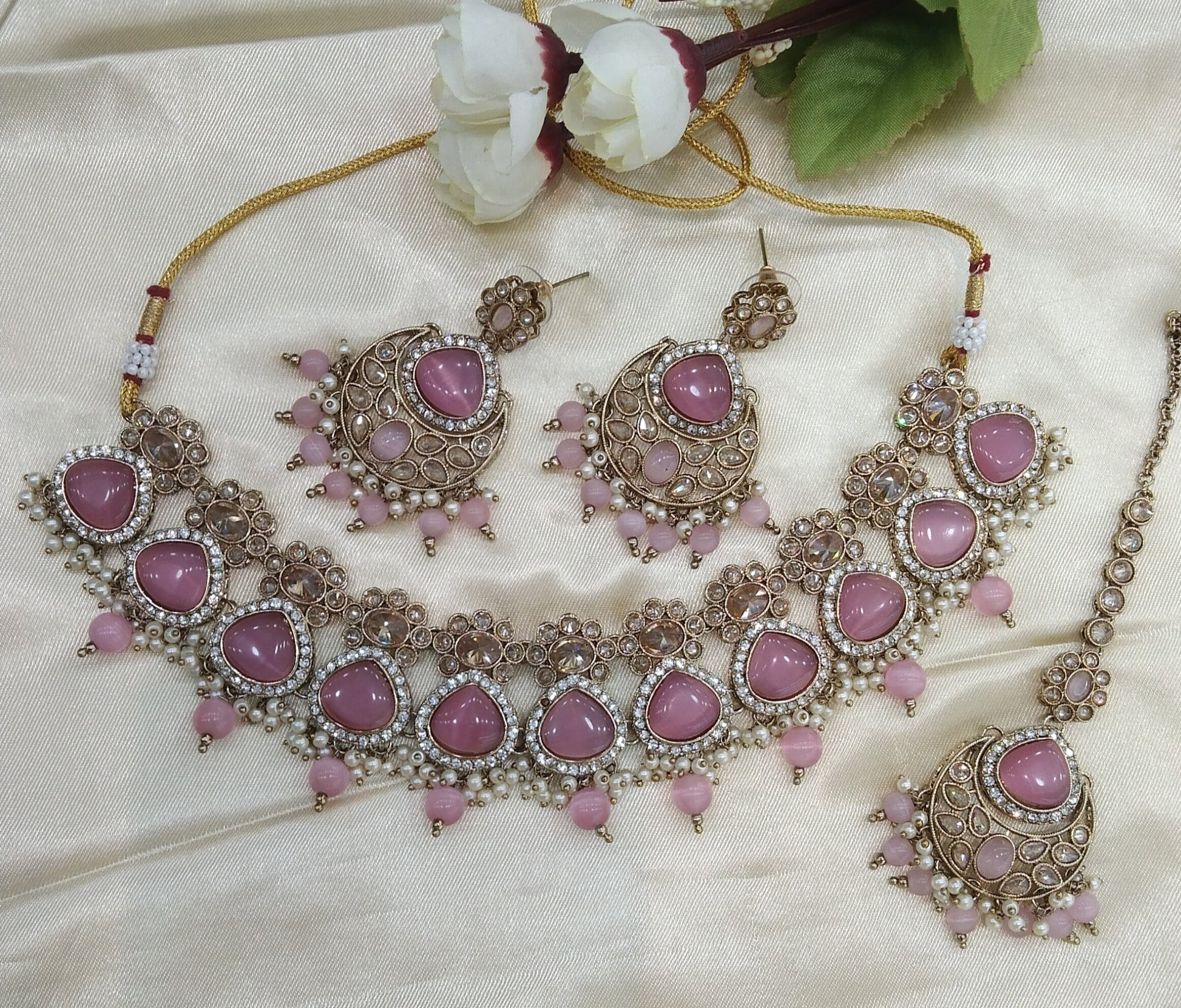 Pink Choker Monalisa Stone Jewellery Muskan Kundan Set