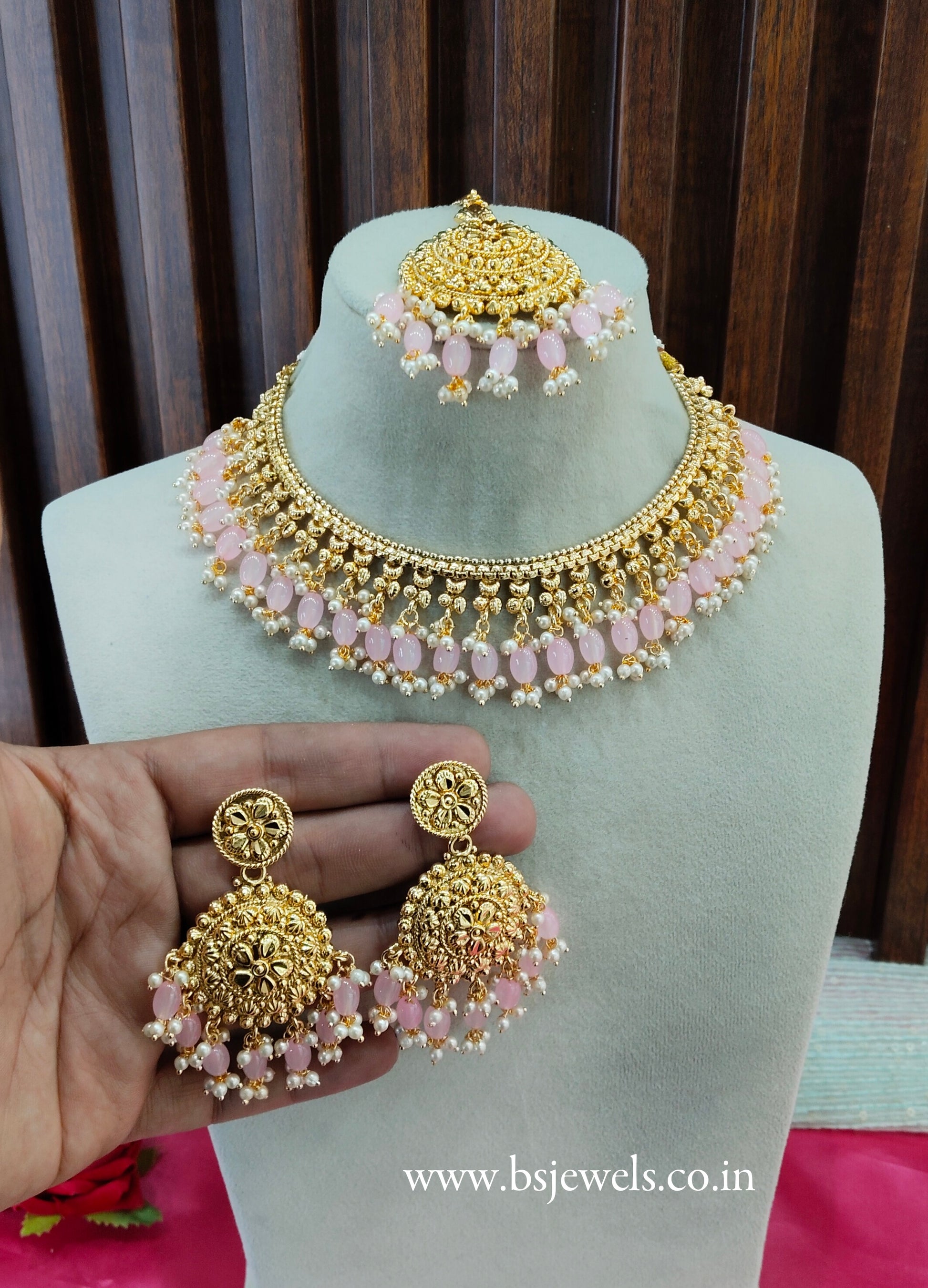 Pink Gold Look Punjabi Style Necklace Jewellery Asha Set