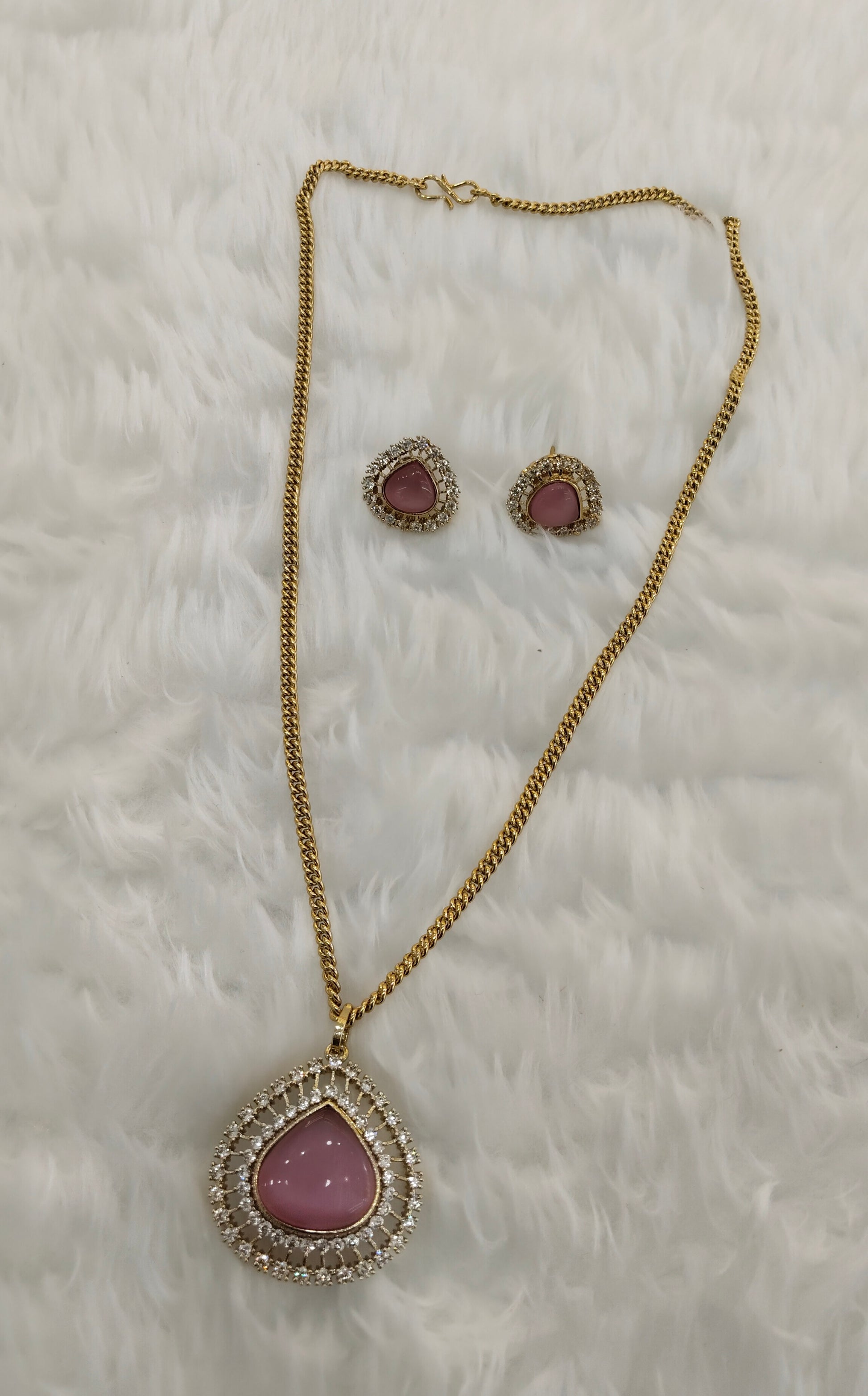 Pink Gold Moissanite Kundan Necklace Jewellery Avenger Chain Set