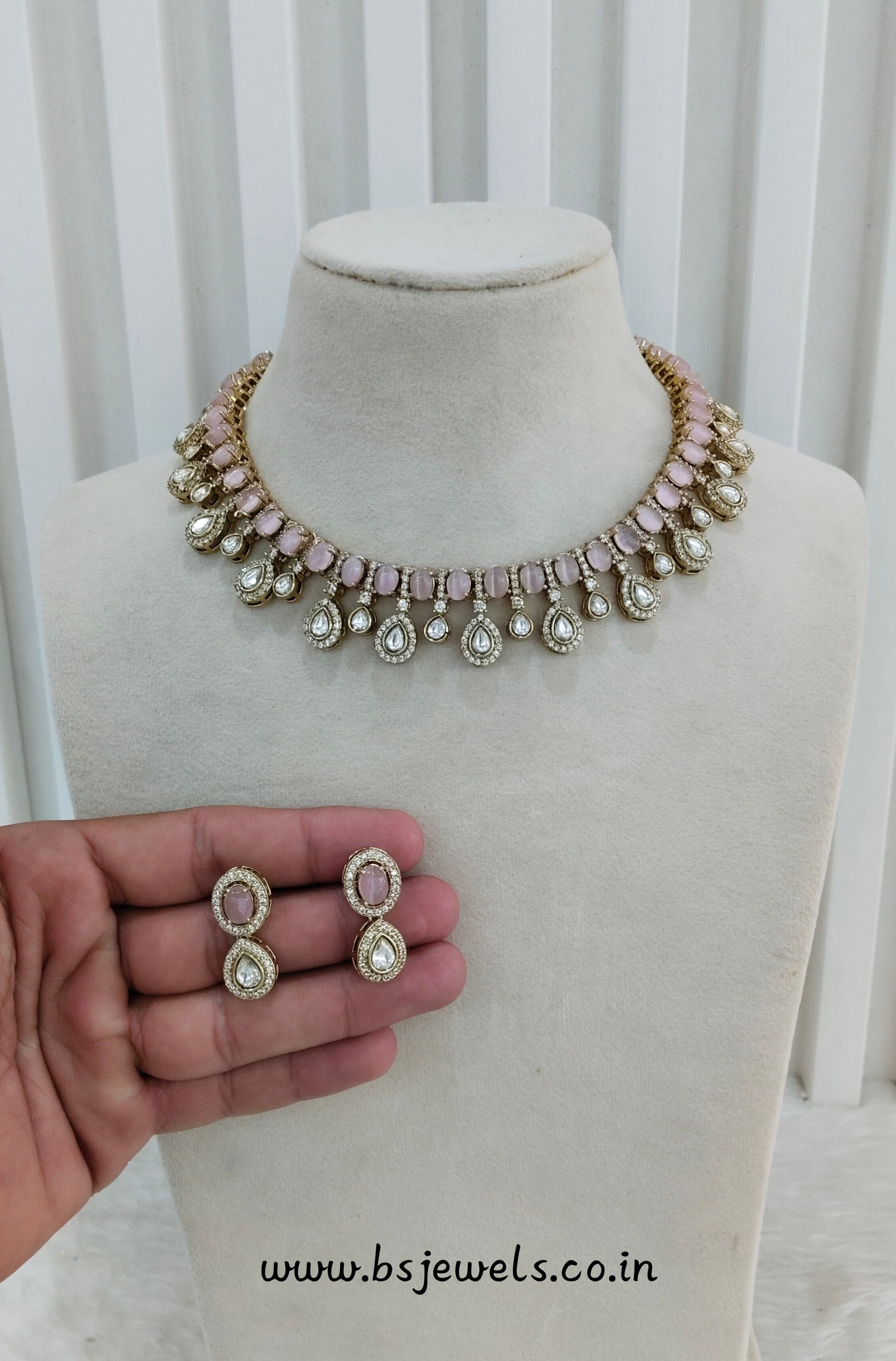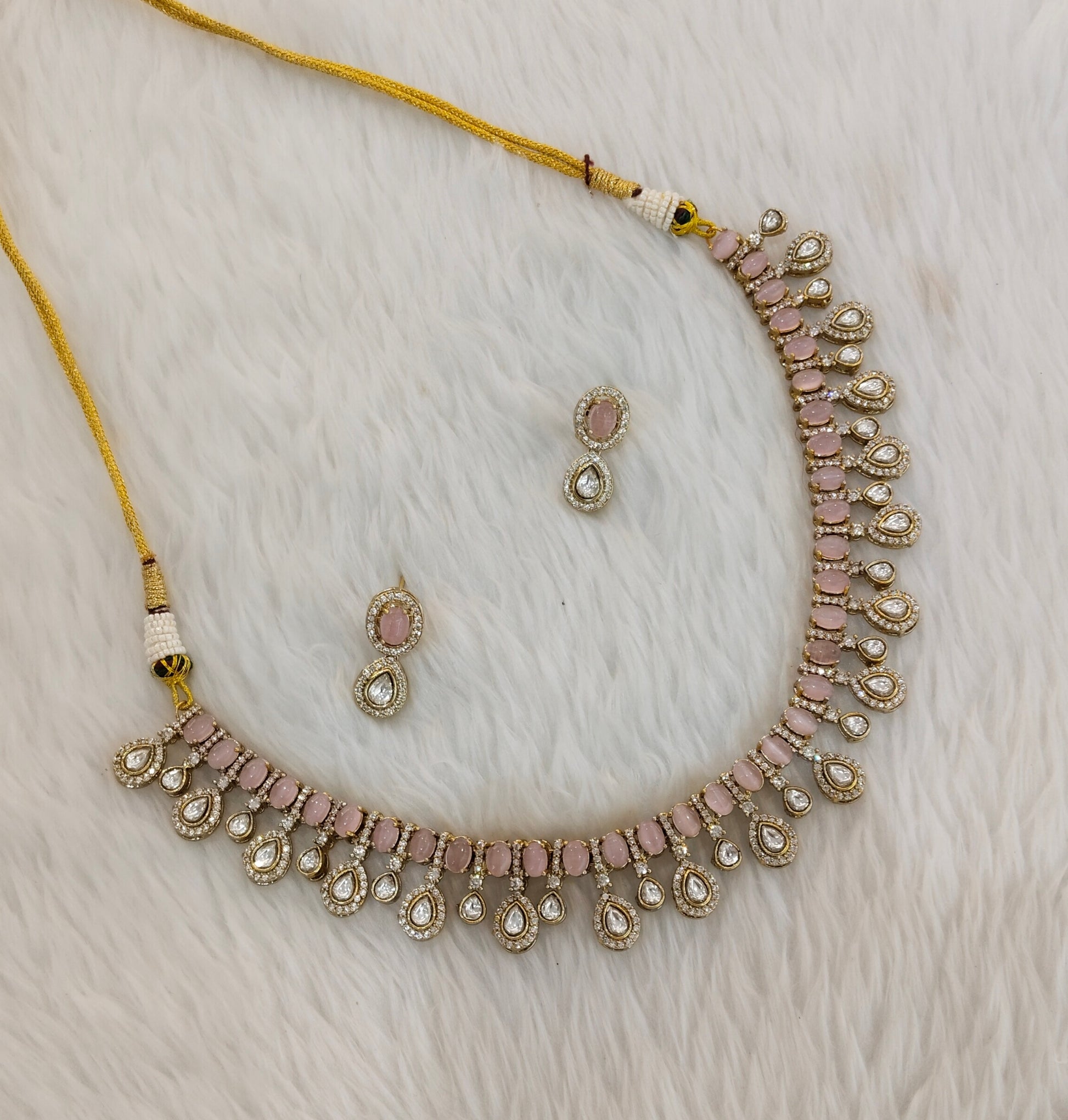 Pink Gold Moissanite Kundan Necklace Jewellery Echer Set