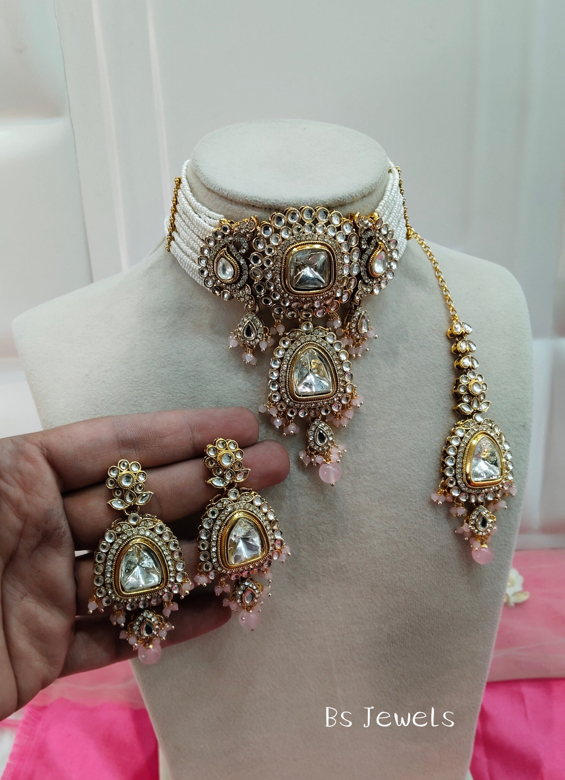Pink Kundan Choker Jewellery Meet Set