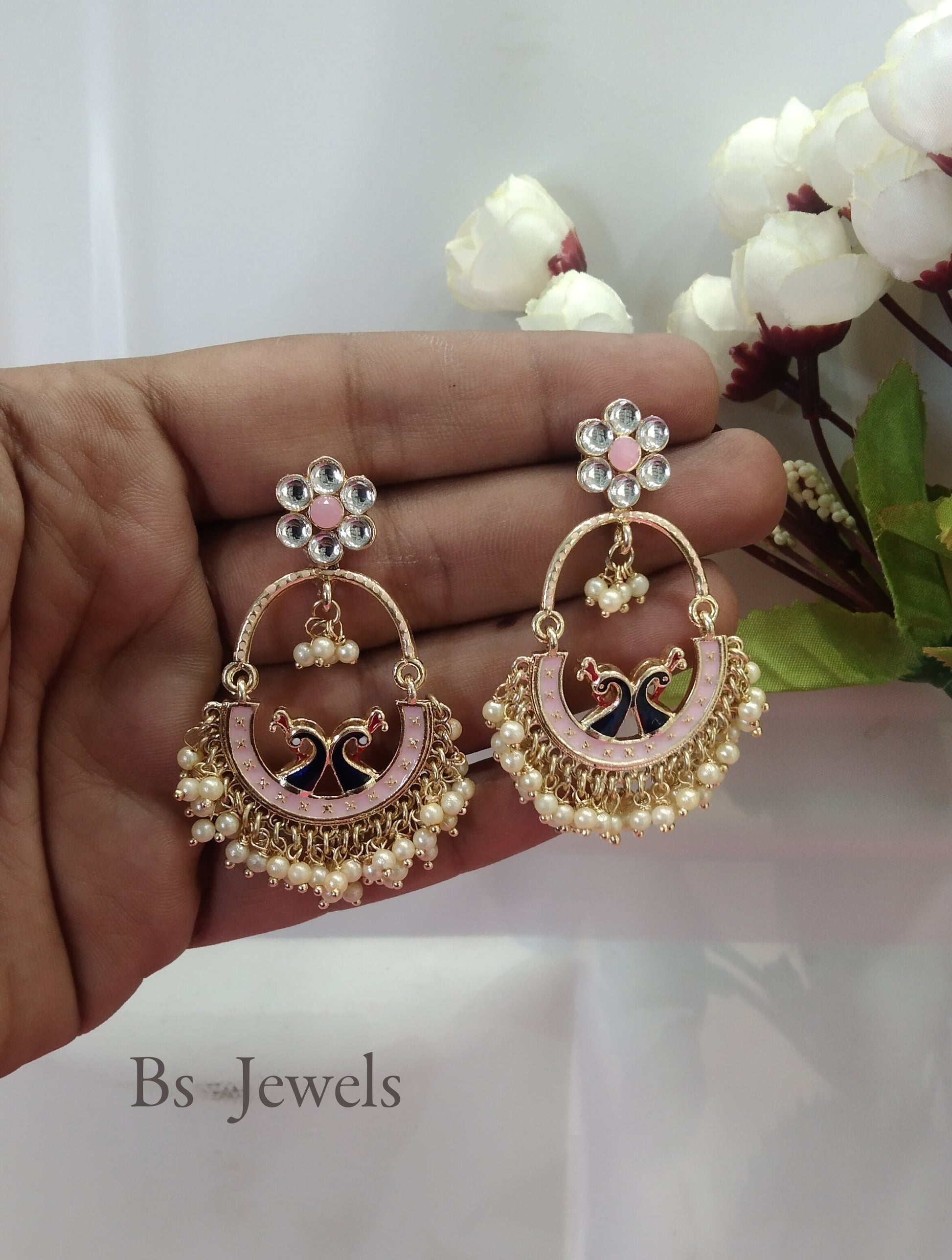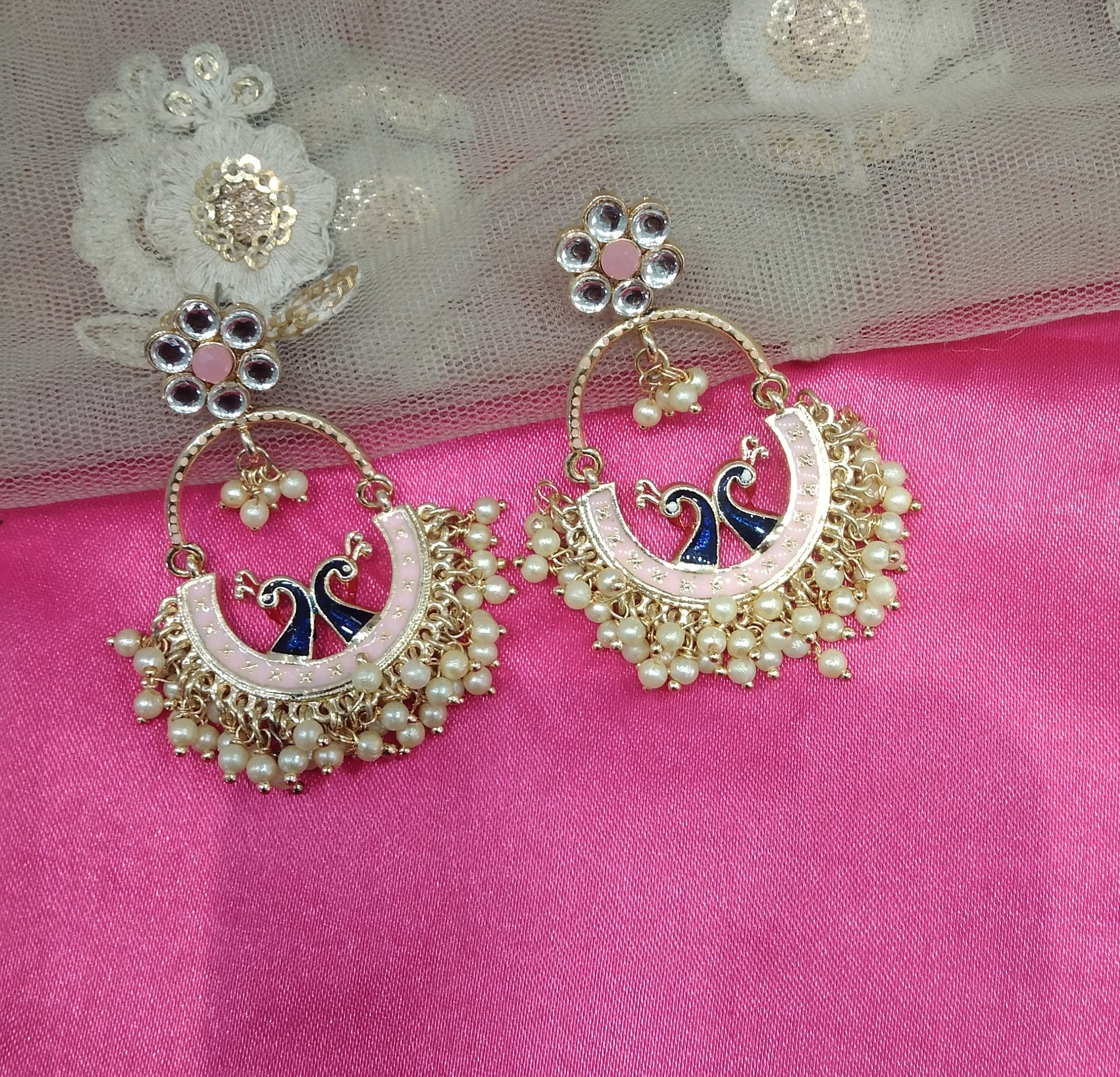 Pink Kundan Drive Bollywood Earrings