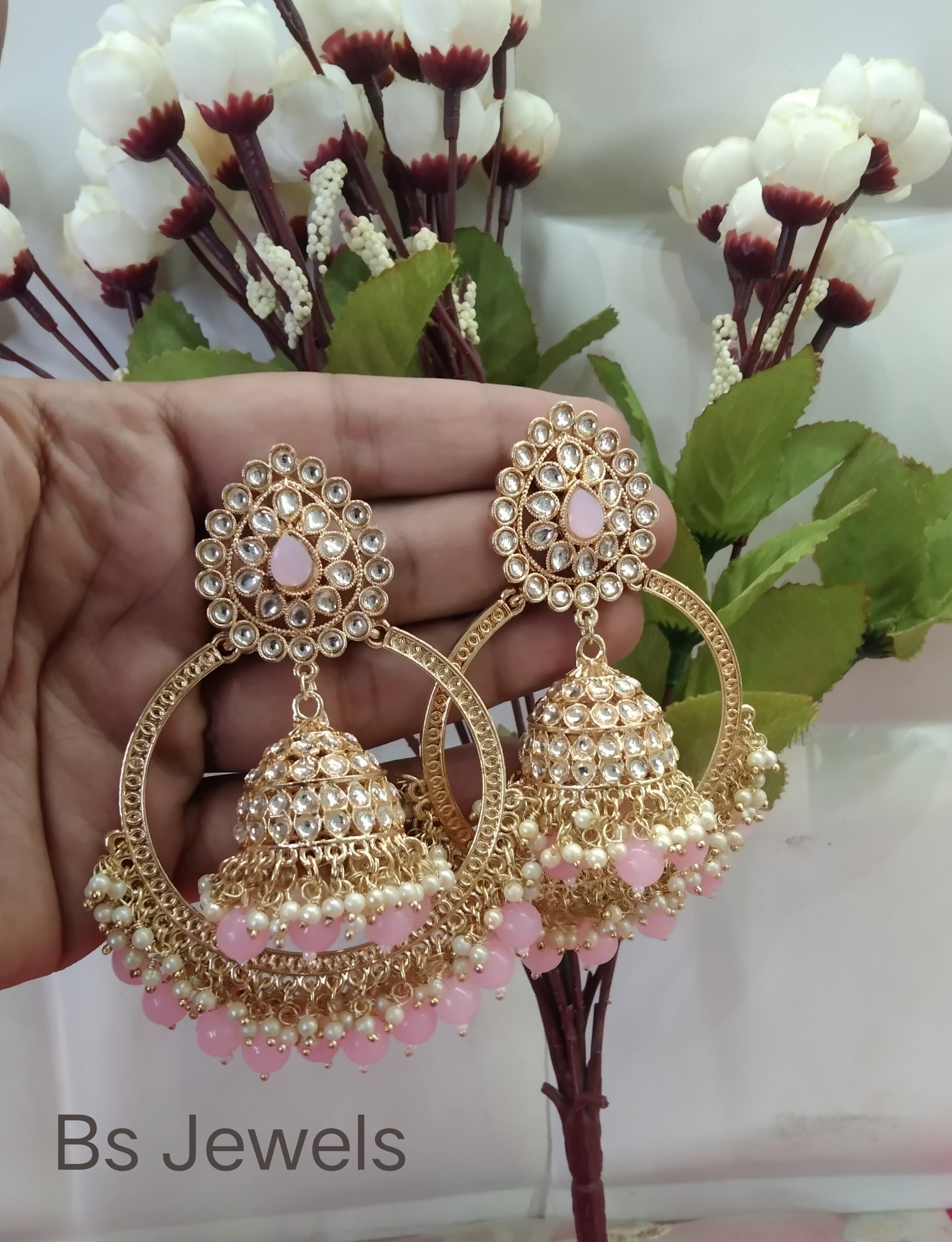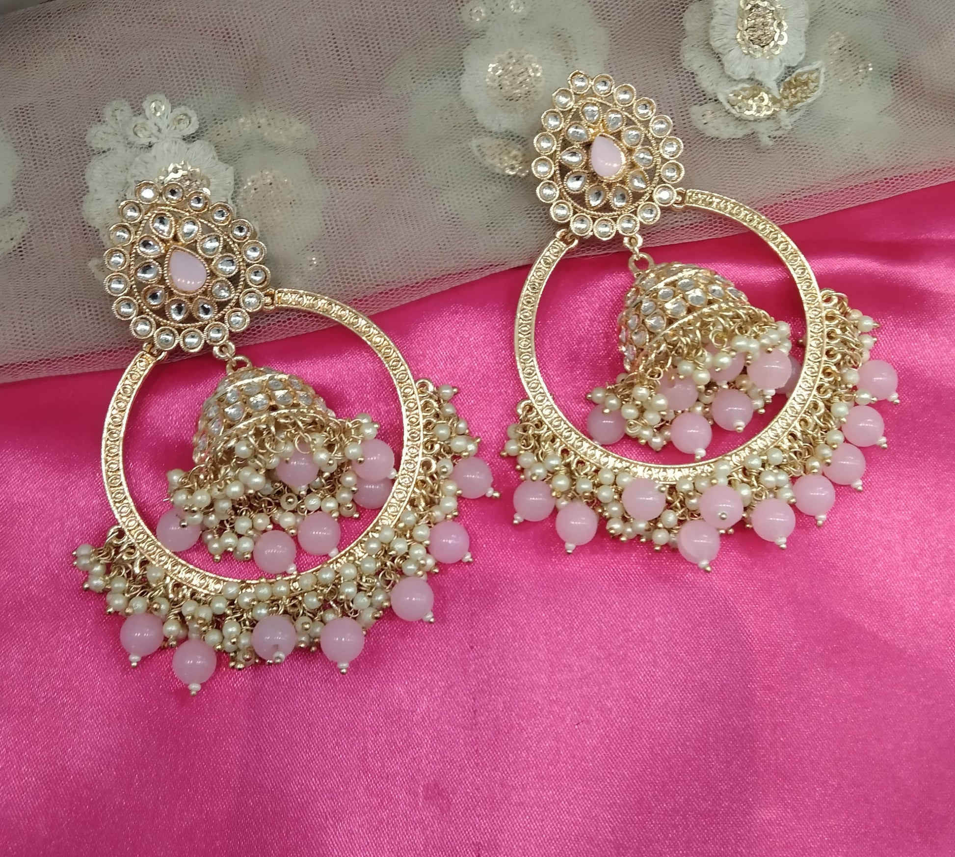 Pink Kundan Jhumka Geetika Bollywood Earrings