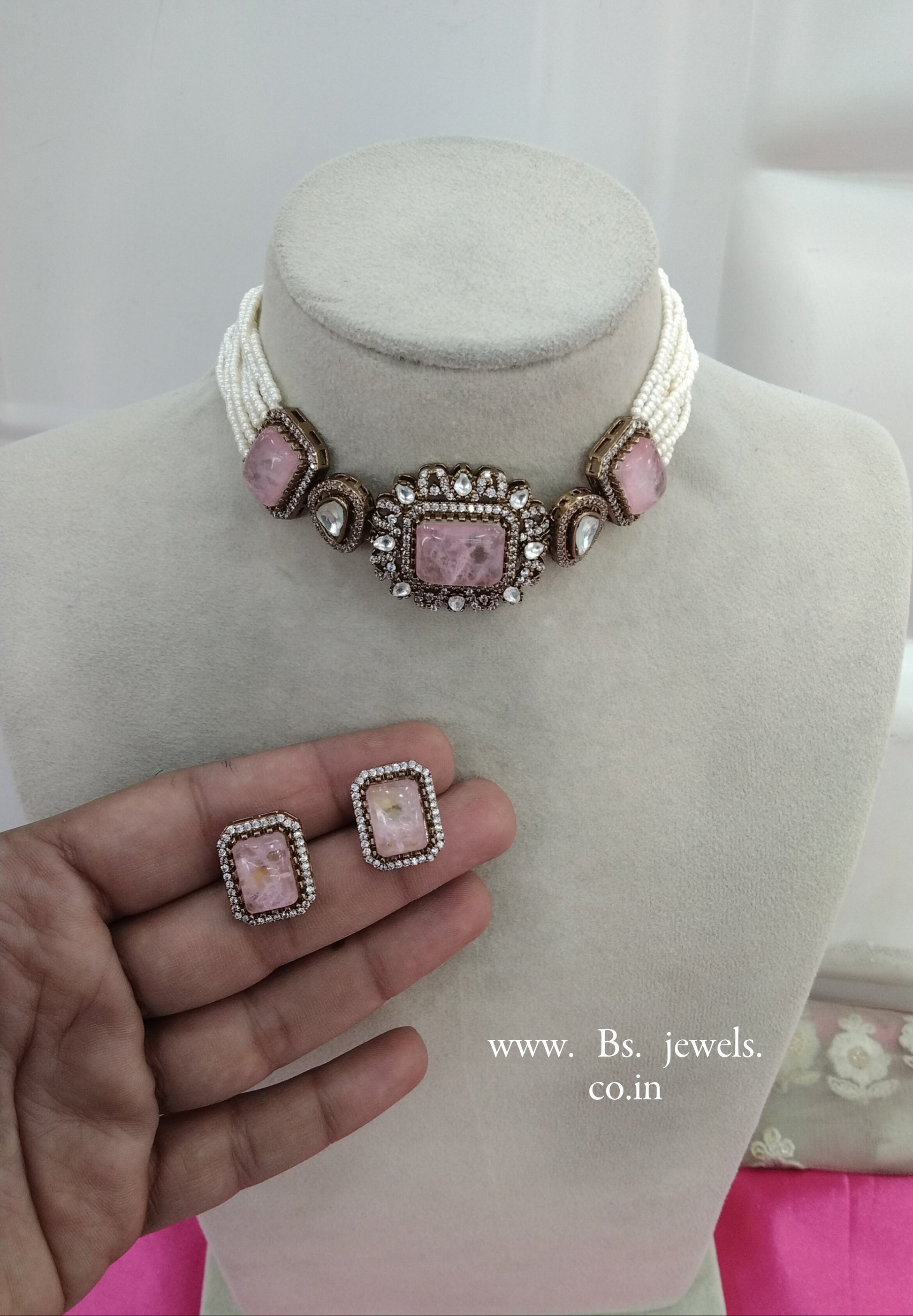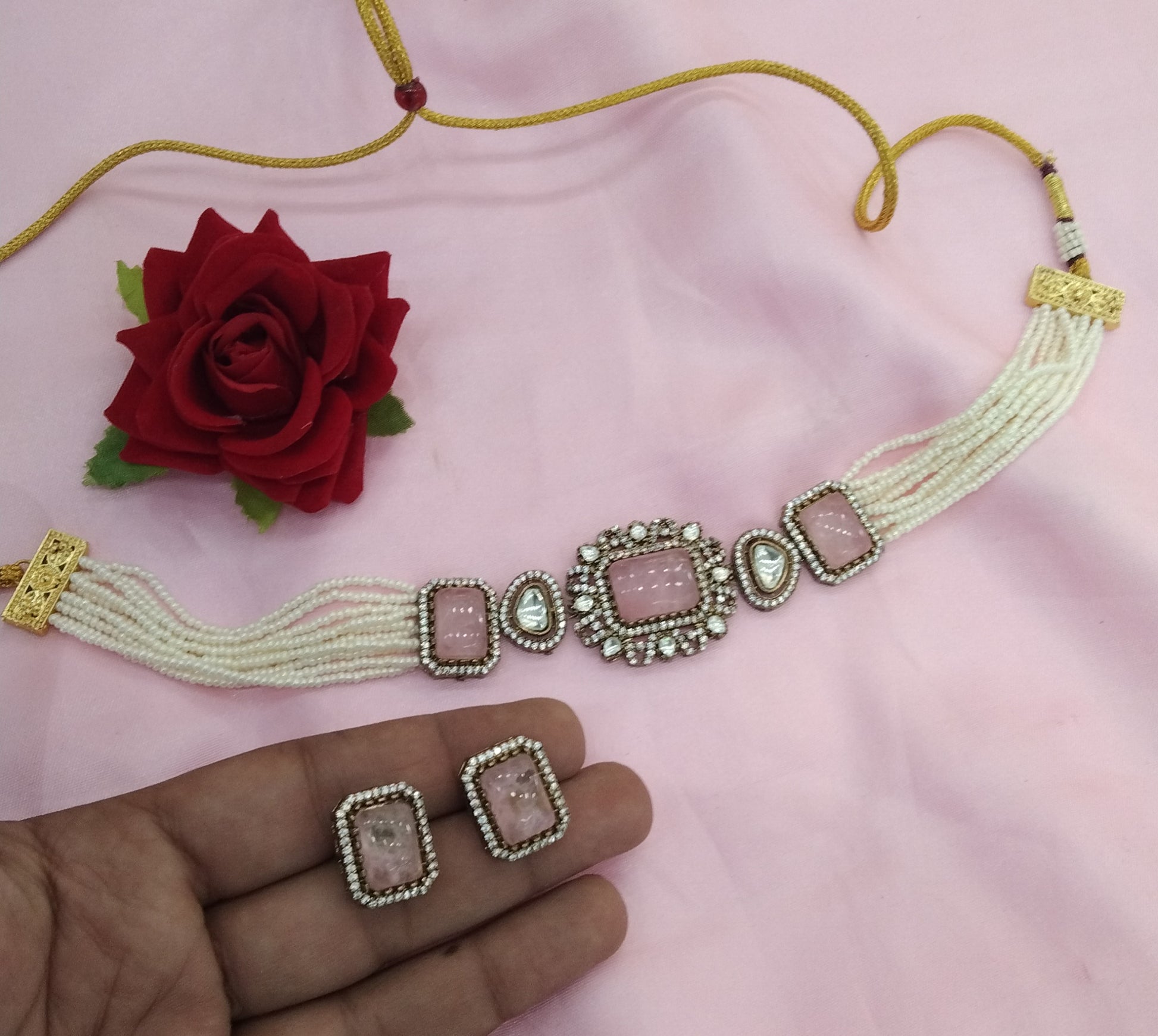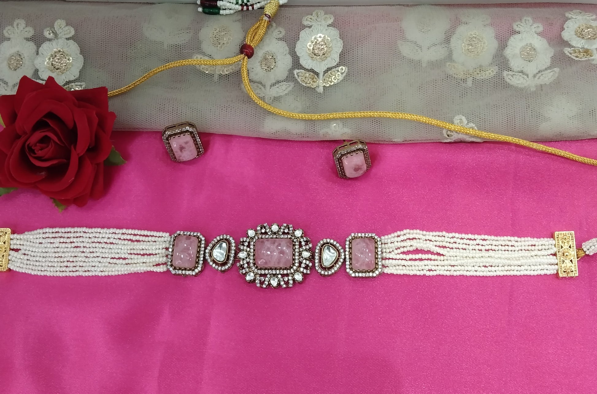 Pink Moissanite Kundan Victorian Choker Jewellery Sunita Set