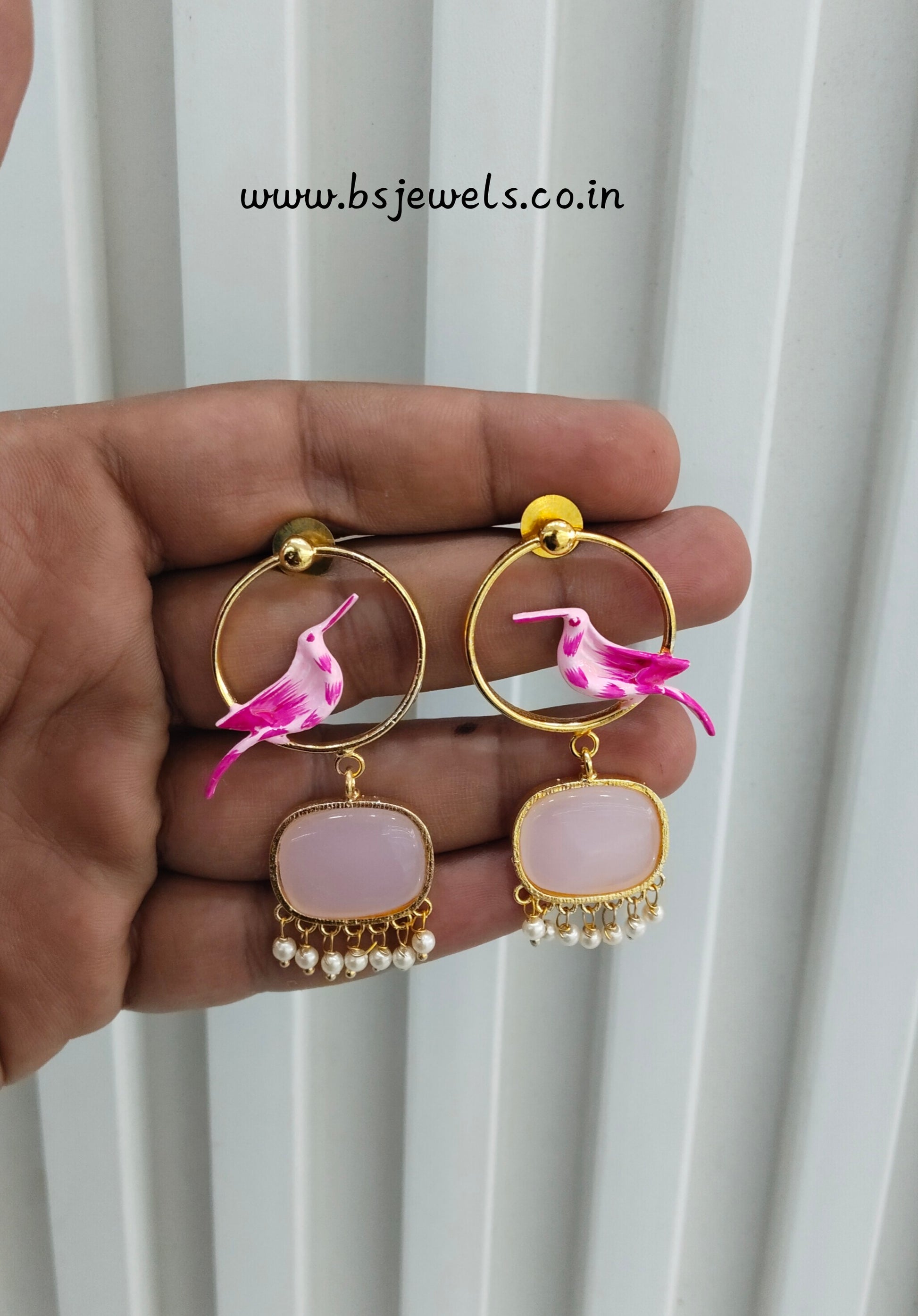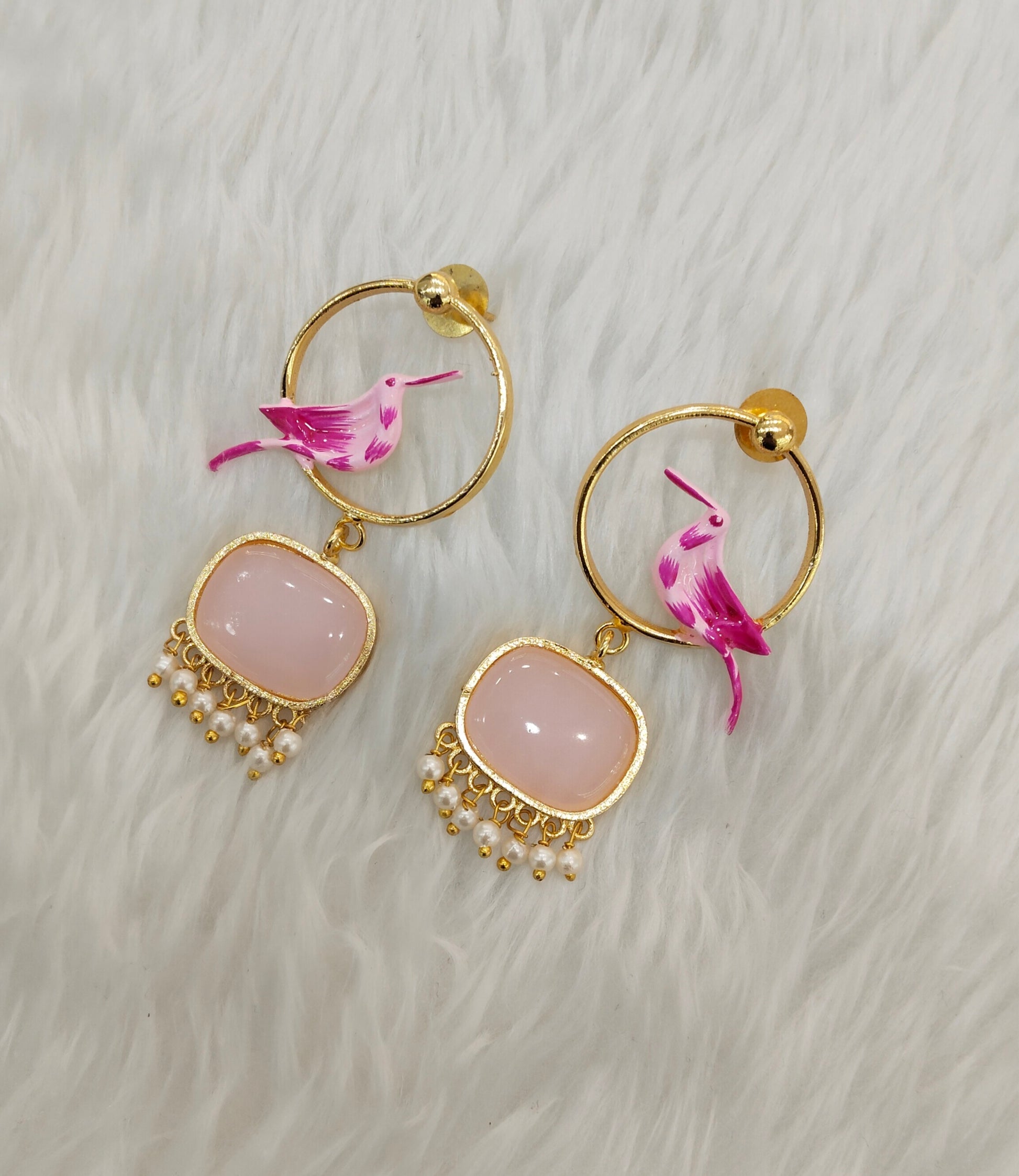 Pink Mother Of Pearl Bollywood Brass Earrings