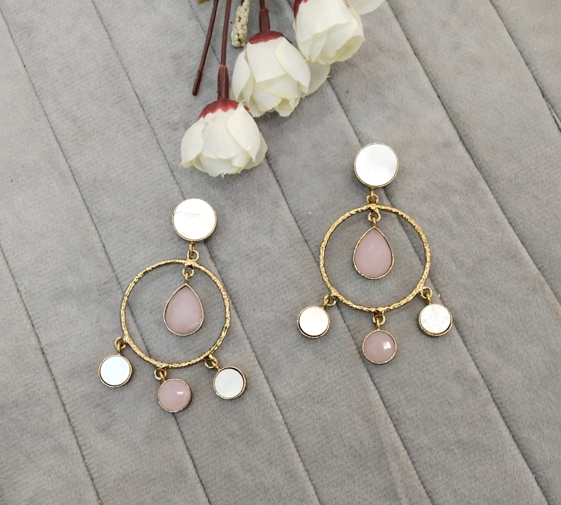 Pink Mother Of Pearl Bollywood Jombi Earrings