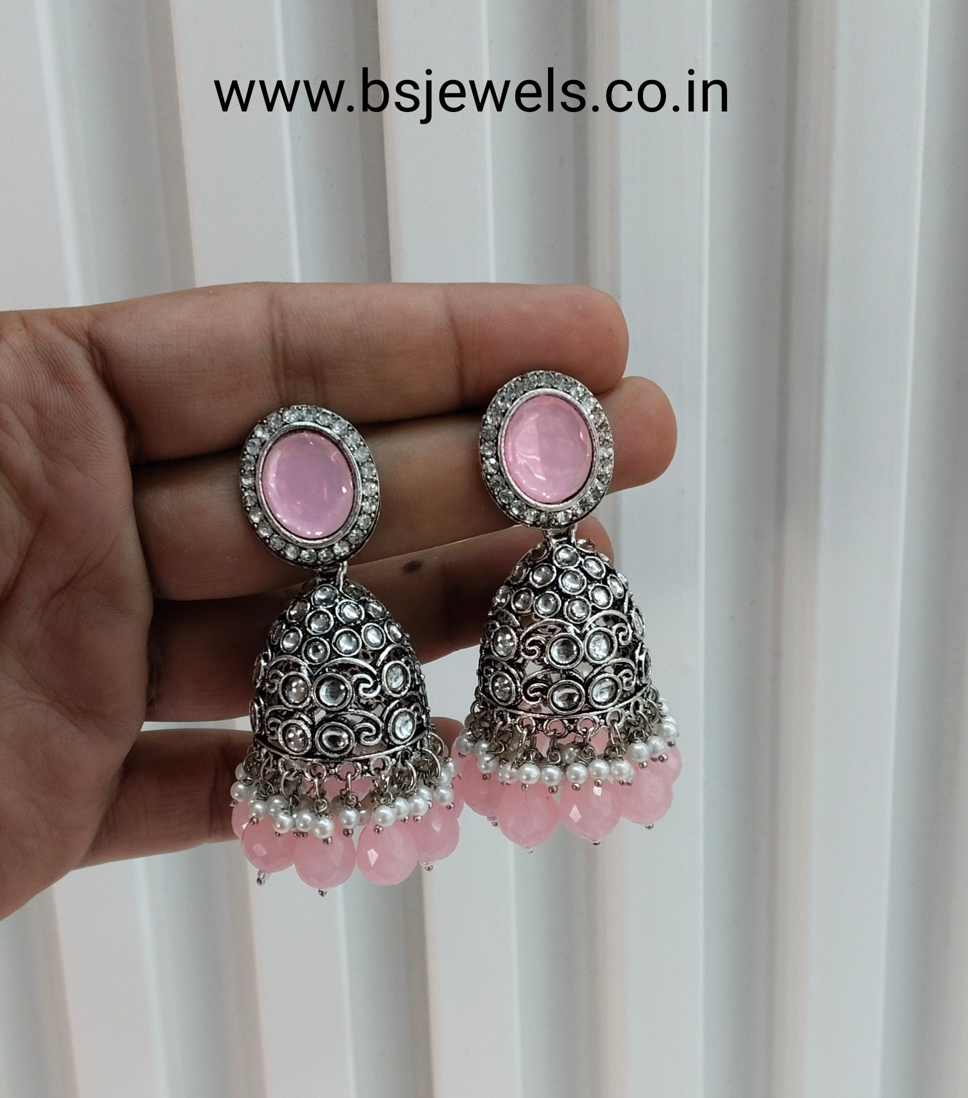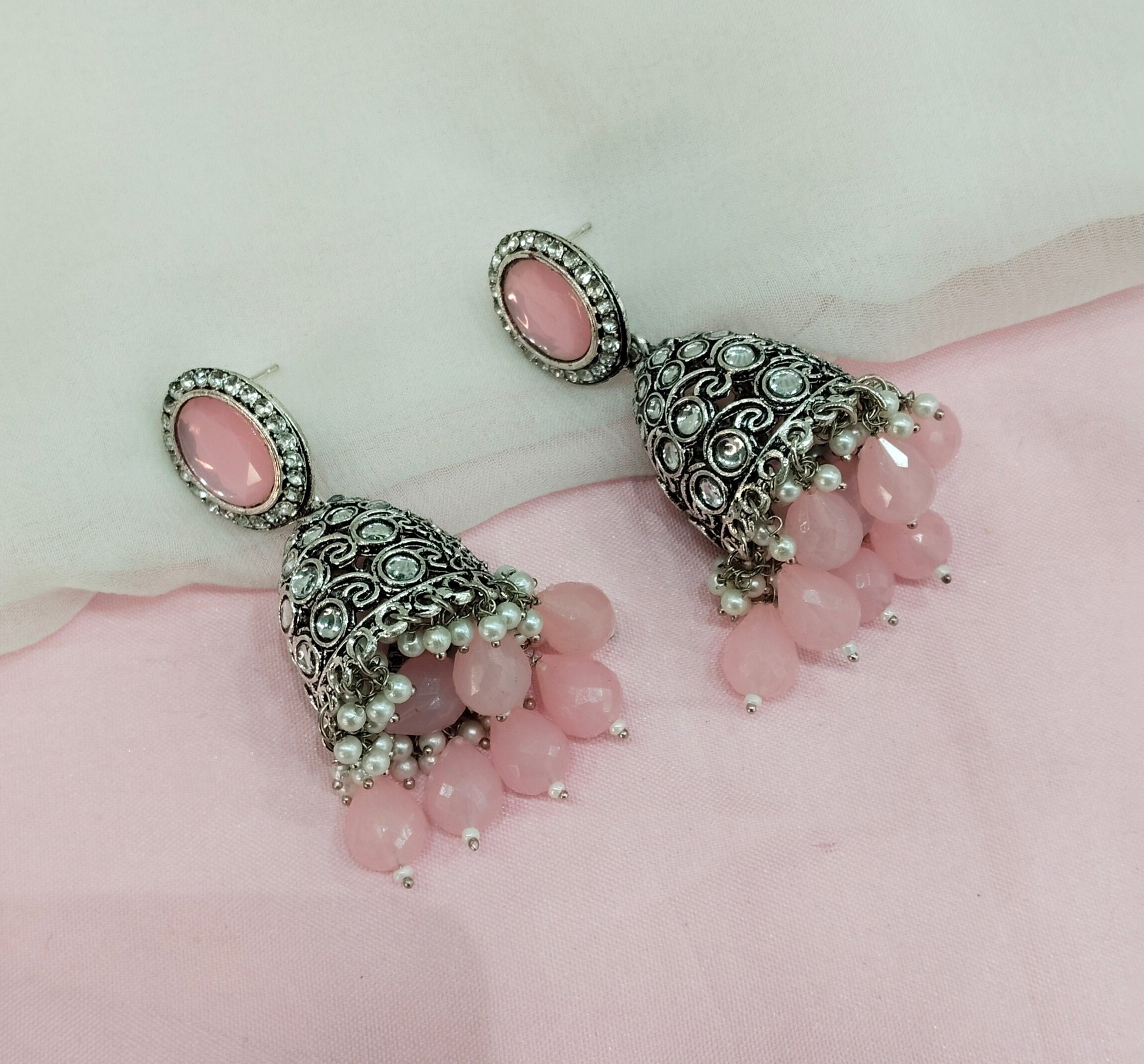Pink Oxidized Metal Denber Jhumka Earrings Set