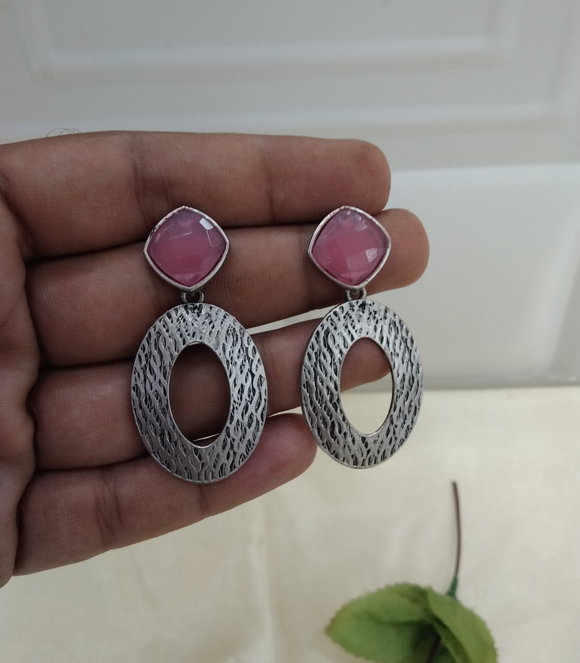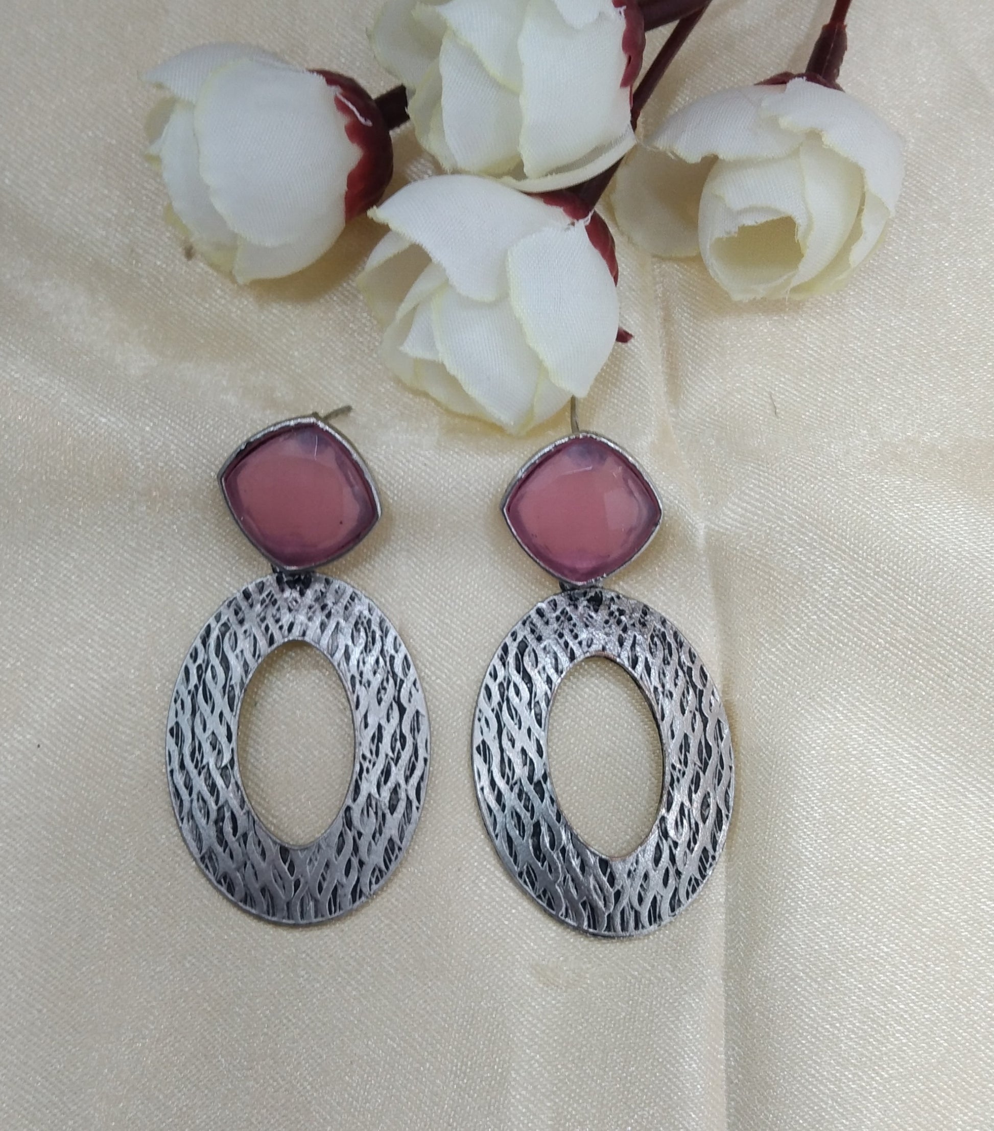 Pink Oxidized Metal Shalu Bollywood Earrings Jewellery
