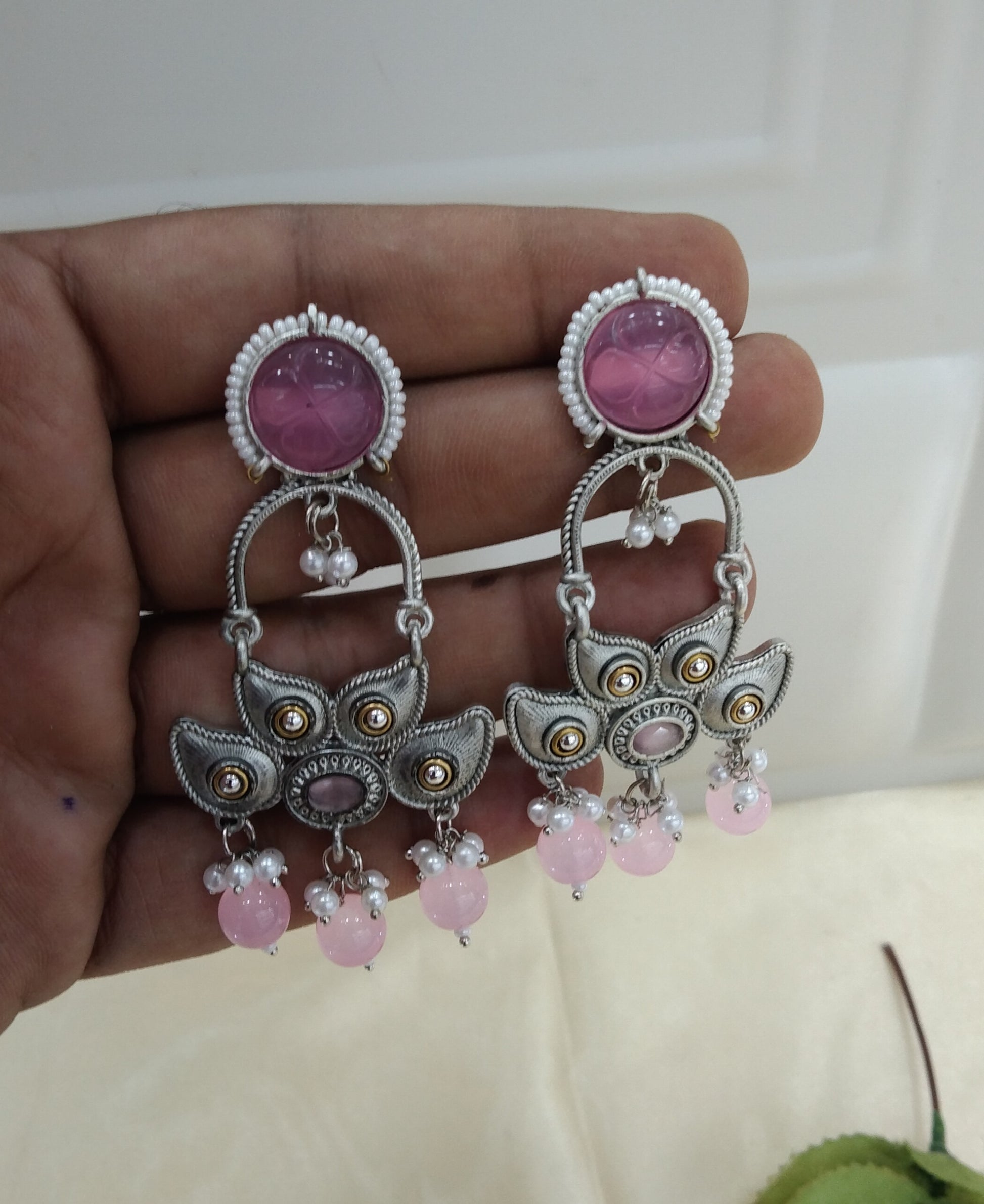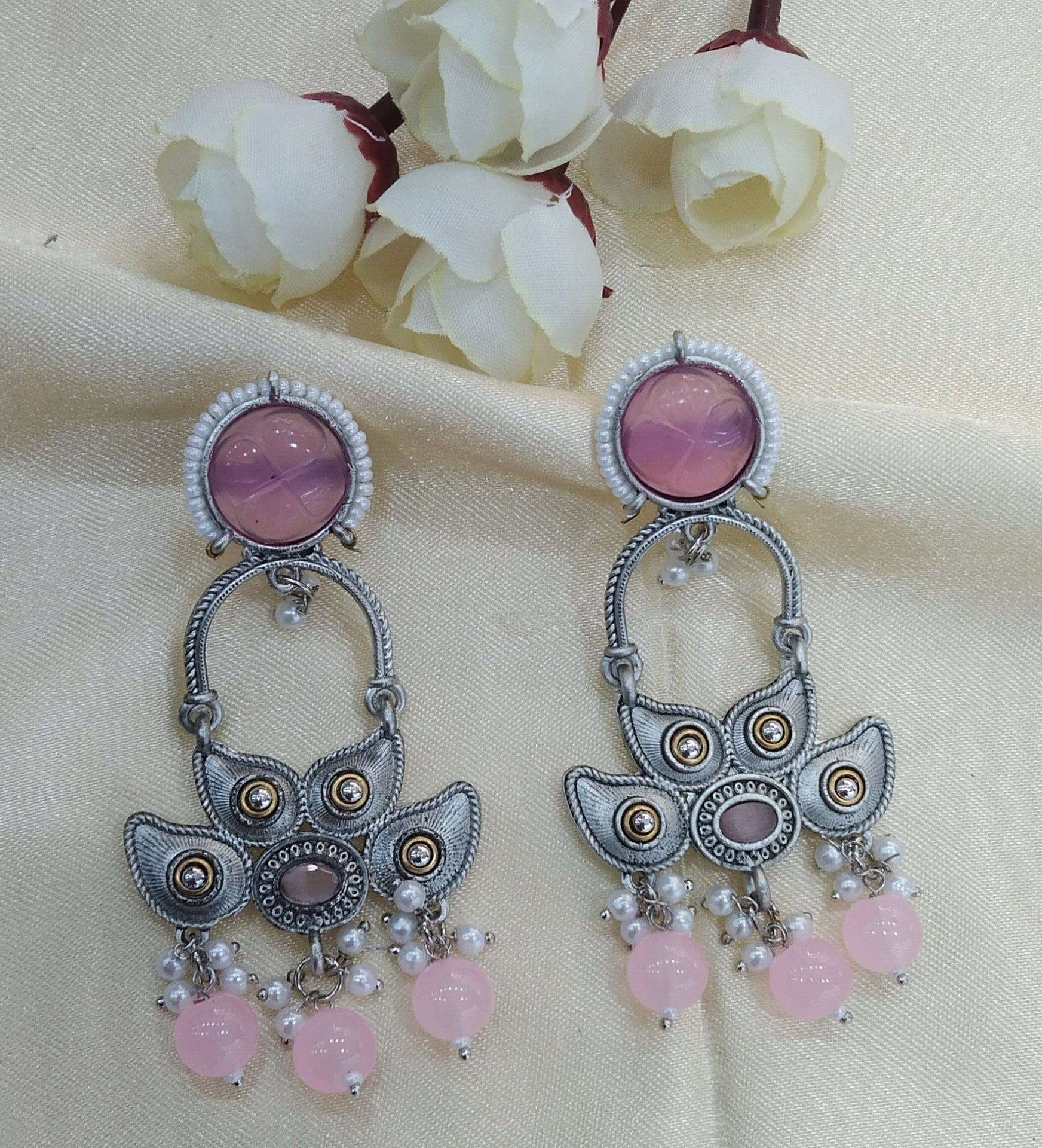 Pink Oxidized Metal Shalu Bollywood Earrings Jewellery