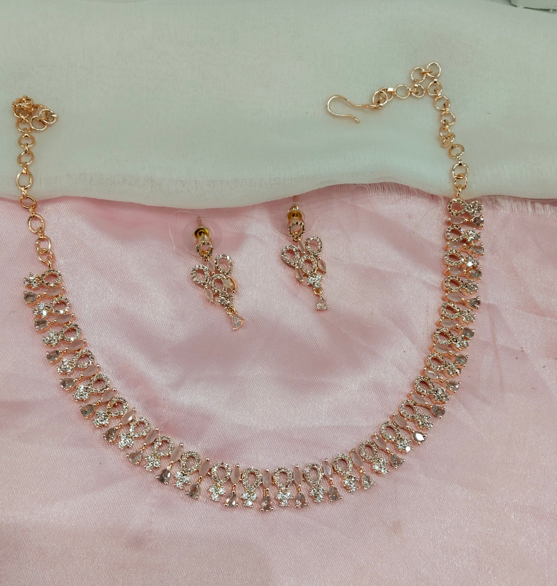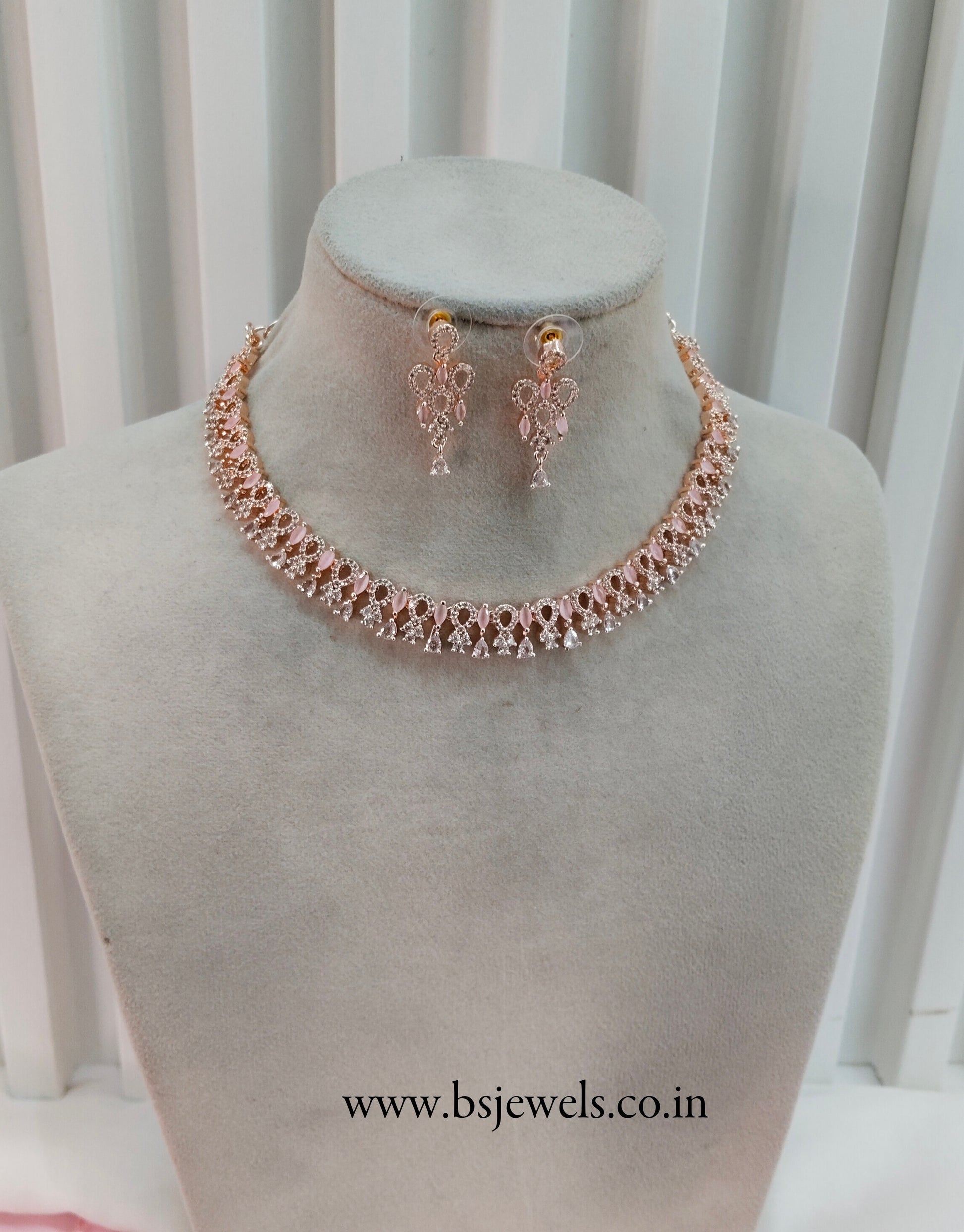 Pink Rose CZ Necklace Jewellery Laredo Set